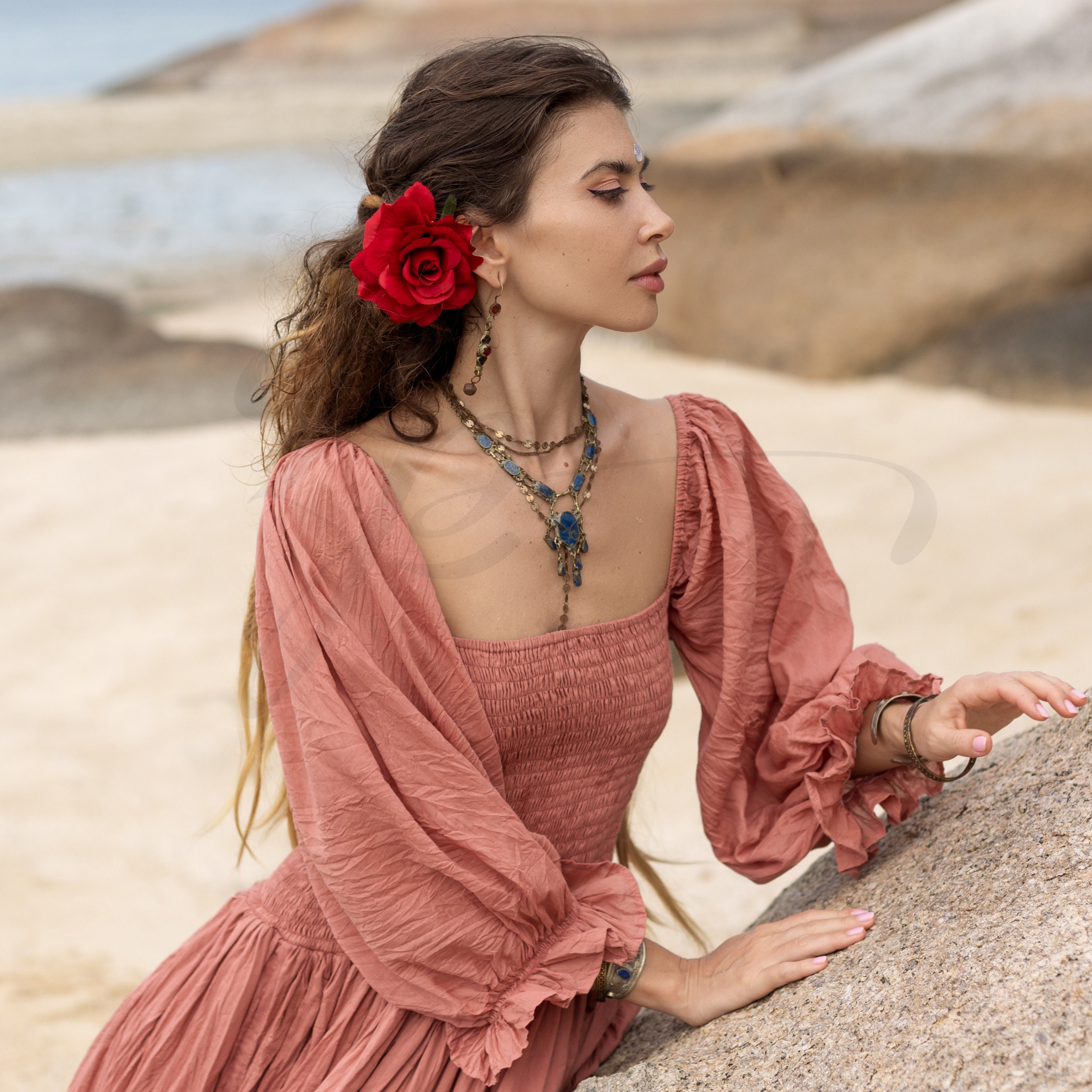 Step into a world of timeless elegance and romance with our latest boho-chic dress, the Isabella Amore.