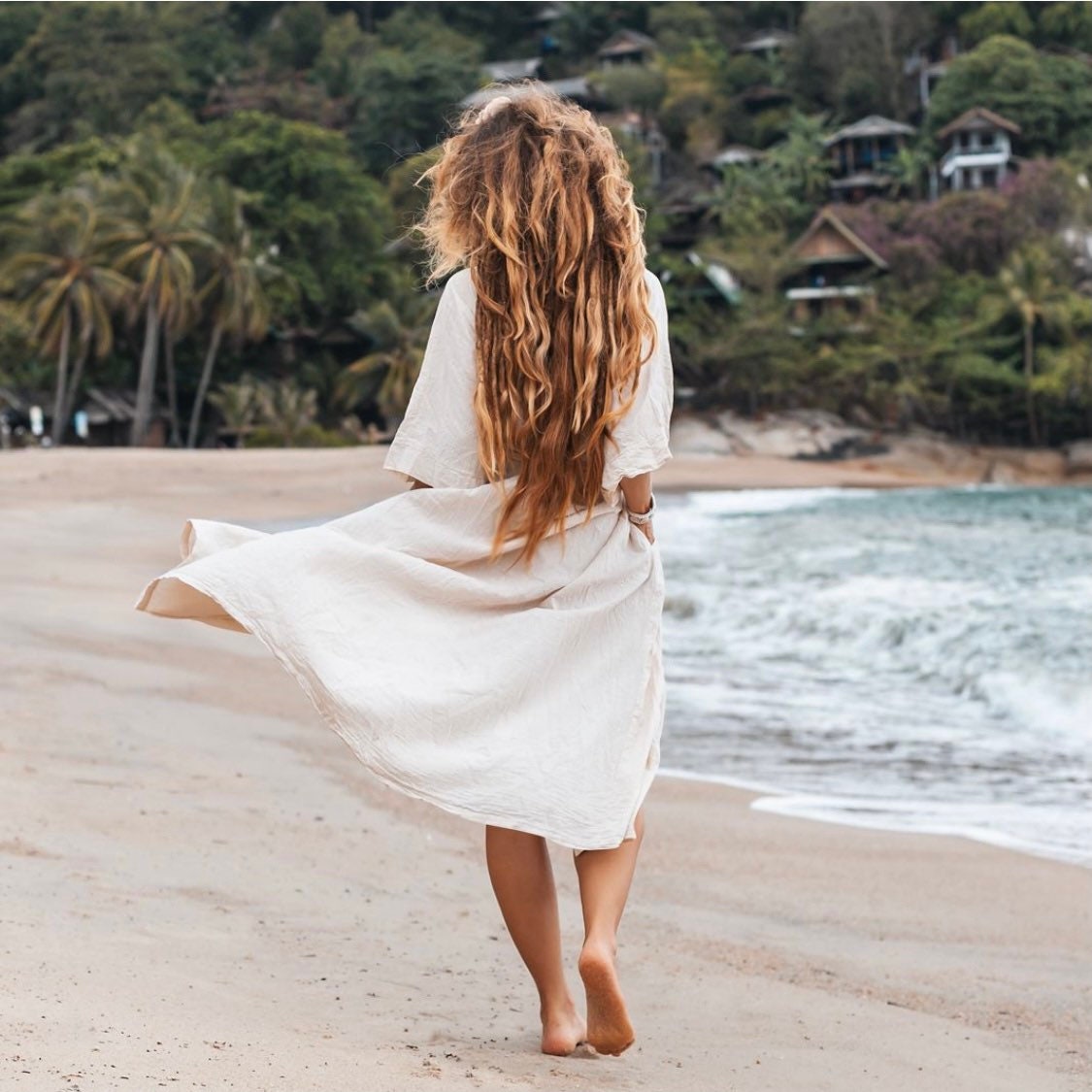 Boho White Cotton Duster Kimono – Luna Raw Cotton Grecian Beach Cover-Up