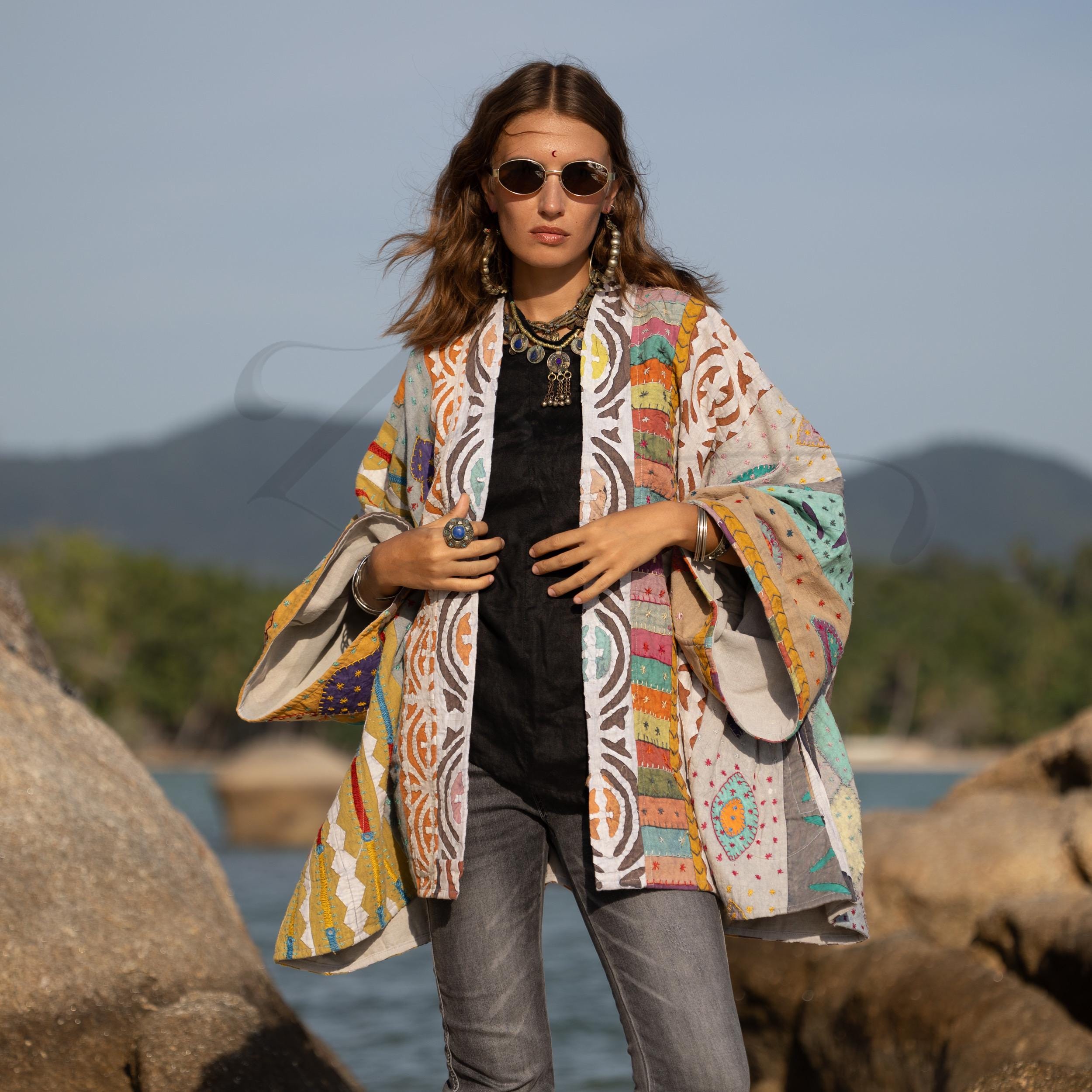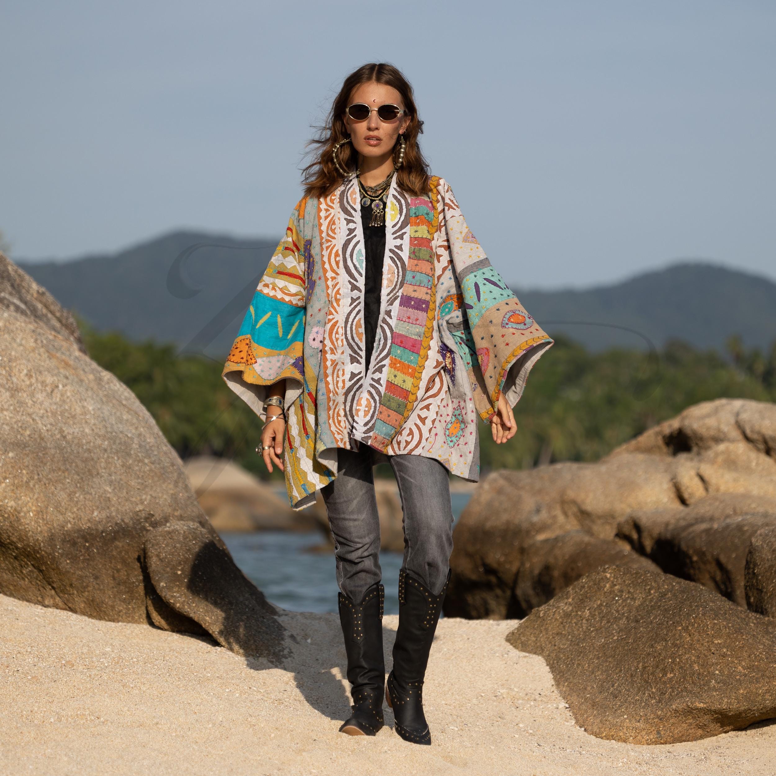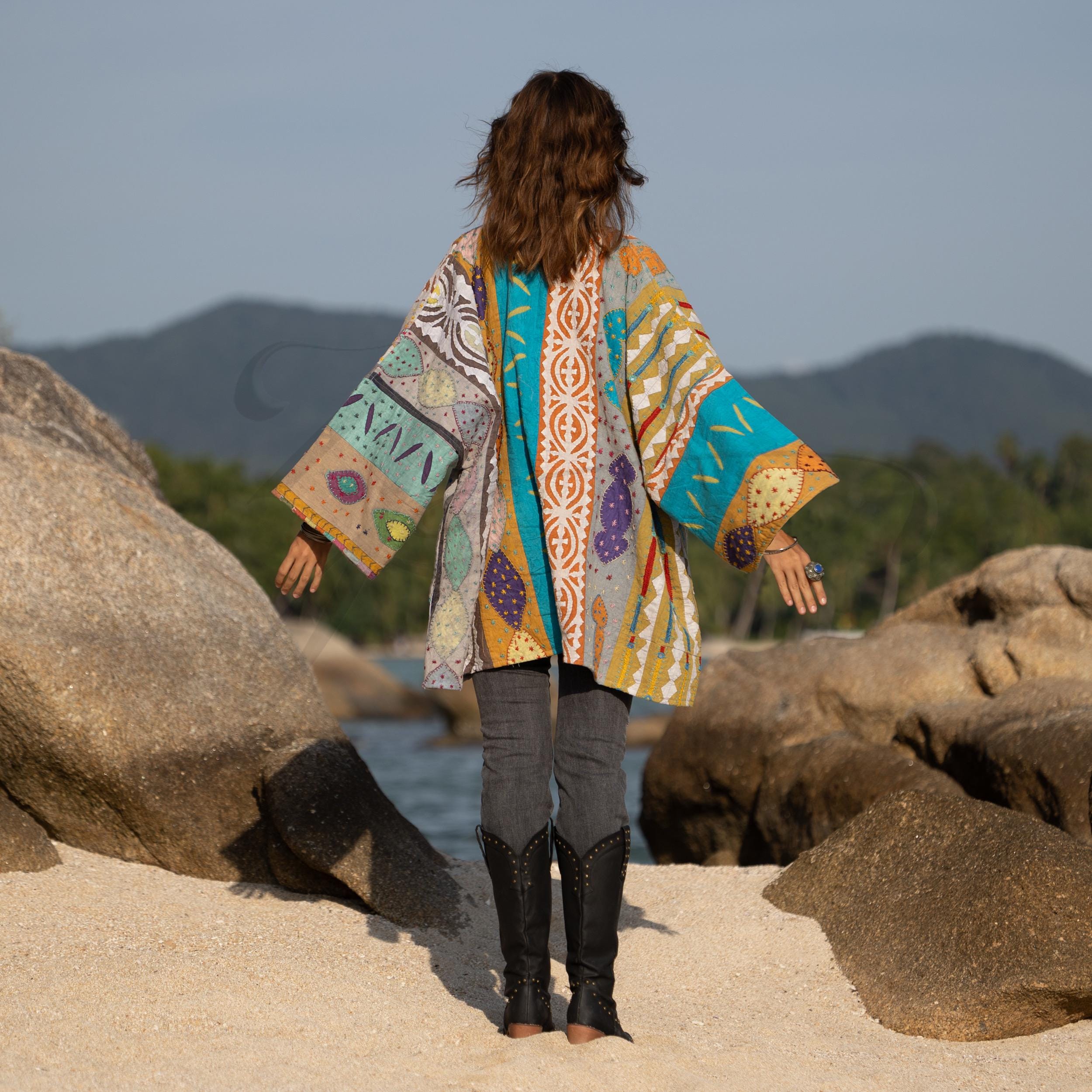 Cordelia Short Kimono Jacket – Embergrove Patchwork Embroidered Boho Festival Coat