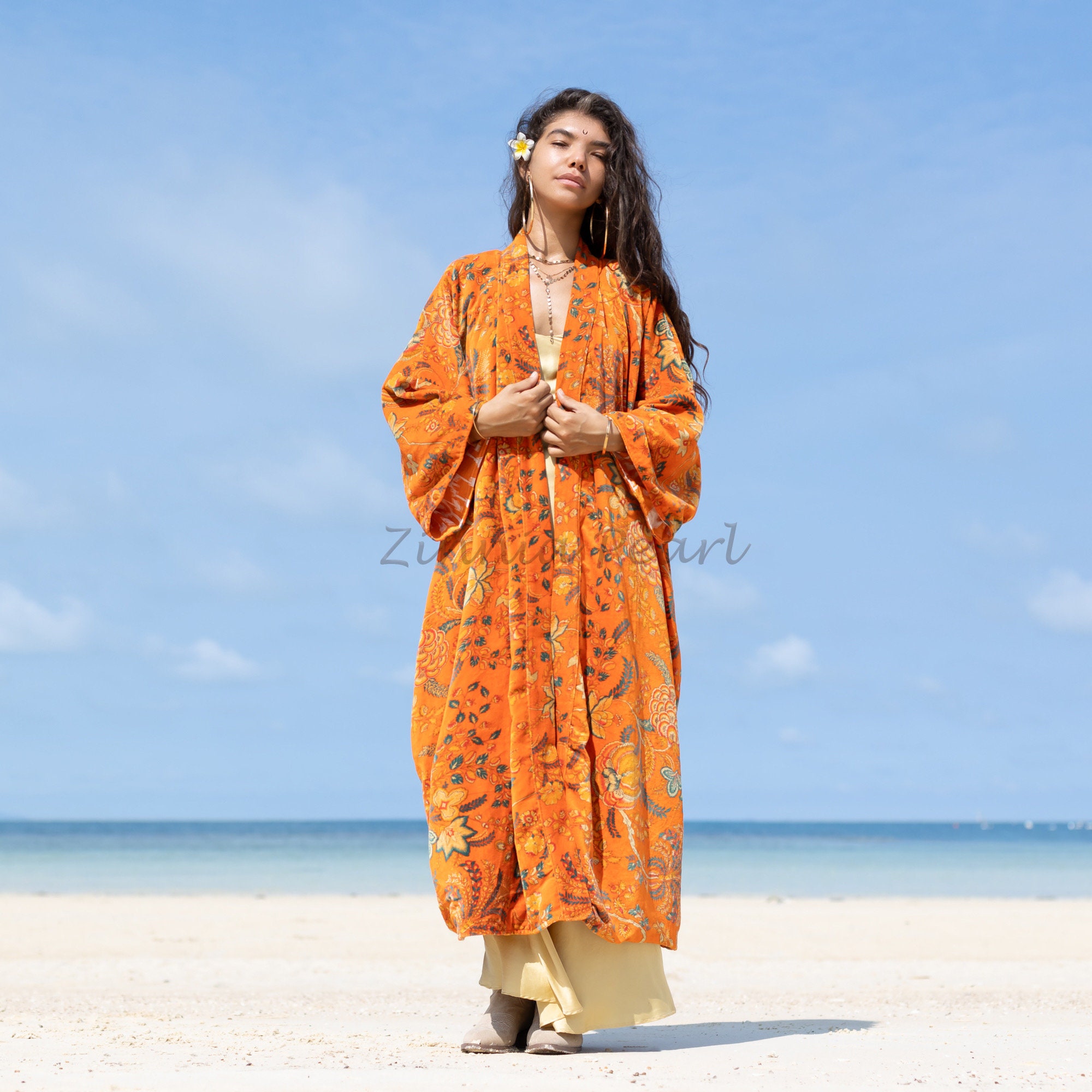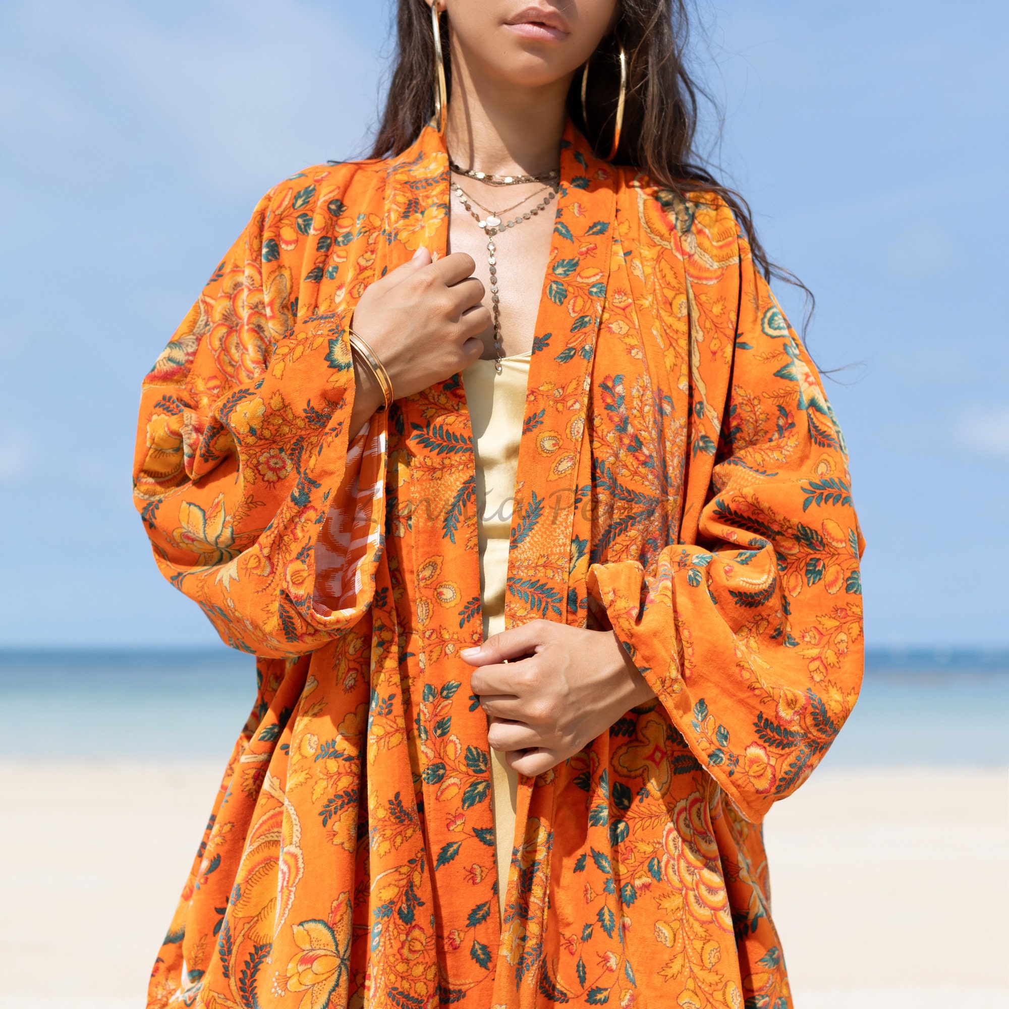 Be the belle of the ball in the Mai Cotton Kimono Coat. This vibrant kimono brings a burst of color and softness to your wardrobe.