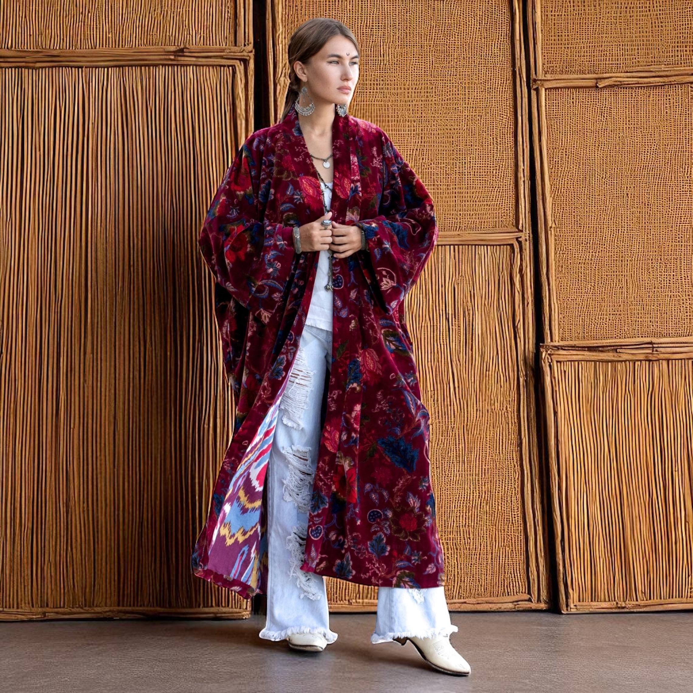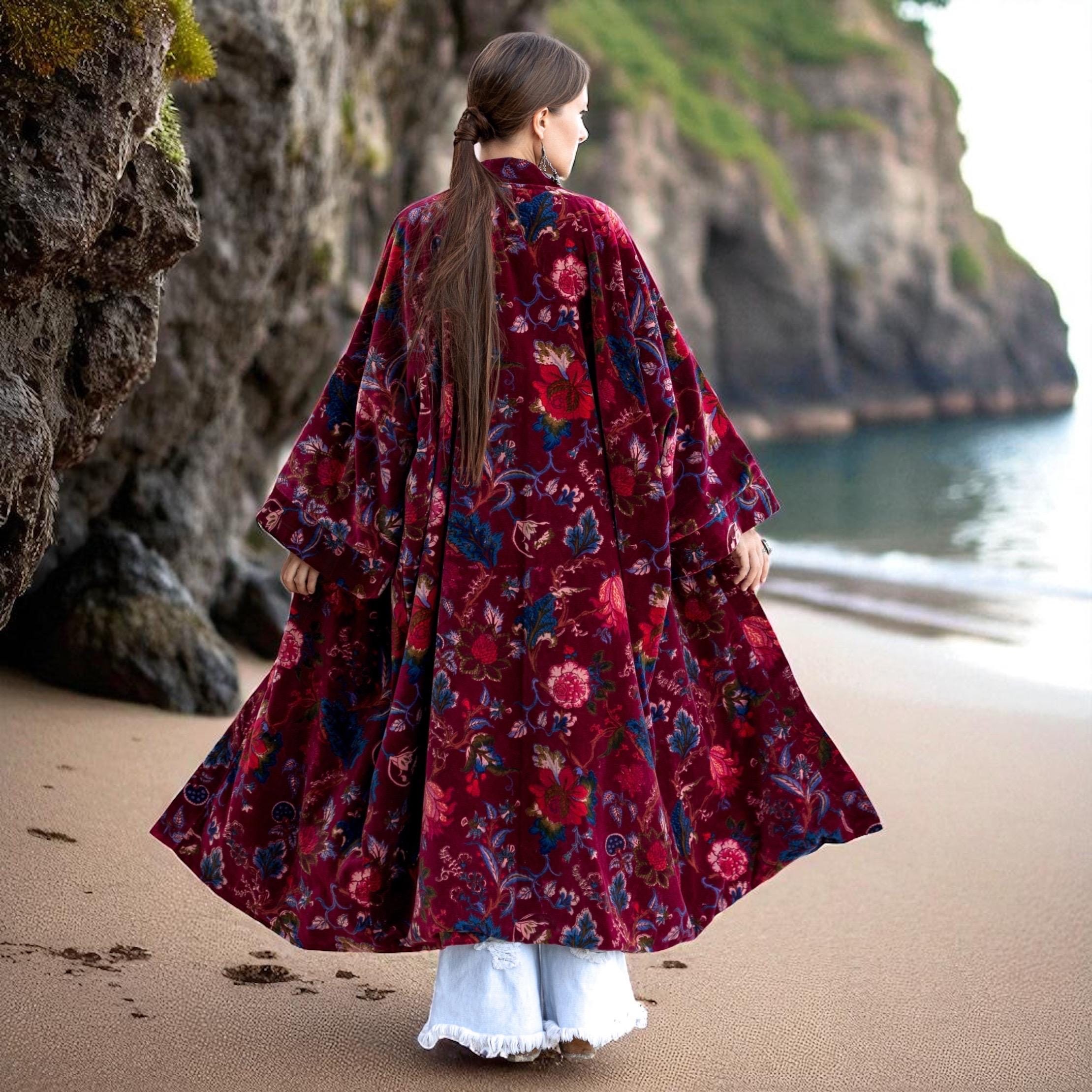 Step into radiant elegance with the Crimson Raisa Bloom edition of the MAI Velvet Kimono Jacket — a handcrafted duster made to celebrate beauty, movement, and soul. Created from 100% breathable cotton velvet and fully lined in soft cotton, this statement coat flows with effortless sophistication for fall gatherings, winter holidays, and spring awakenings.