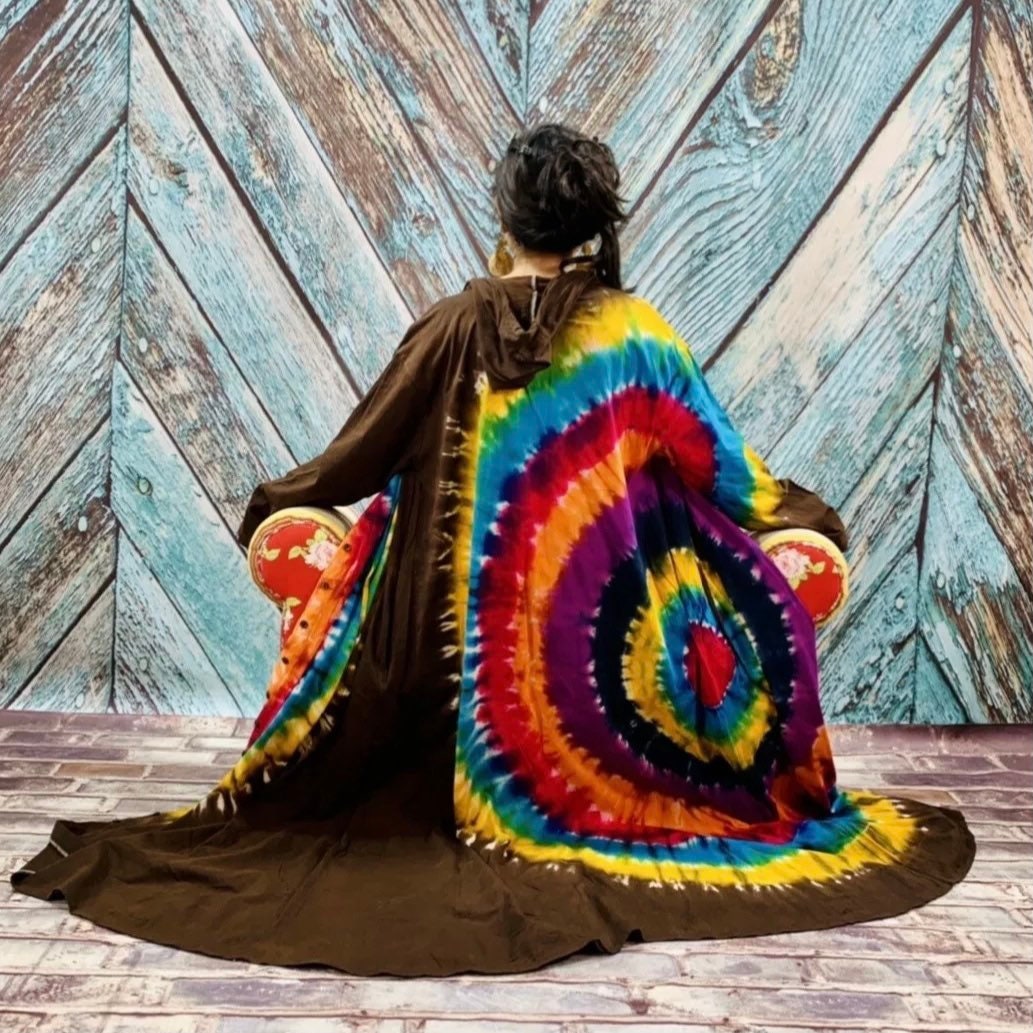 DREAM Long Hoodie Hand Tie Dye Duster Hood Cardigan Shirt Tunic Festival Dress Kimono One Size Boho Hippie Jersey Cotton