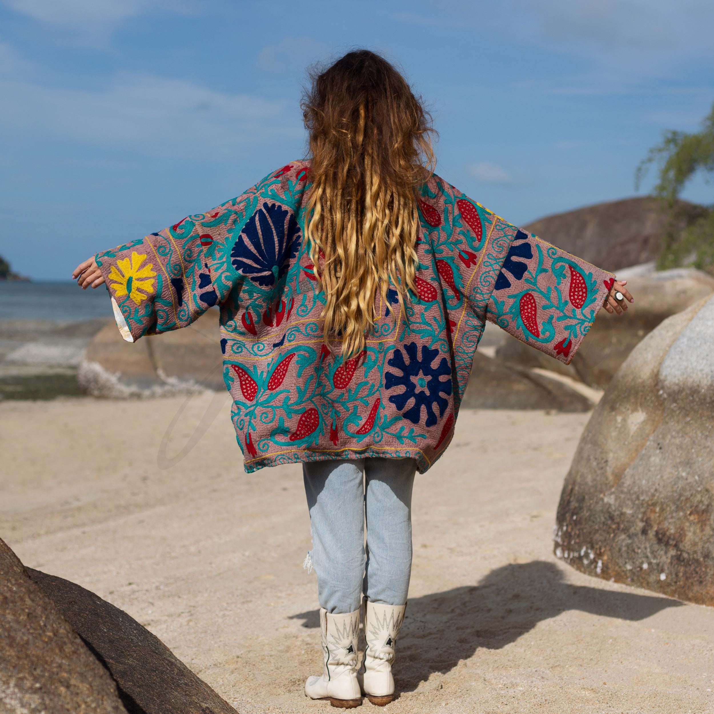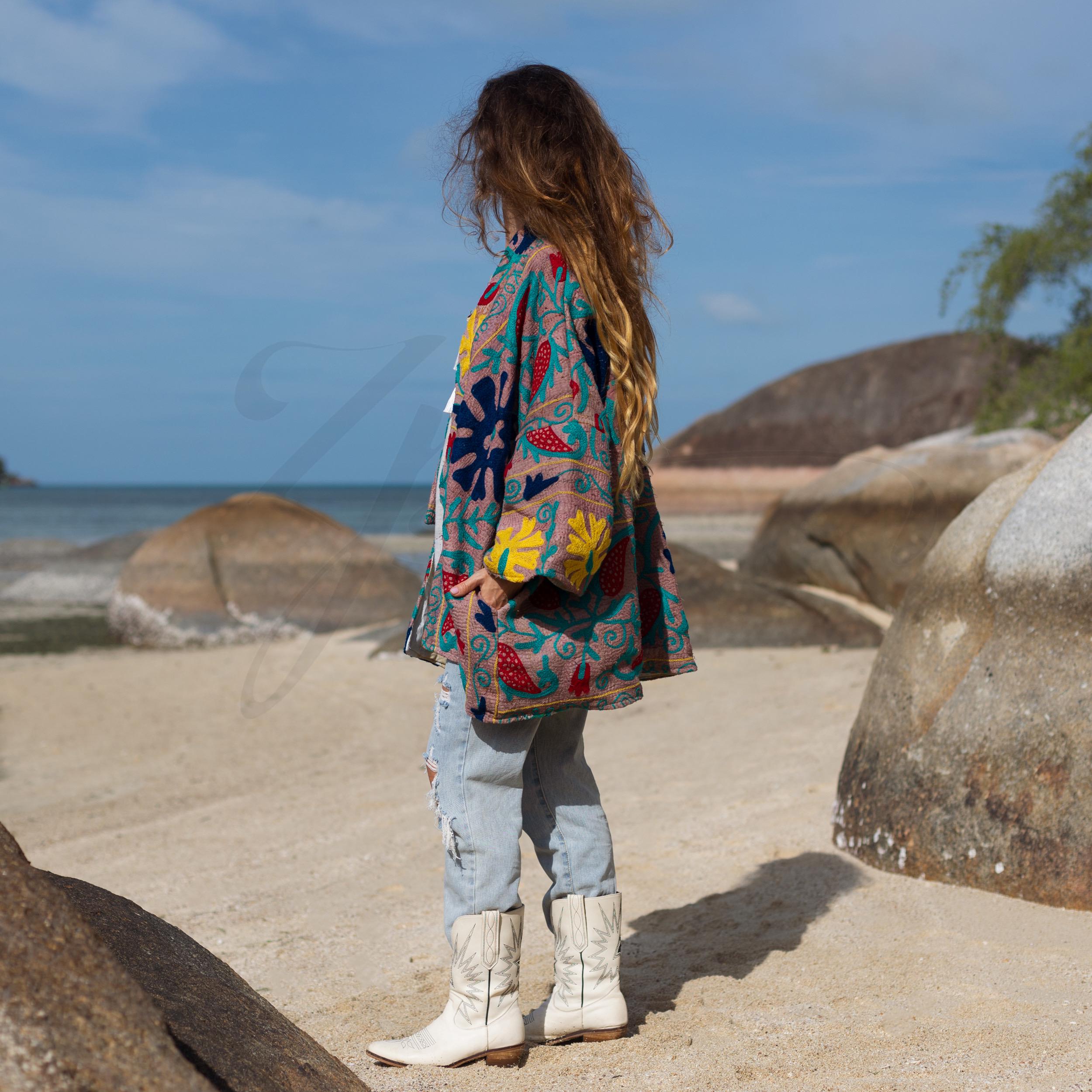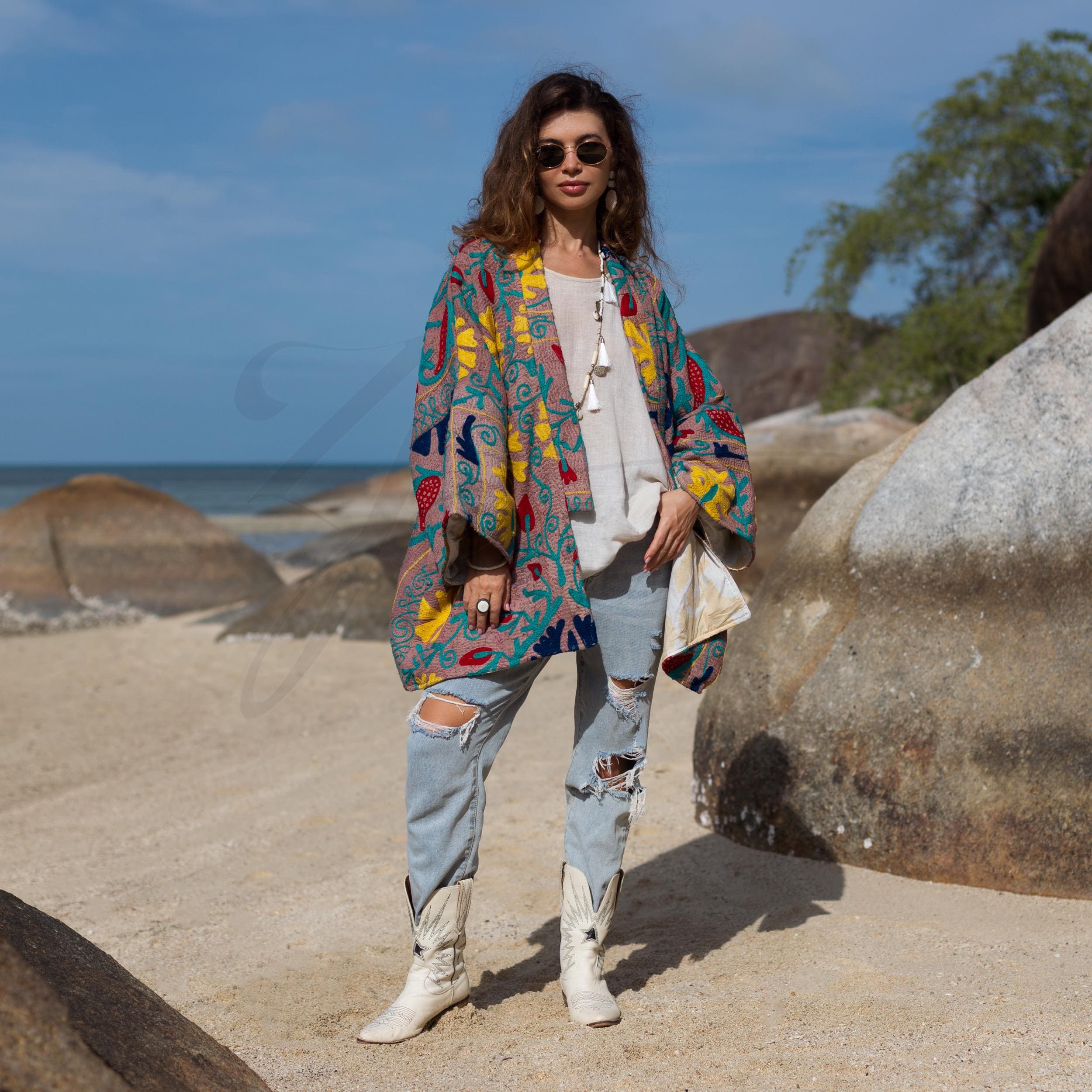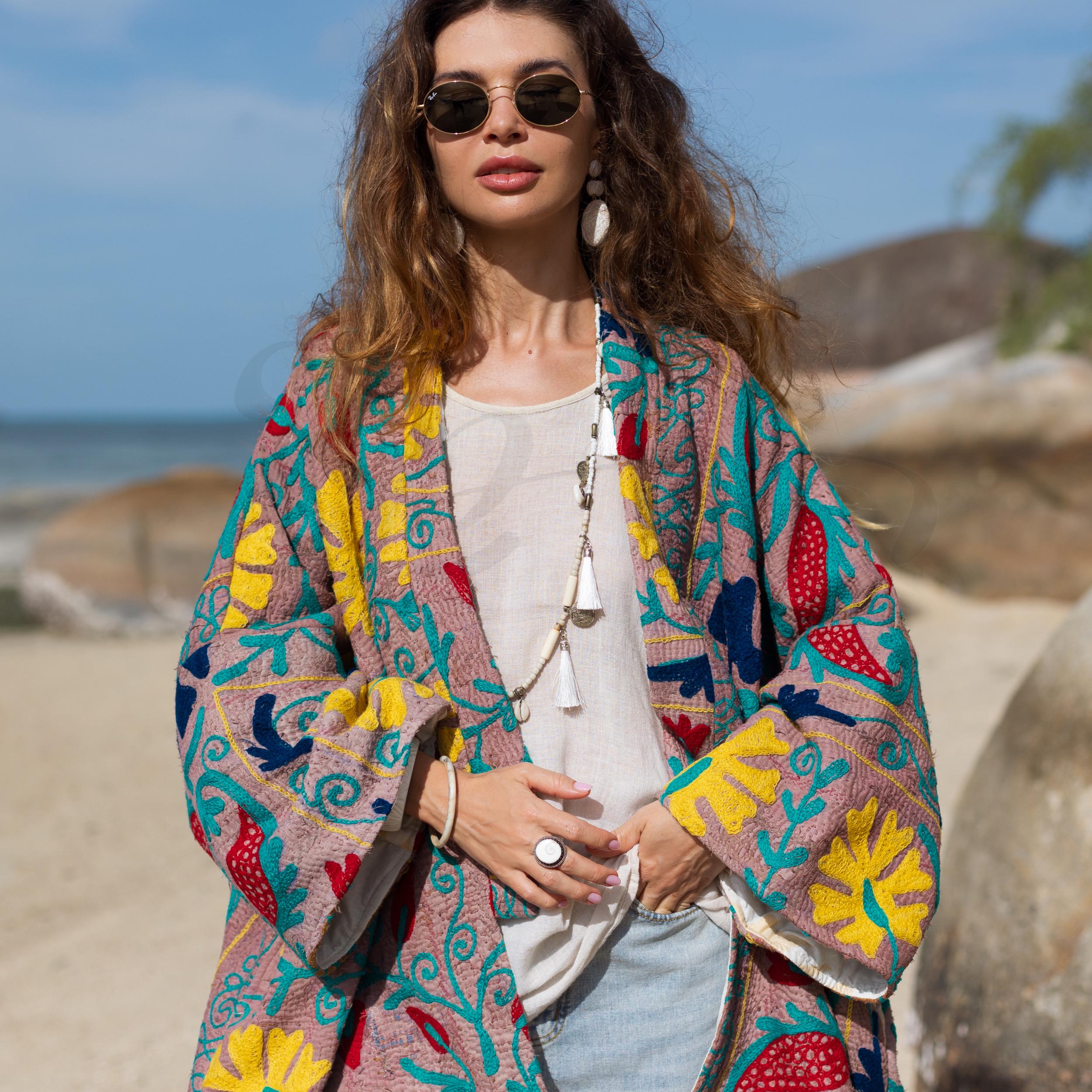 Embroidered Floral Kimono Jacket: Quilted Cotton Boho Chic Plus Size – Mari