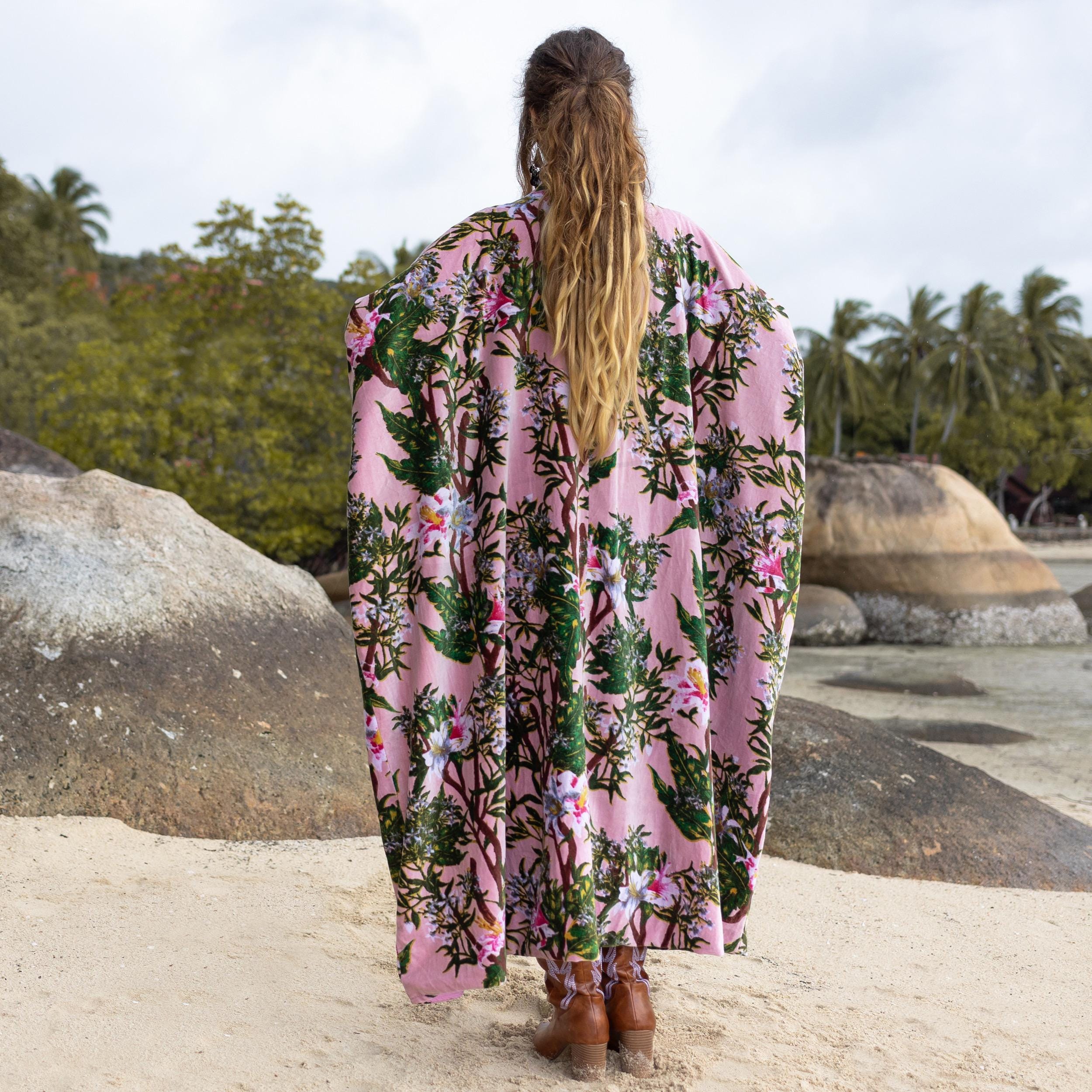 Crafted to perfection, the Harper Jade kimono is fully lined, ensuring a sensation of exquisite comfort and timeless appeal. Its maxi silhouette and 3/4 sleeves length effortlessly blend vintage Italian design inspiration with modern boho-chic flair, inviting you to waltz through life in true, free-spirited style.