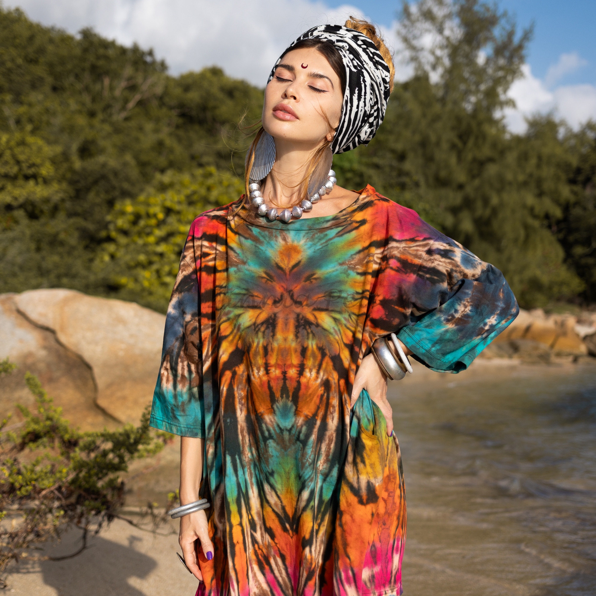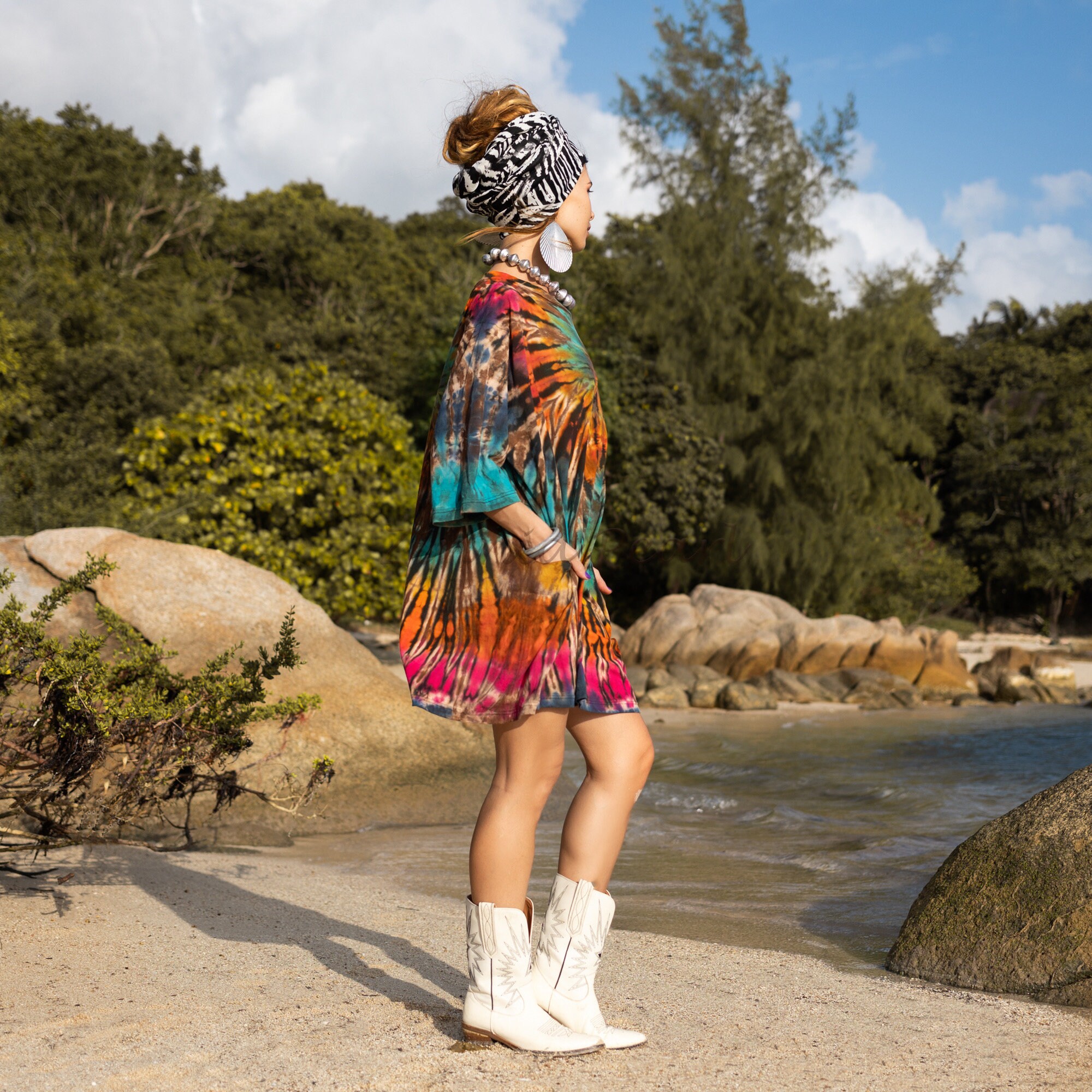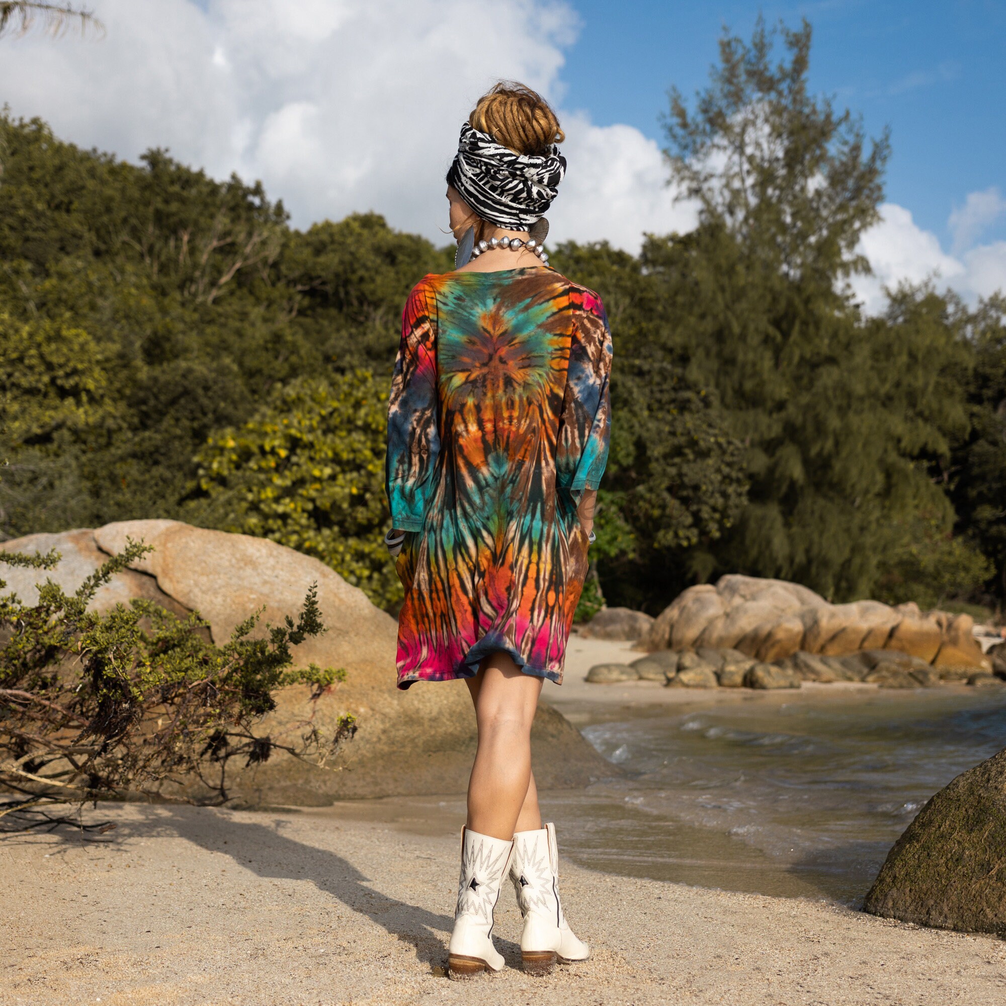 Stay groovy and comfy in the Galaxy tunic tiedye! This oversized tunic mini dress bursts with far out vibes in different gorgeous tie dye print.