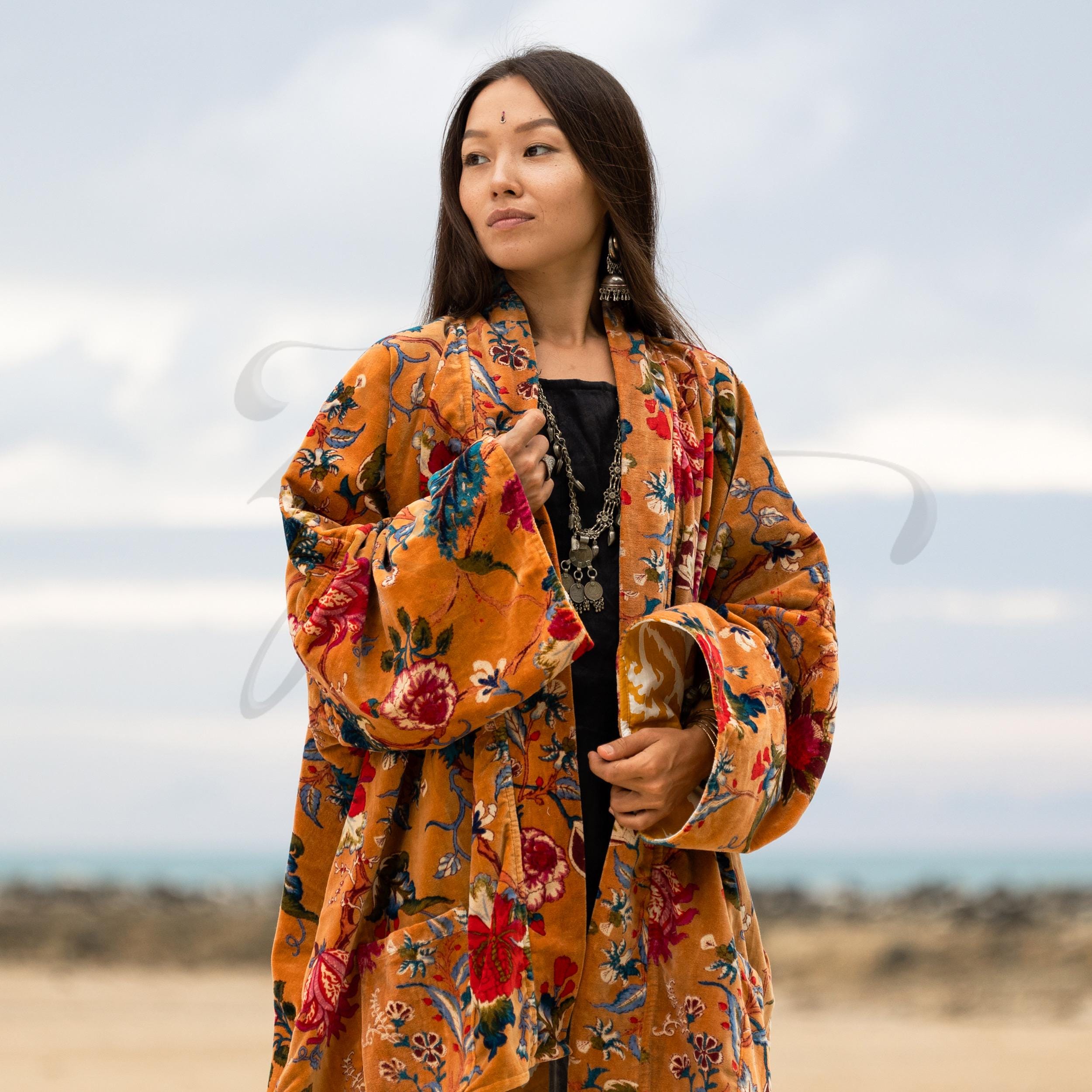 Golden Ember Kimono – A Velvet Duster of Boho Flowers for Every Body | Mei by ZinniaPearl