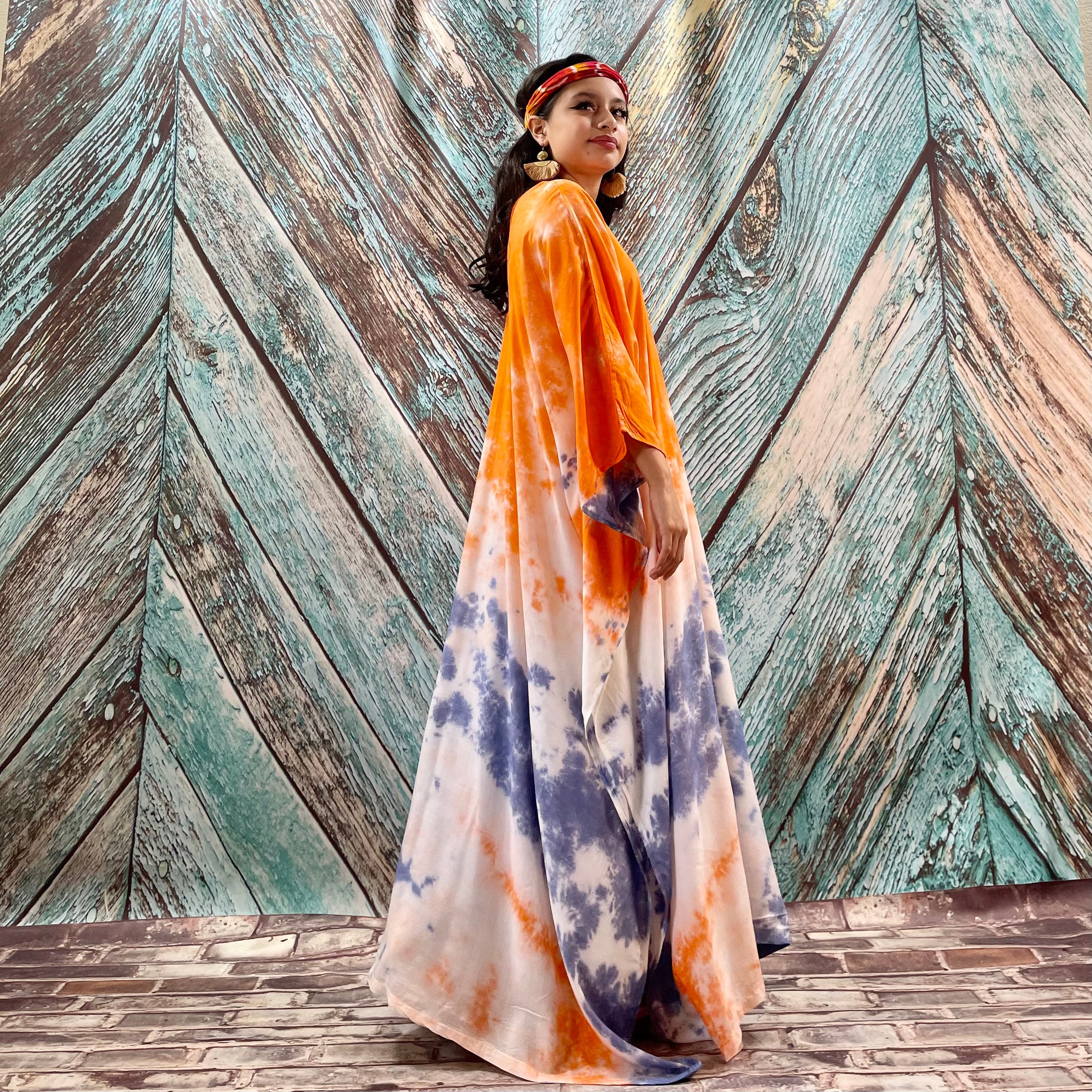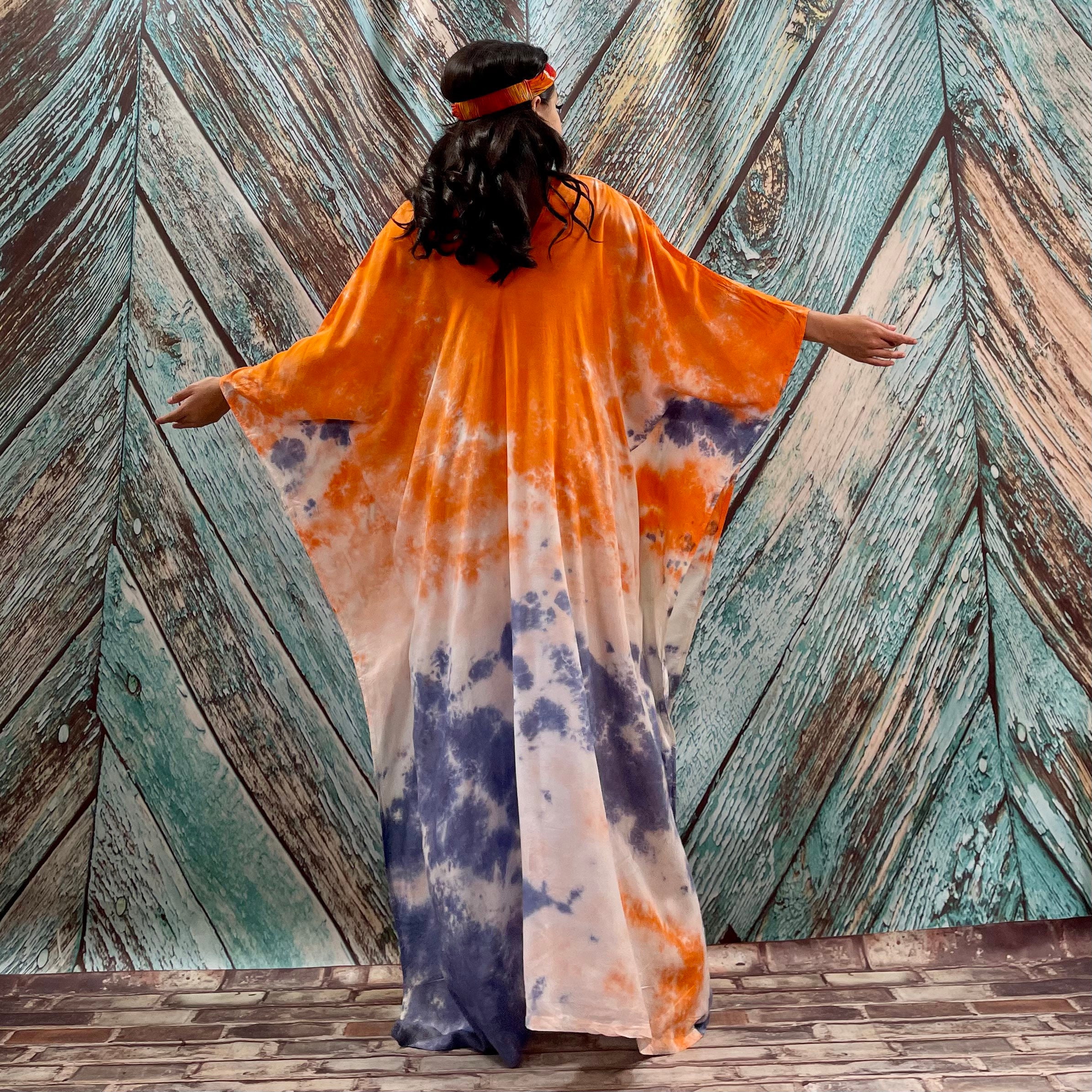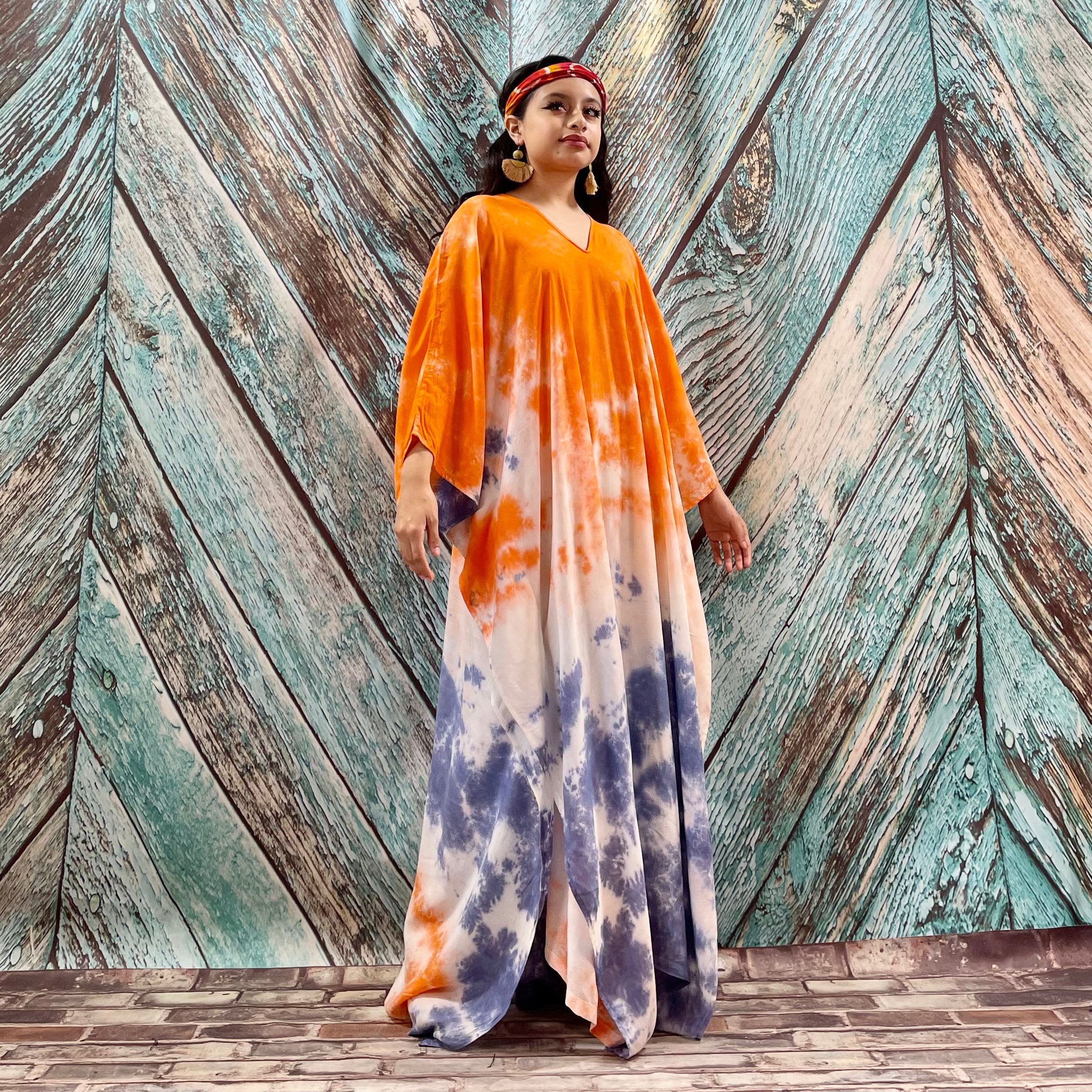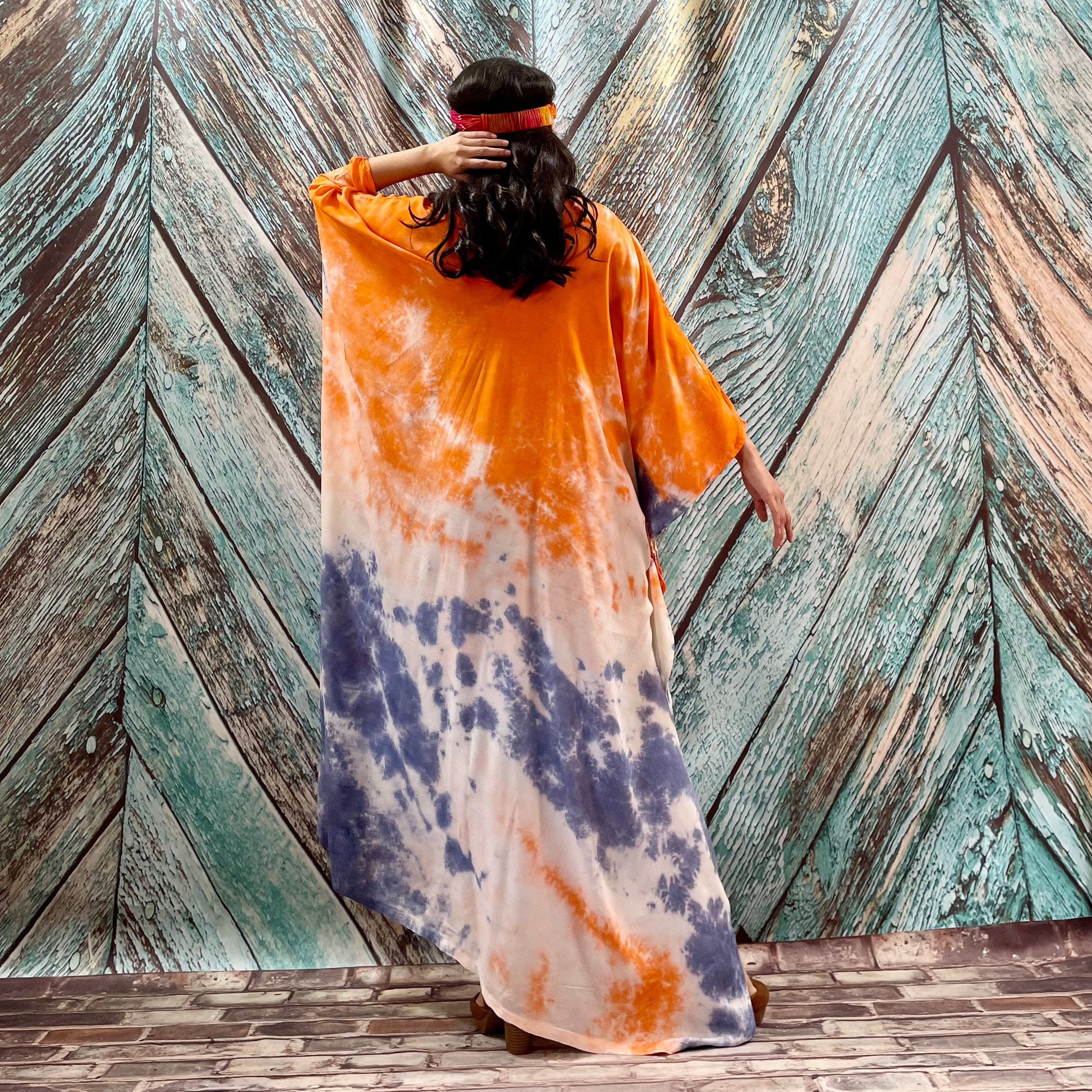 Grace Handcrafted Tie-Dye Kaftan – Plus Size Boho Rayon Dress | ZinniaPearl