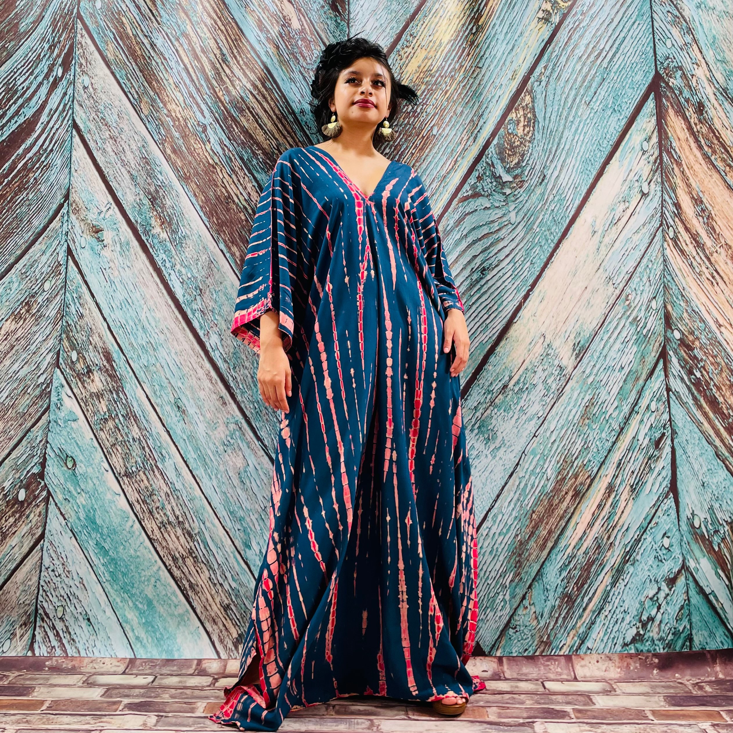 Grace Handcrafted Tie-Dye Kaftan – Plus Size Boho Rayon Dress | ZinniaPearl