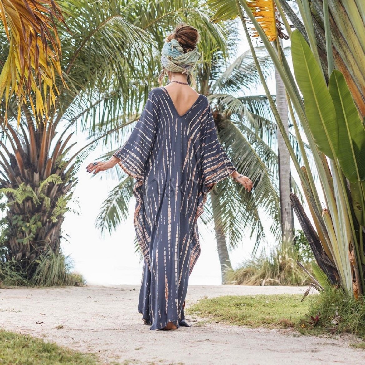 Grace Handcrafted Tie-Dye Rayon Kaftan – Boho Chic Plus Size Dress