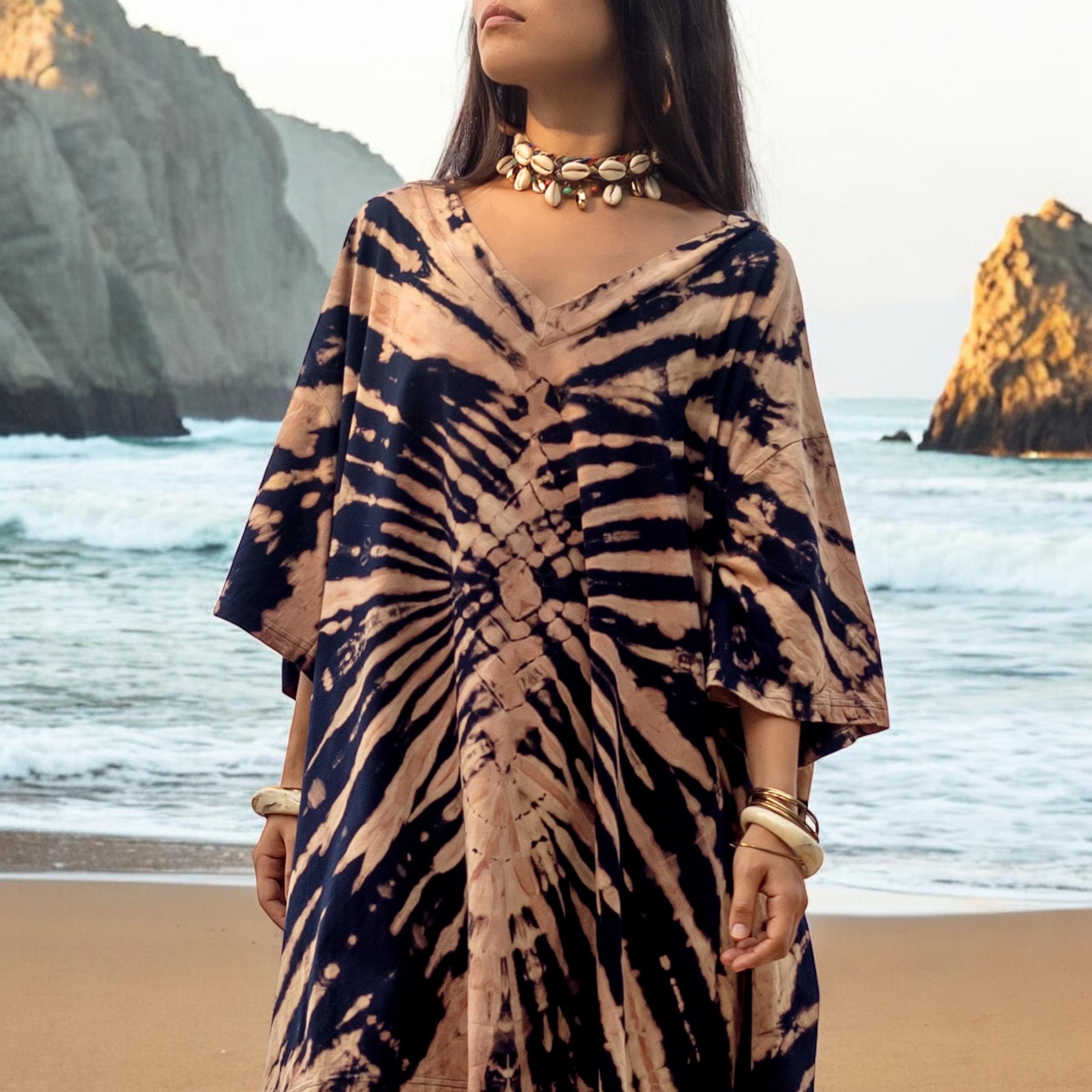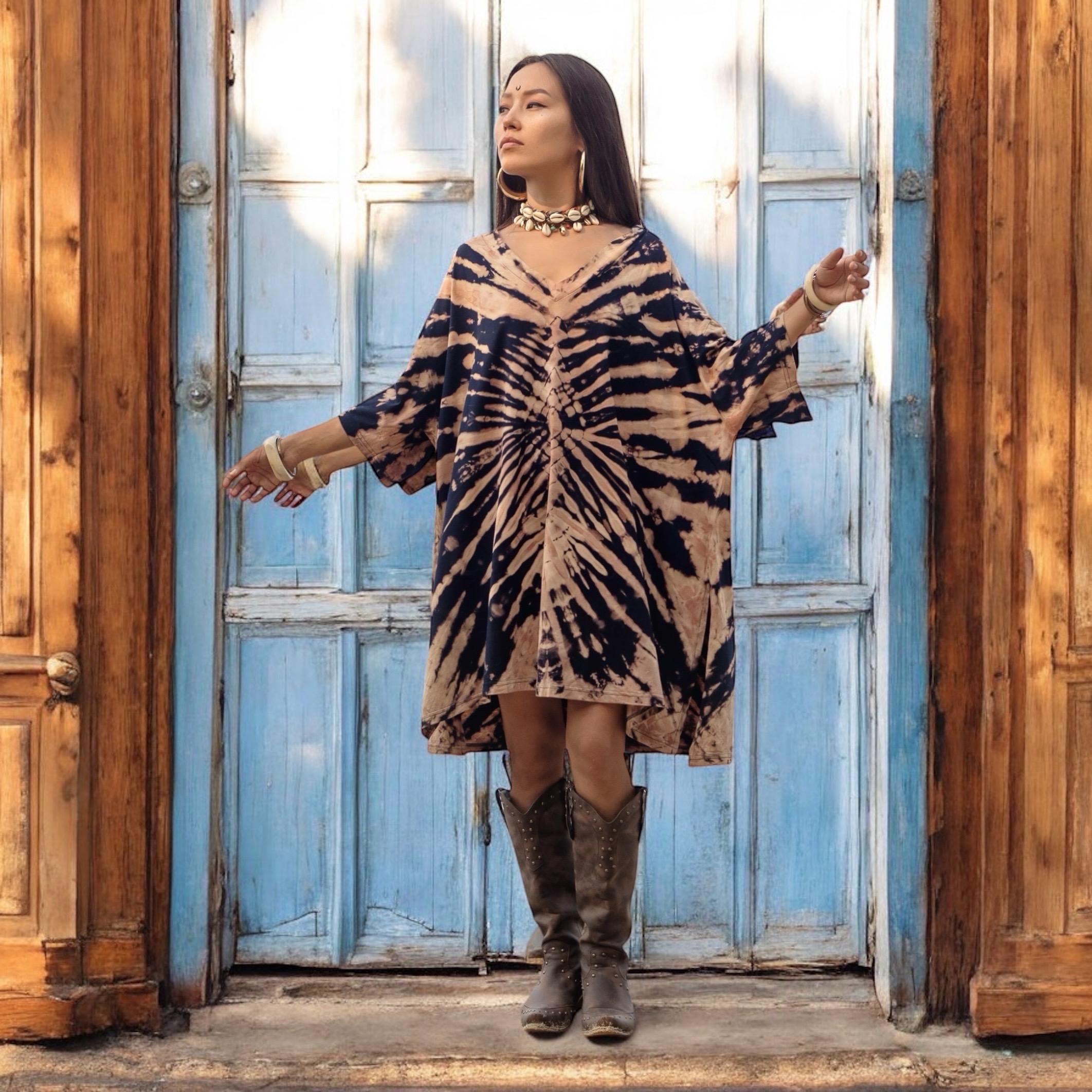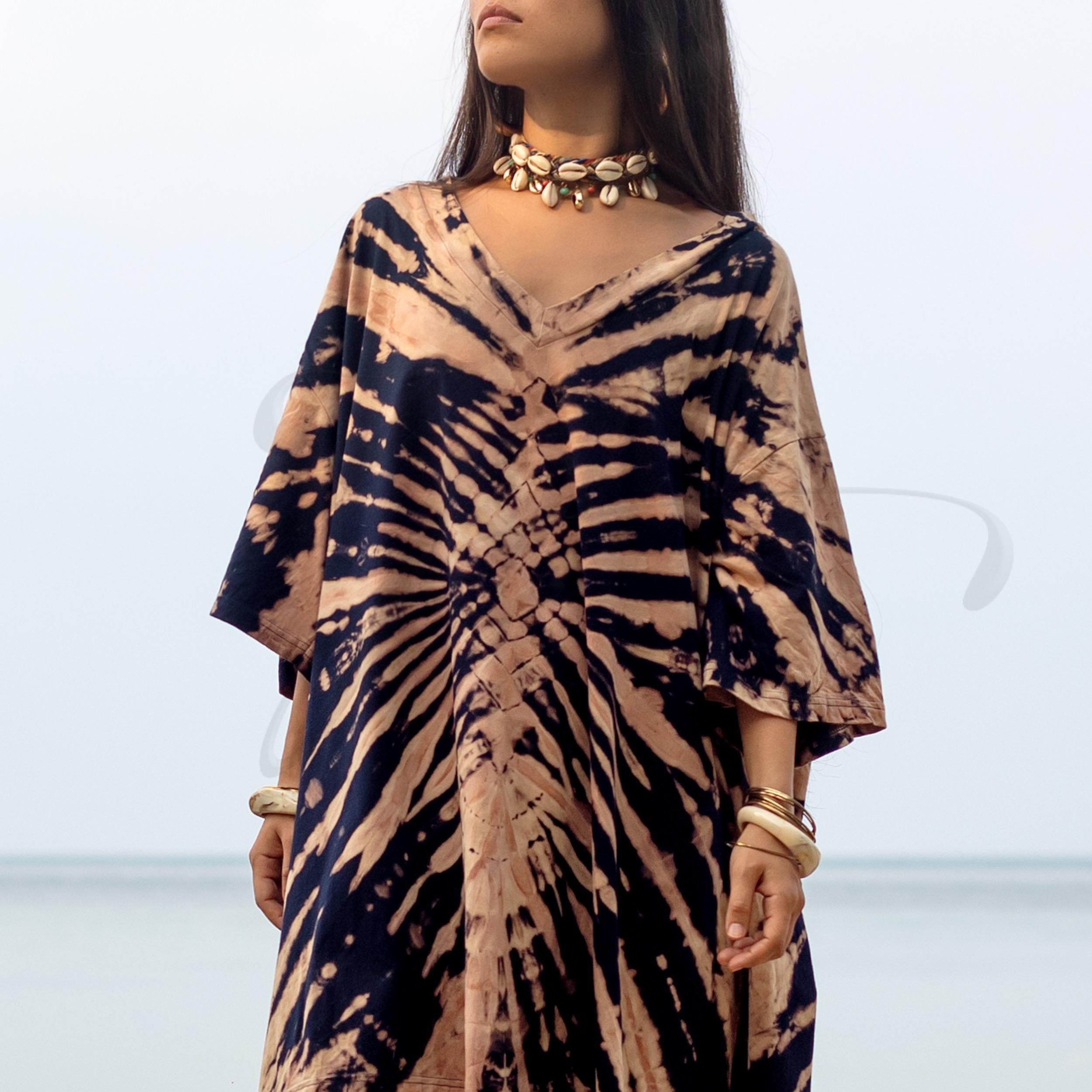 Hand-Dyed Tie-Dye Cotton Kaftan Dress: Boho Festival Tunic – Ninive