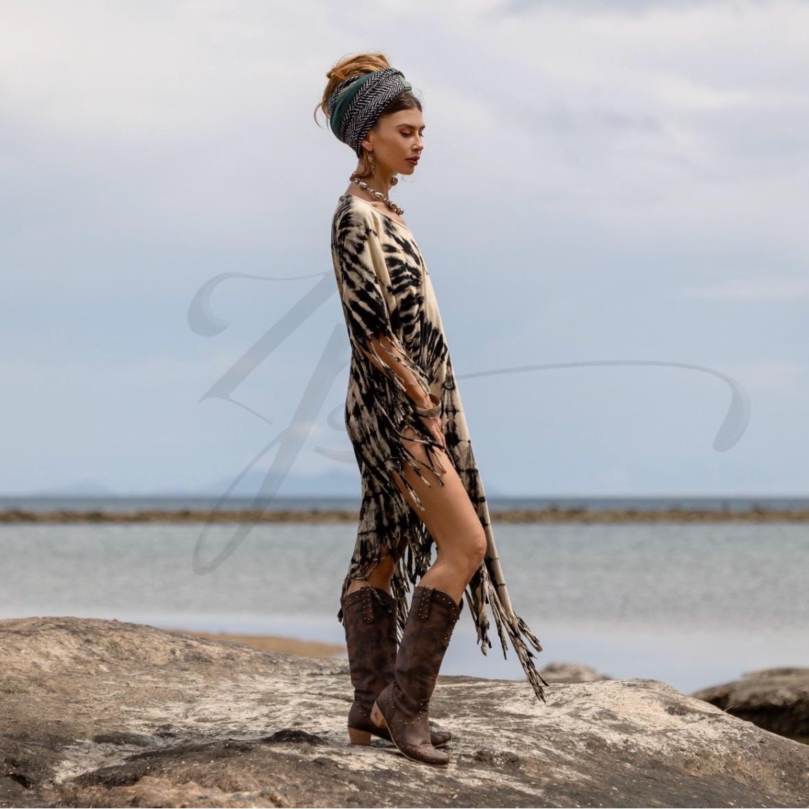 Meet Arlo, your sacred companion in movement, magic, and moonlit wanderings. This handmade fringe kaftan flows with bohemian soul—part festival poncho, part plus size beach cover-up, and all goddess energy.