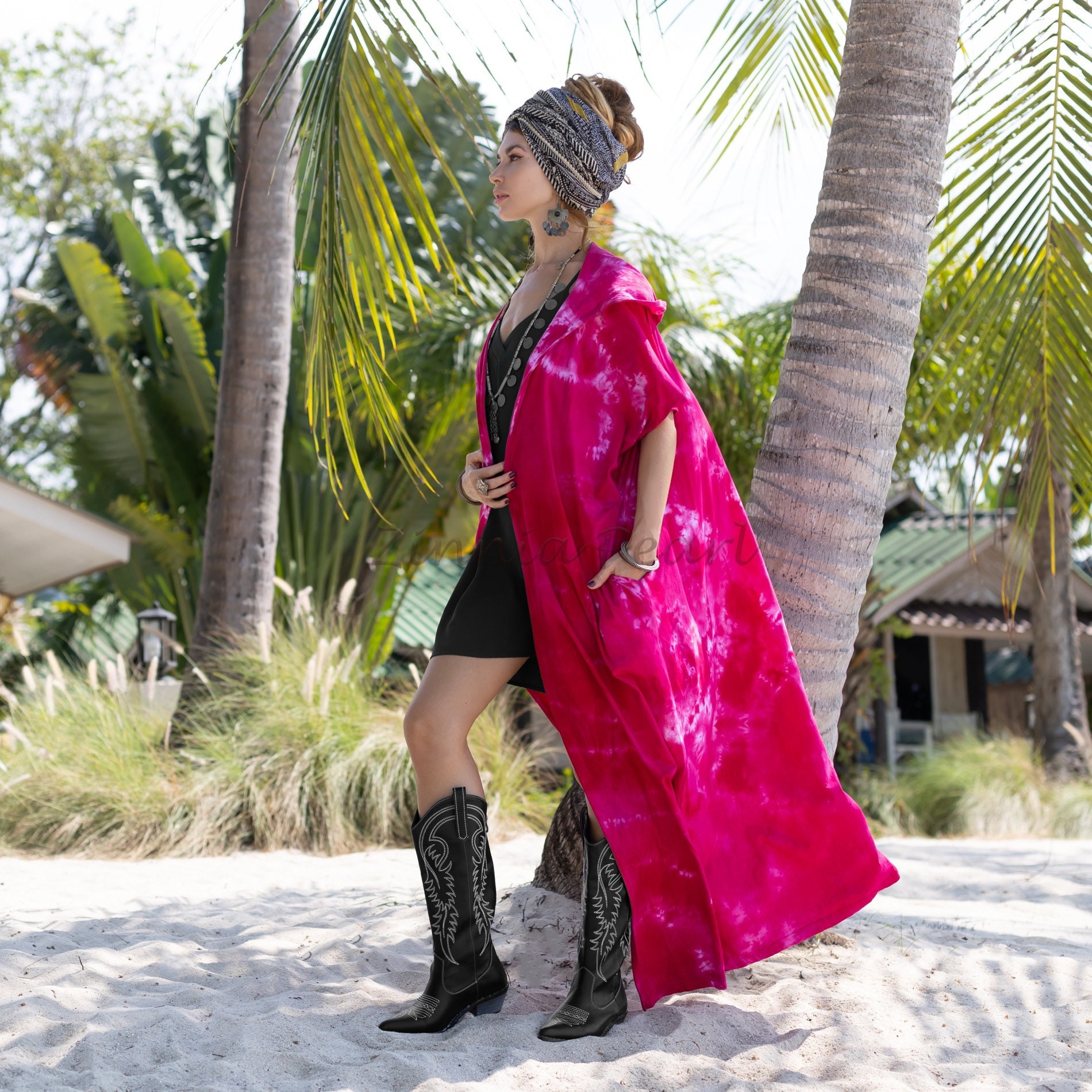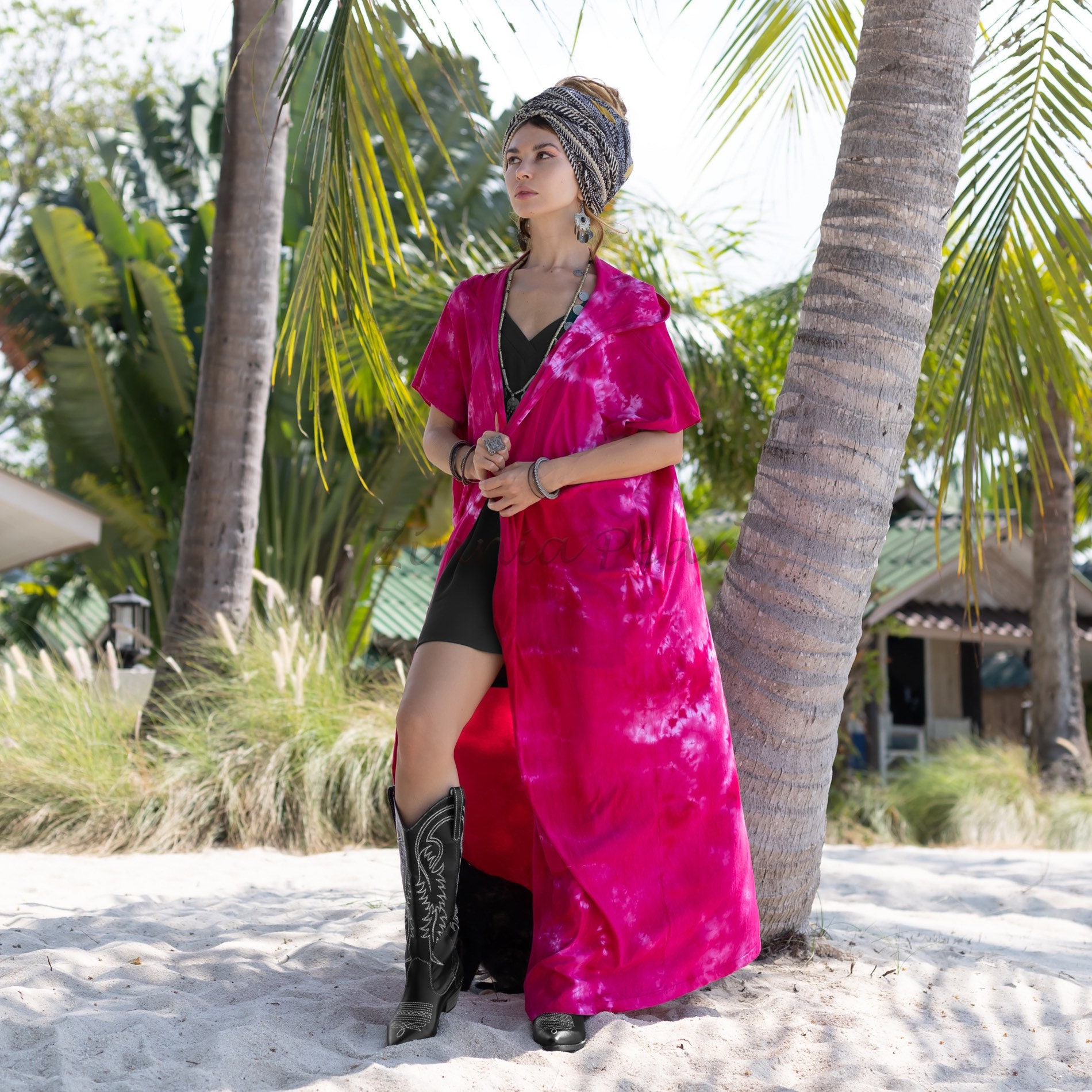 Hand Tie-dye Cotton Maxi Duster: Festival Beach Kimono – Kayla
