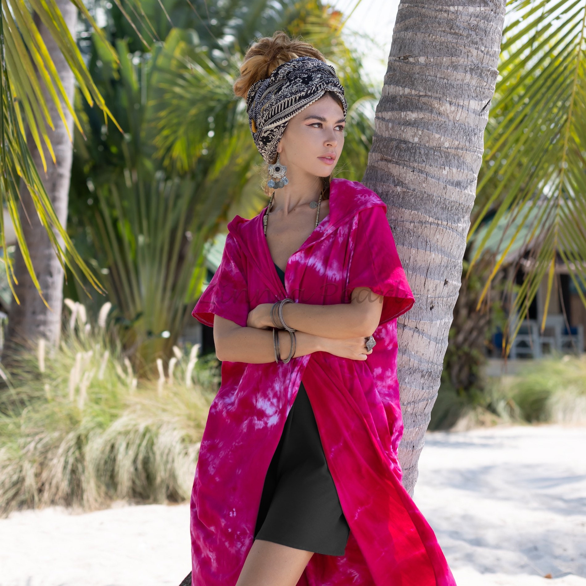 Kayla Hand Tie dye Maxi Long Festival Cotton Hoodie Duster Beach Coverup Kimono vacation Holiday Wears