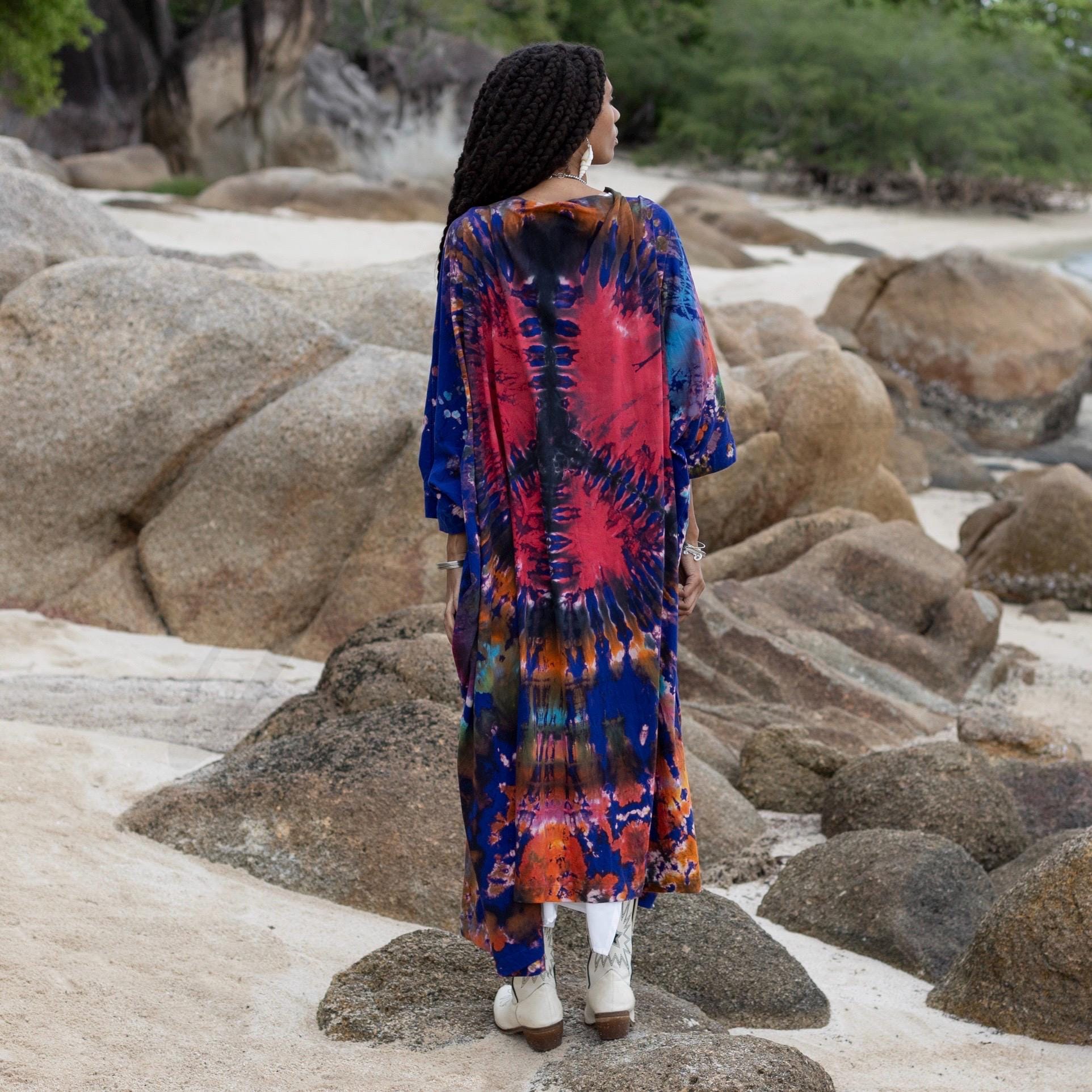 Hand-Tie Dye Kimono Duster: Plus Size Boho Cotton Festival Wear – Aurora
