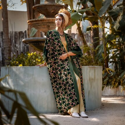 This stunning maxi kaftan from our Premium Jersey Cotton collection features an extended boat neckline with ruffle trim from neckline to hem.
