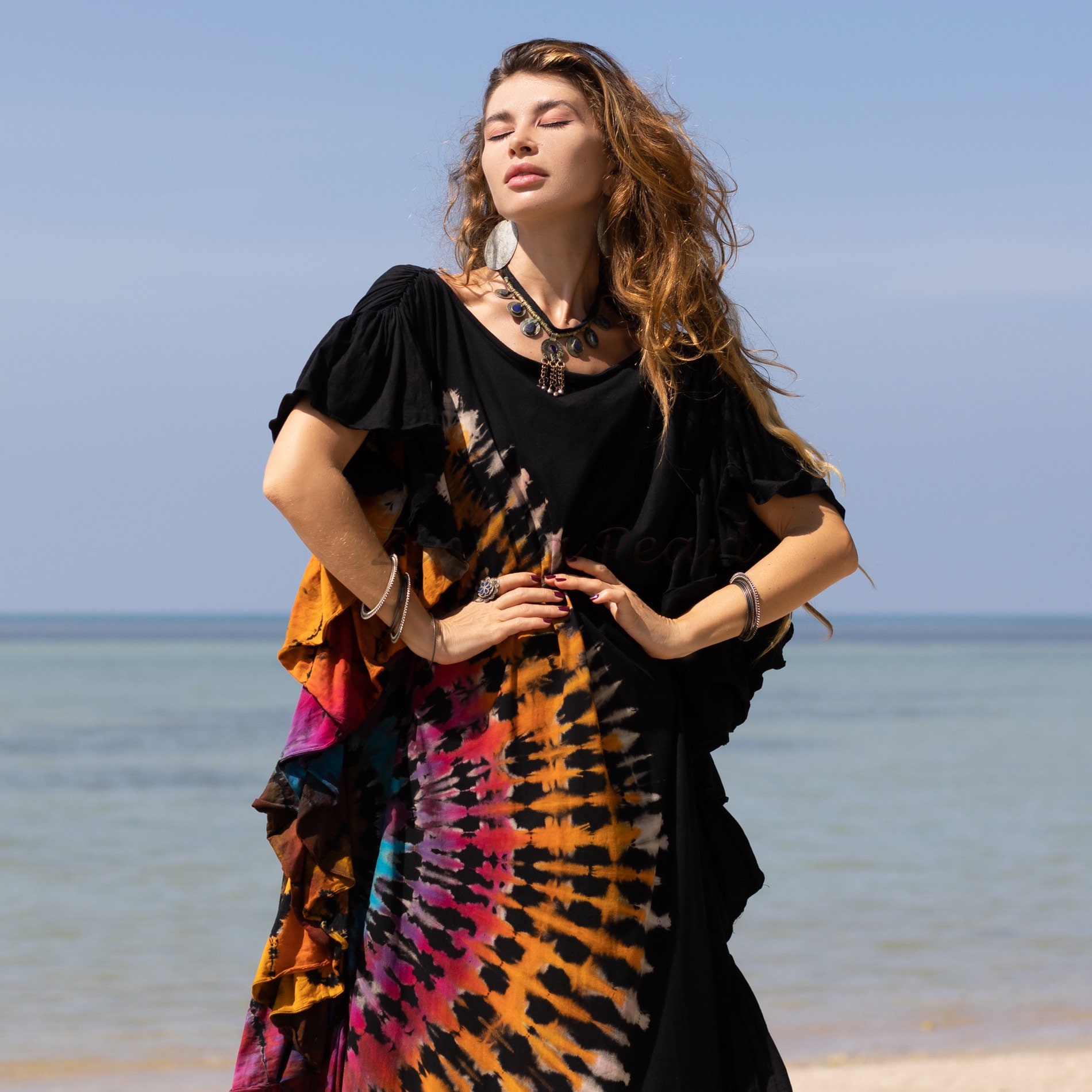 Hand Tie Dye Maxi Kaftan Dress: Boho Festival Jersey Cotton – Ema