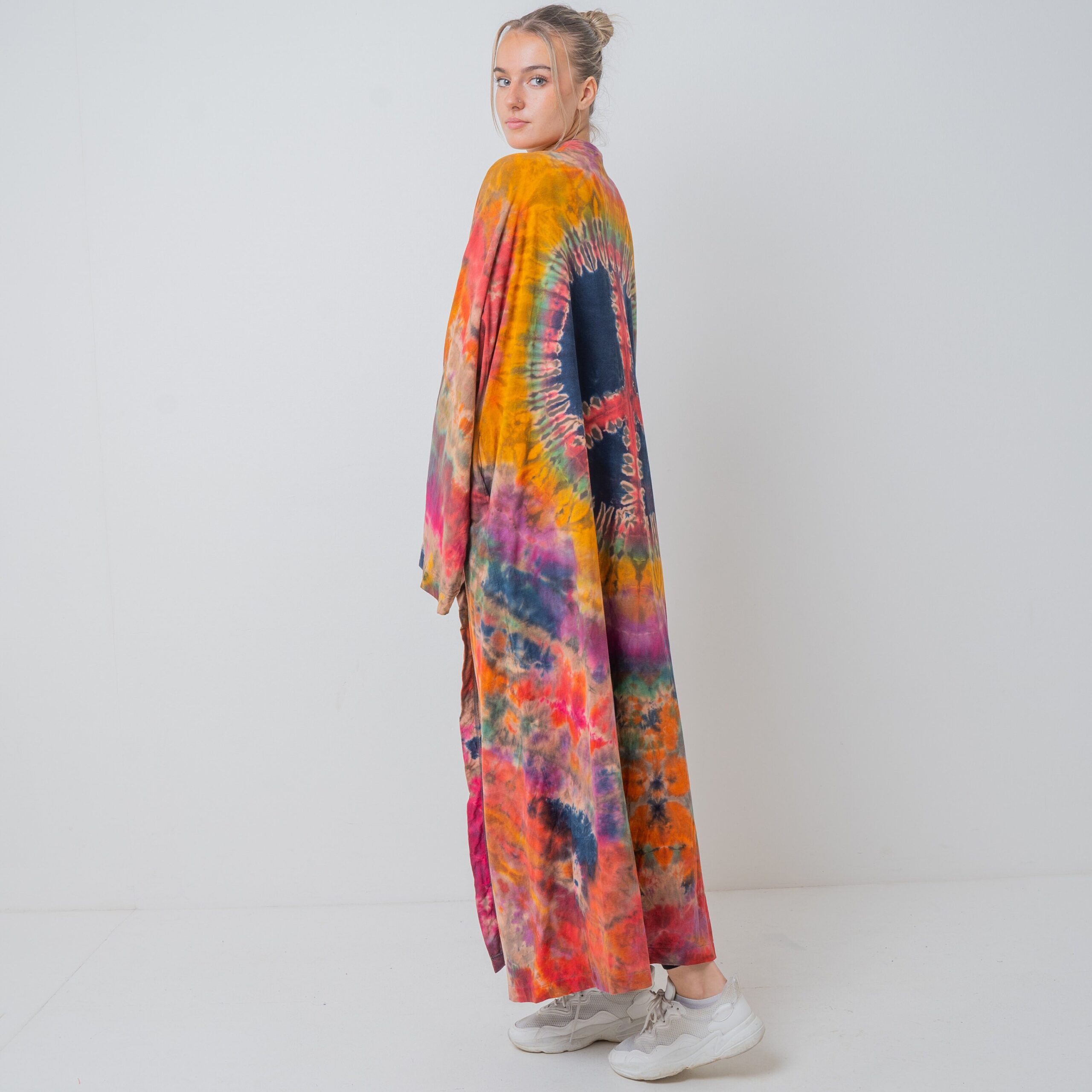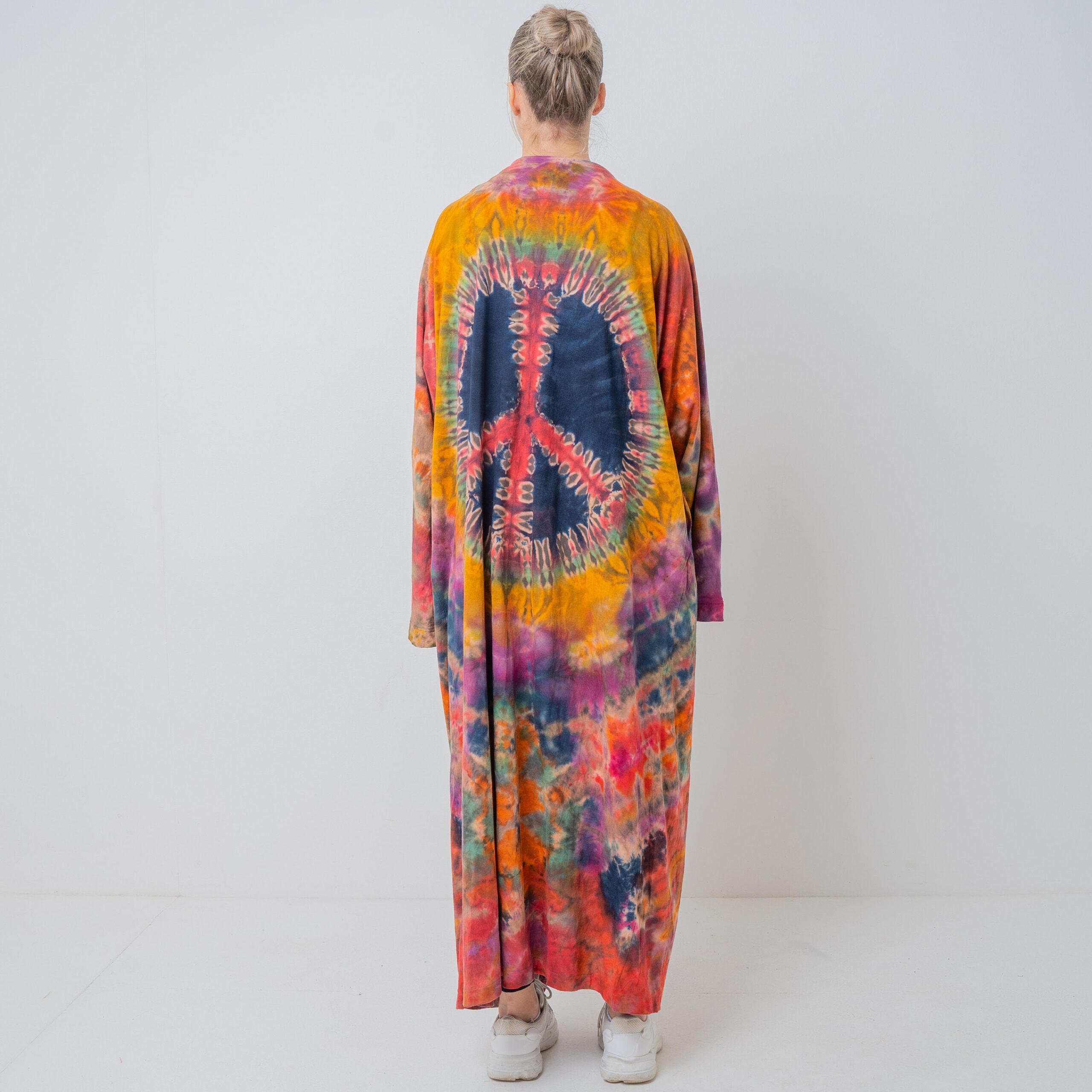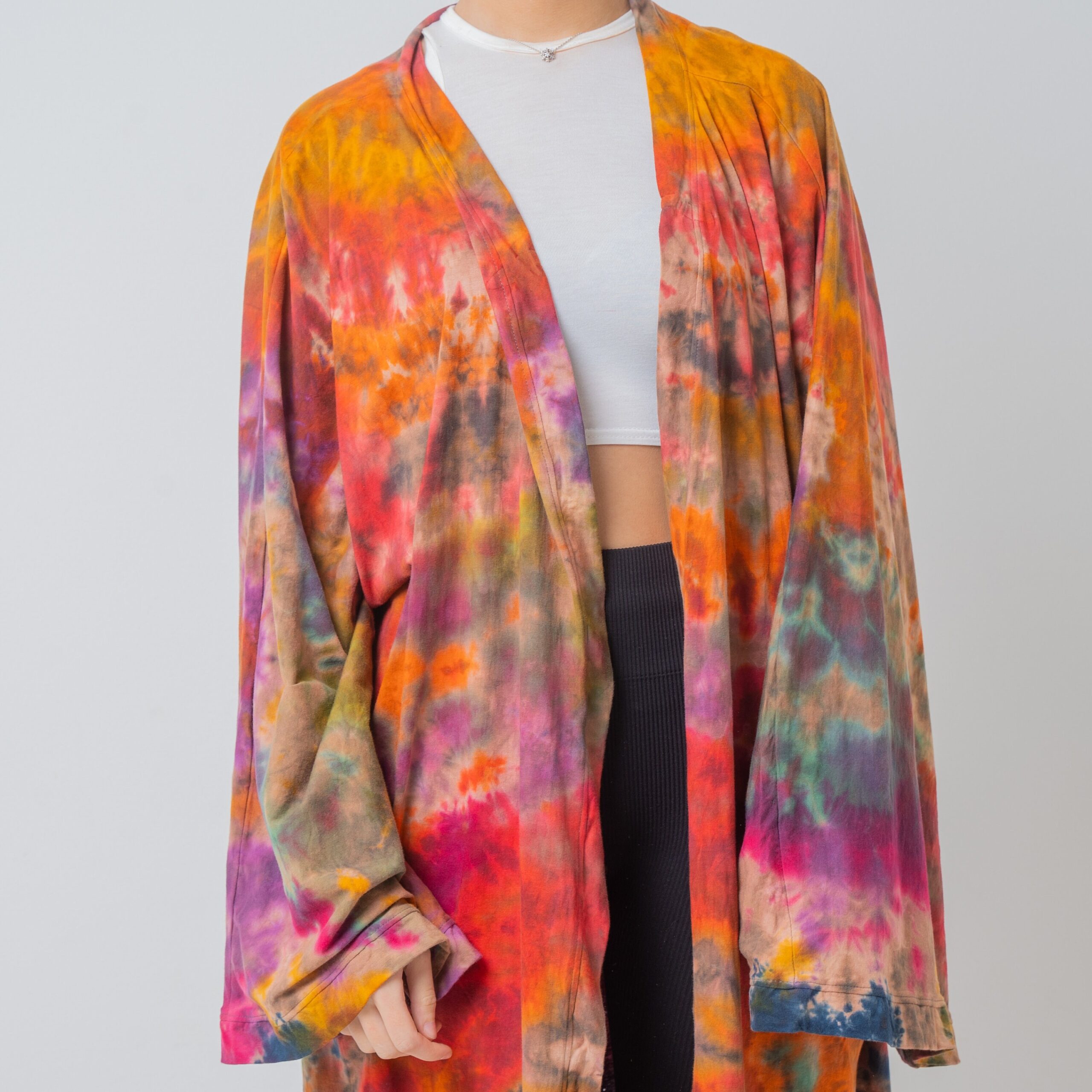 Hand Tie-Dye Maxi Kimono Duster: Boho Festival Cotton Cardigan – Yuma