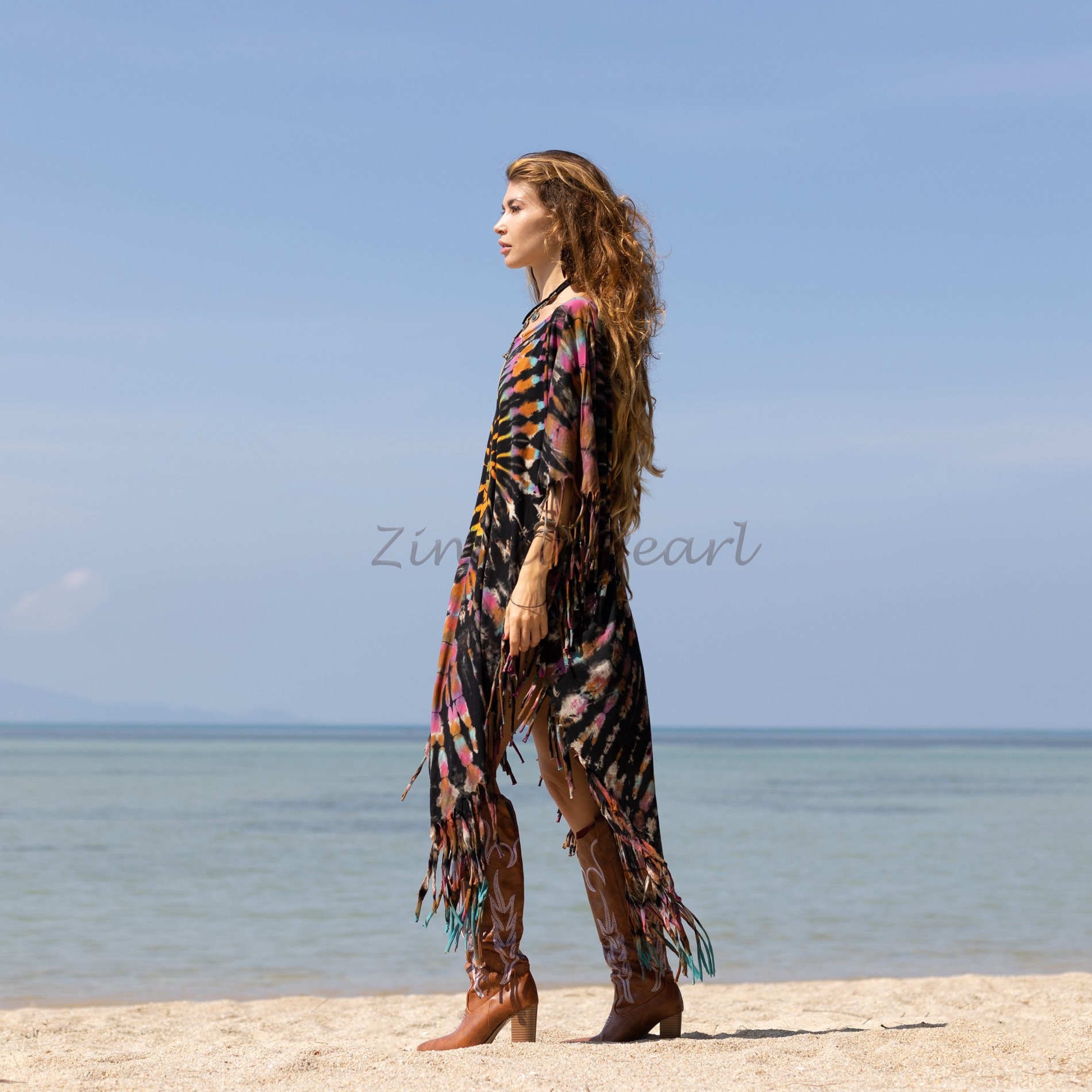 Hand-Tiedye Cotton Fringe Poncho: Relaxed Boho Cover-Up – Arlo