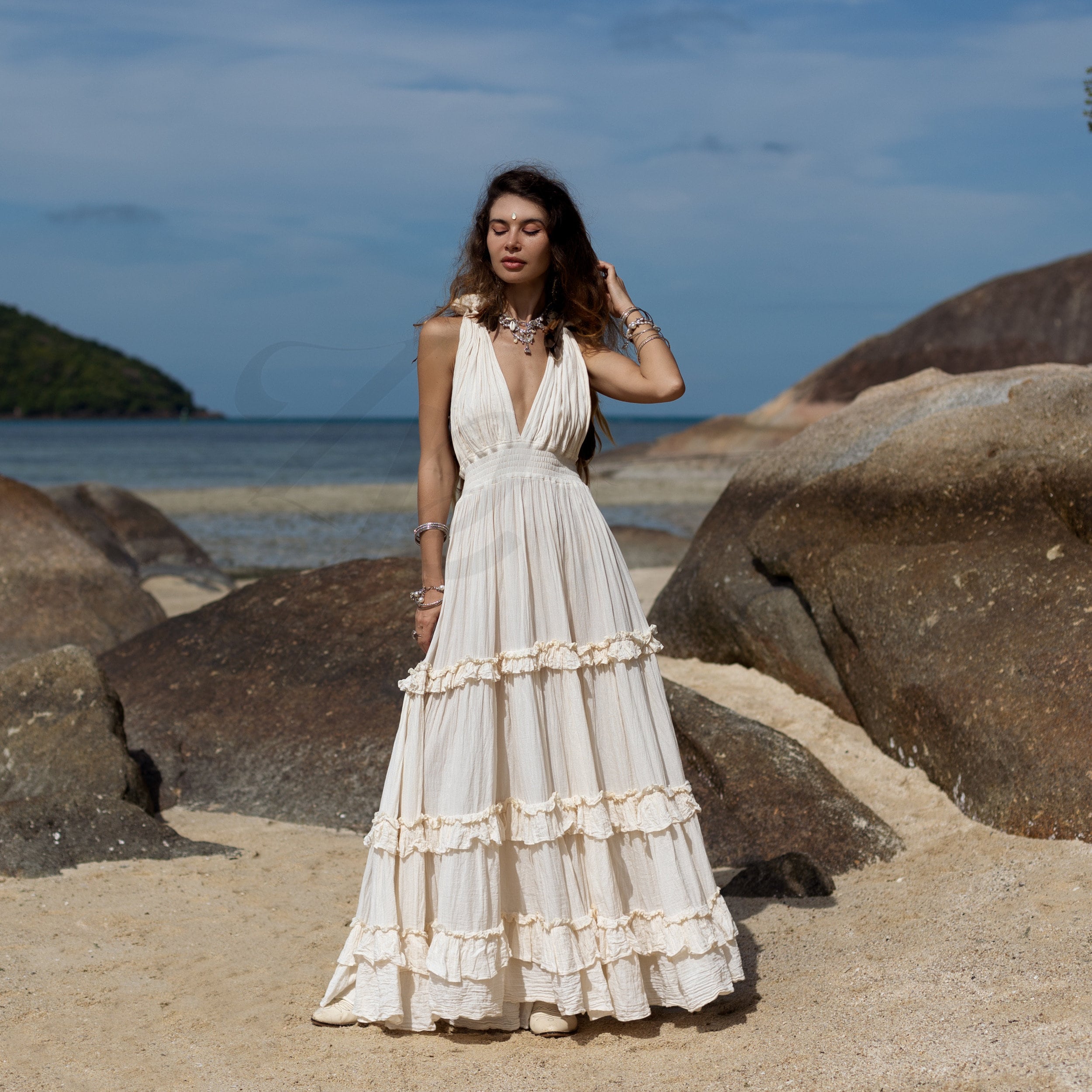 Handcrafted Boho Halter Wedding Dress: Raw Cotton Maxi Dress – Amalia
