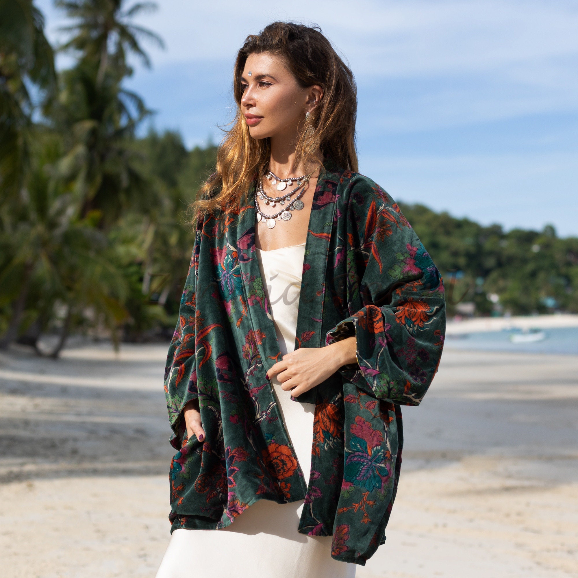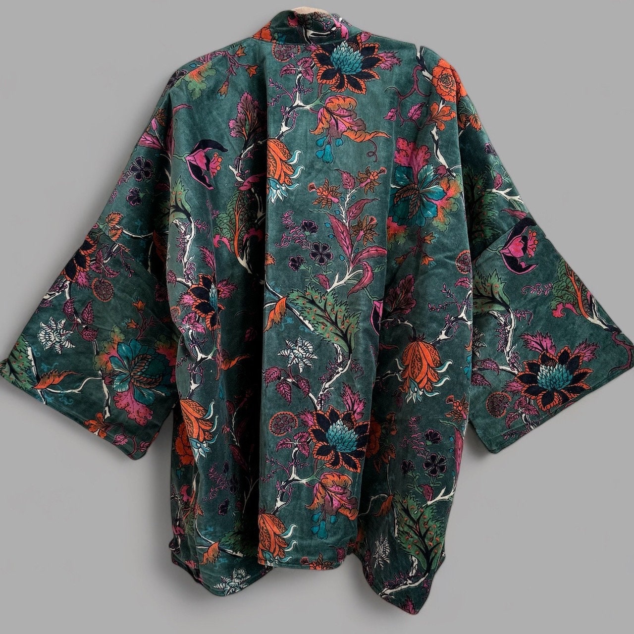 Handcrafted Cotton Velvet Kimono: Boho Chic Jacket, Plus Size – Mei