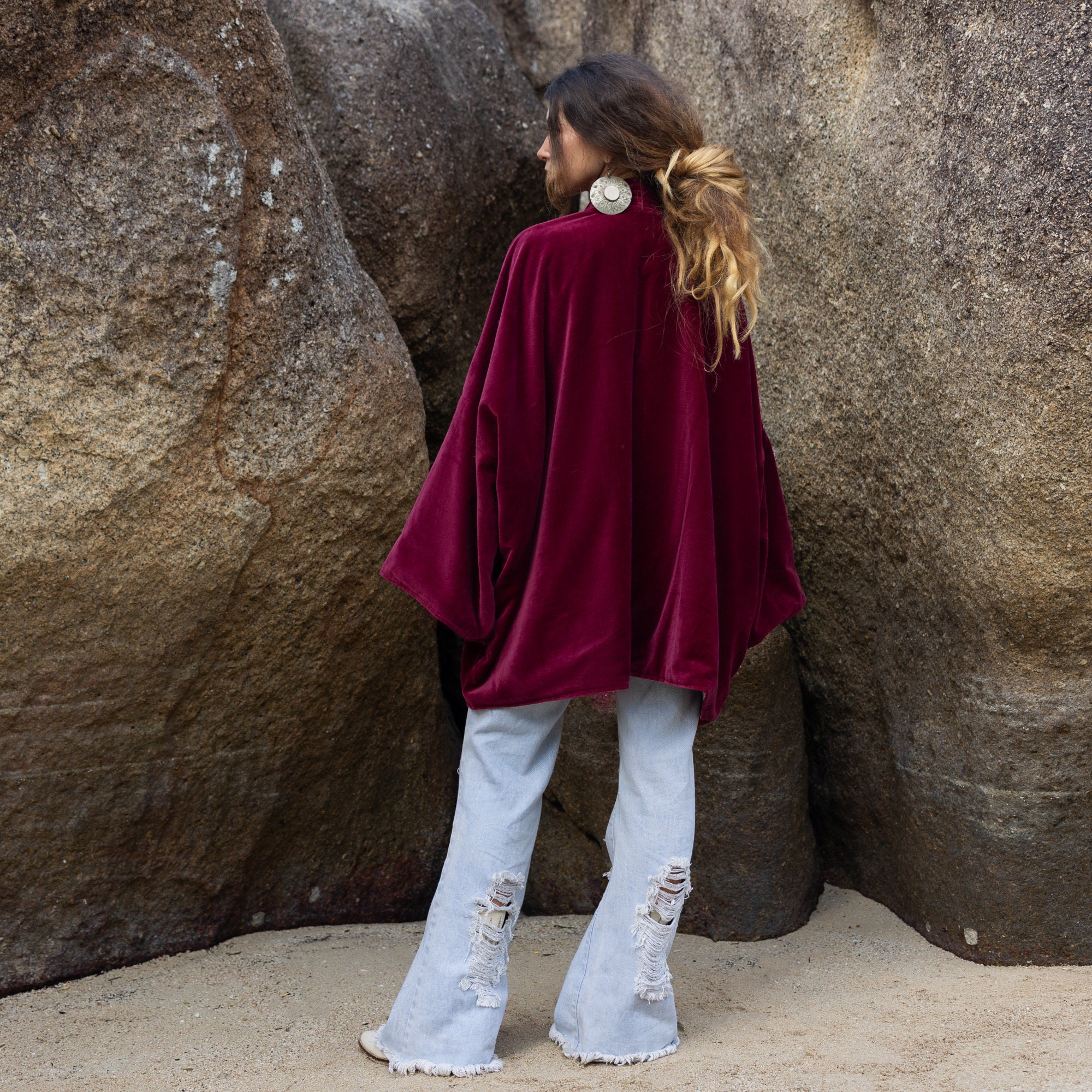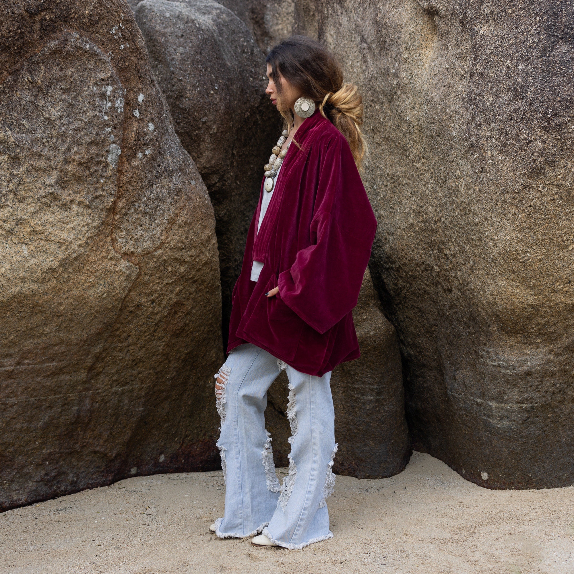 Handcrafted Cotton Velvet Kimono: Boho Chic Plus Size Jacket – Mei