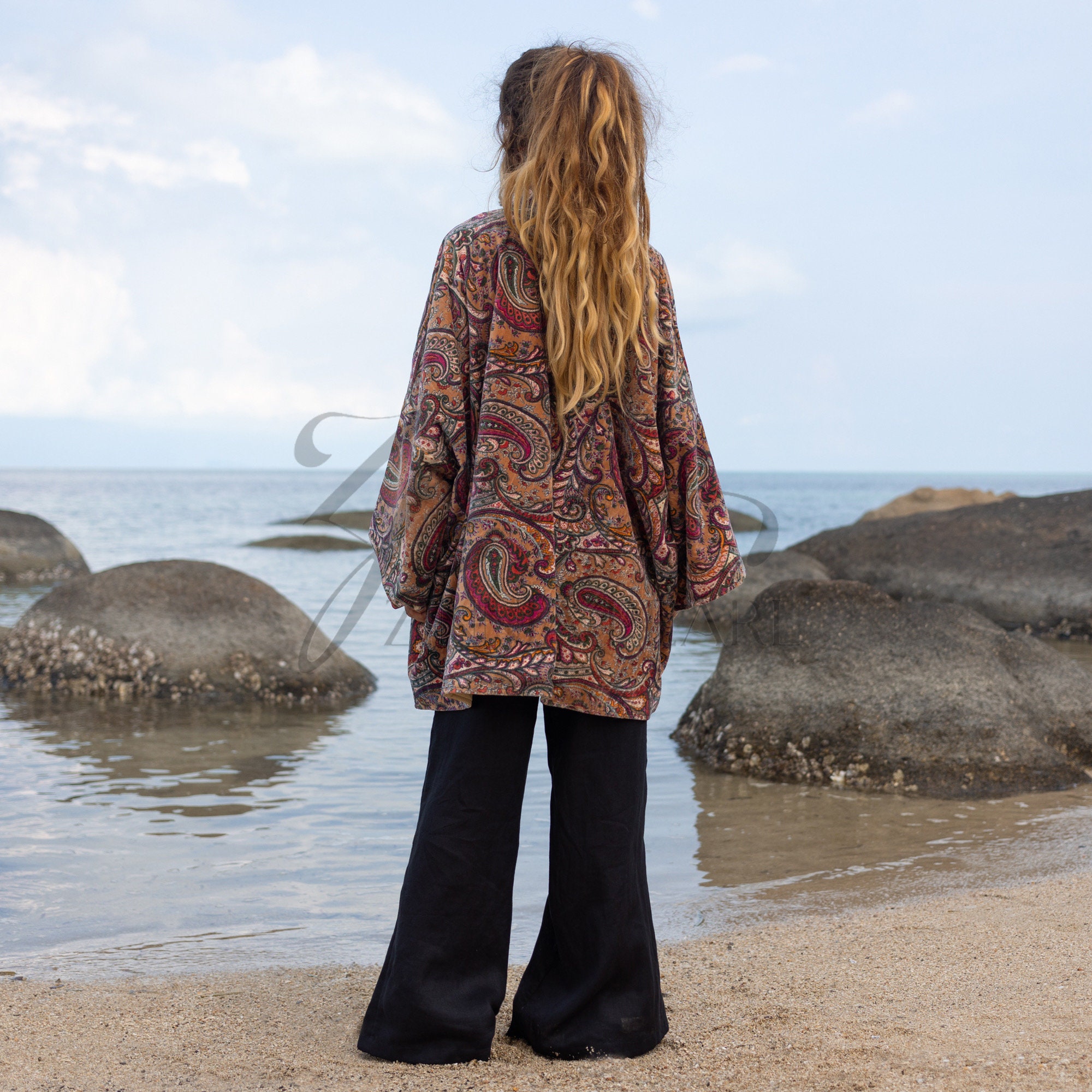 Handcrafted Cotton Velvet Kimono: Boho Chic Style Jacket – Mei