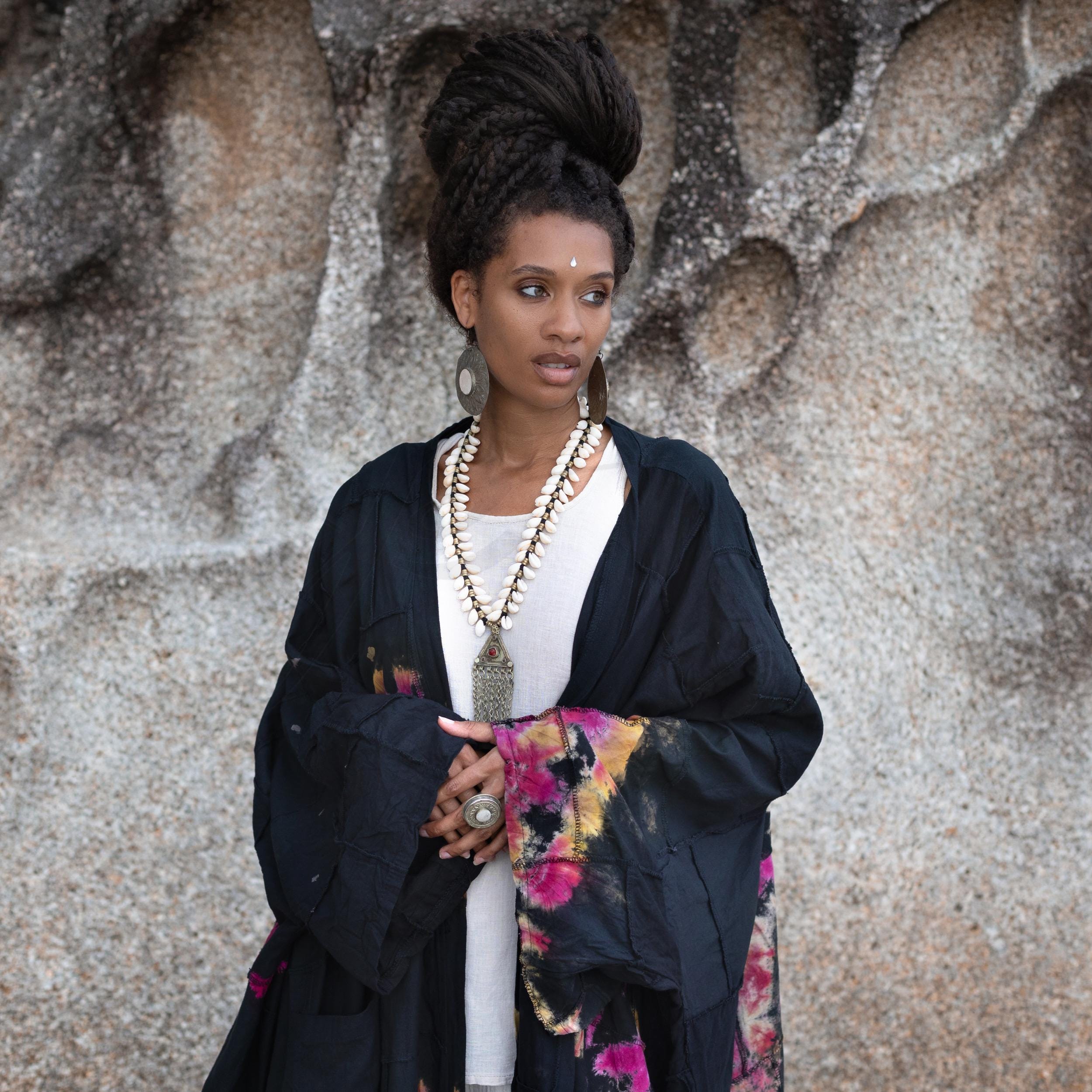Discover your distinct style with our mesmerizing Veda Ethereal Splendor Tiedye Patchwork Kimono Duster.