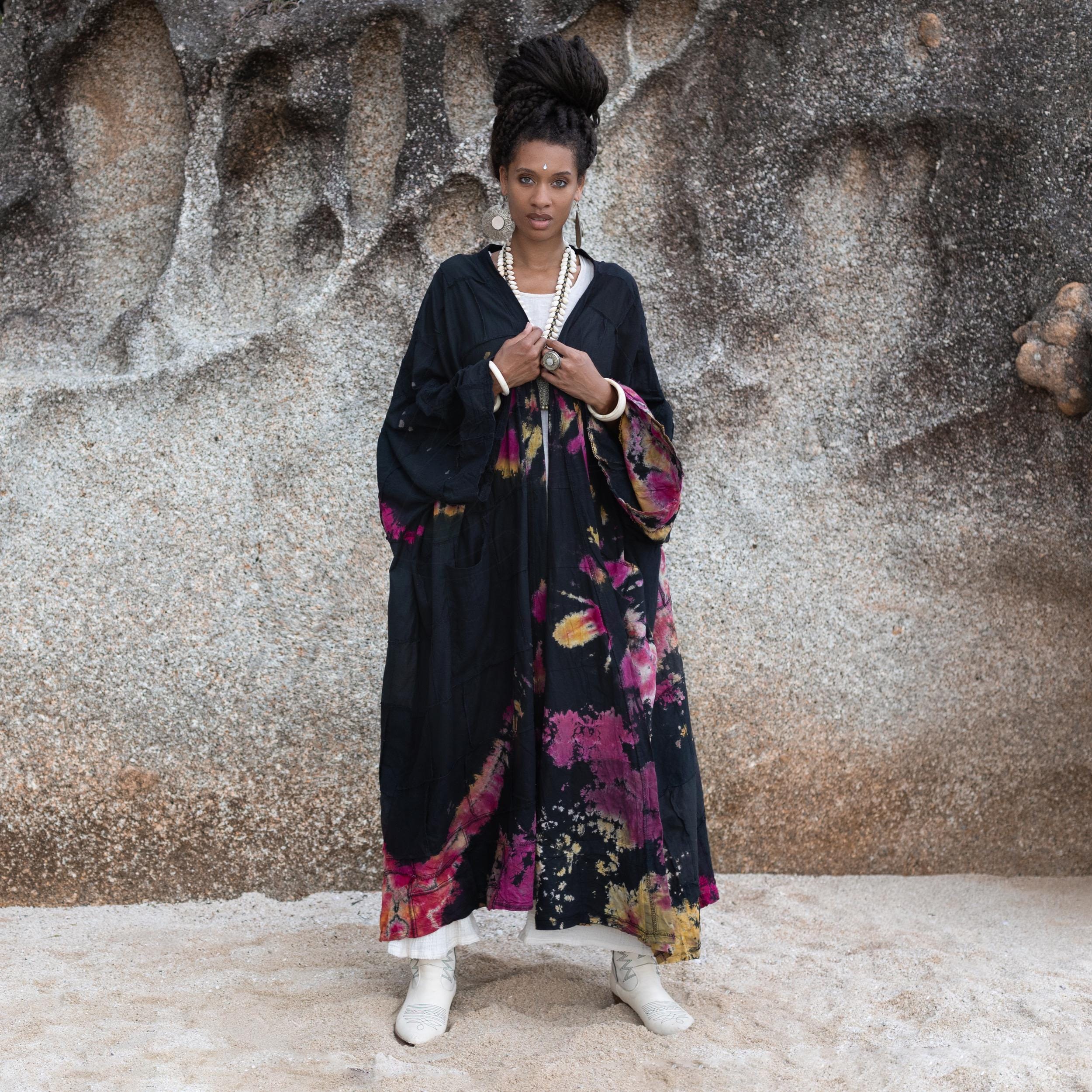 The slouchy, longline silhouette, alongside the drop shoulder design, embodies relaxed elegance. Crafted from medium-weight cotton fabric, this duster promises a snug and cozy wear, accentuated by its handmade finish that adds a unique, comforting touch.