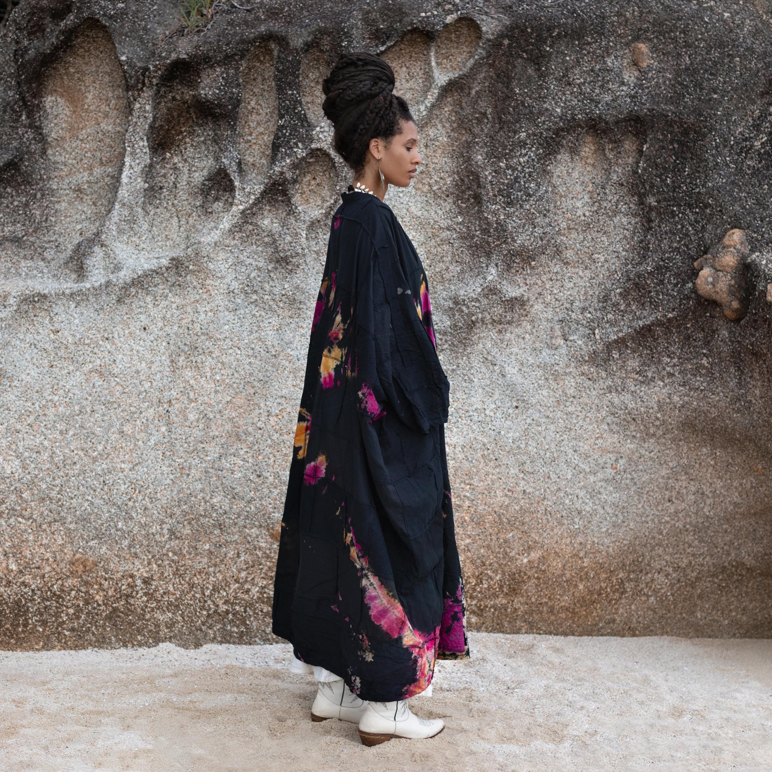 Handcrafted Tie-dye Patchwork Kimono Duster: Heritage-Inspired Cotton Plus Size – Veda