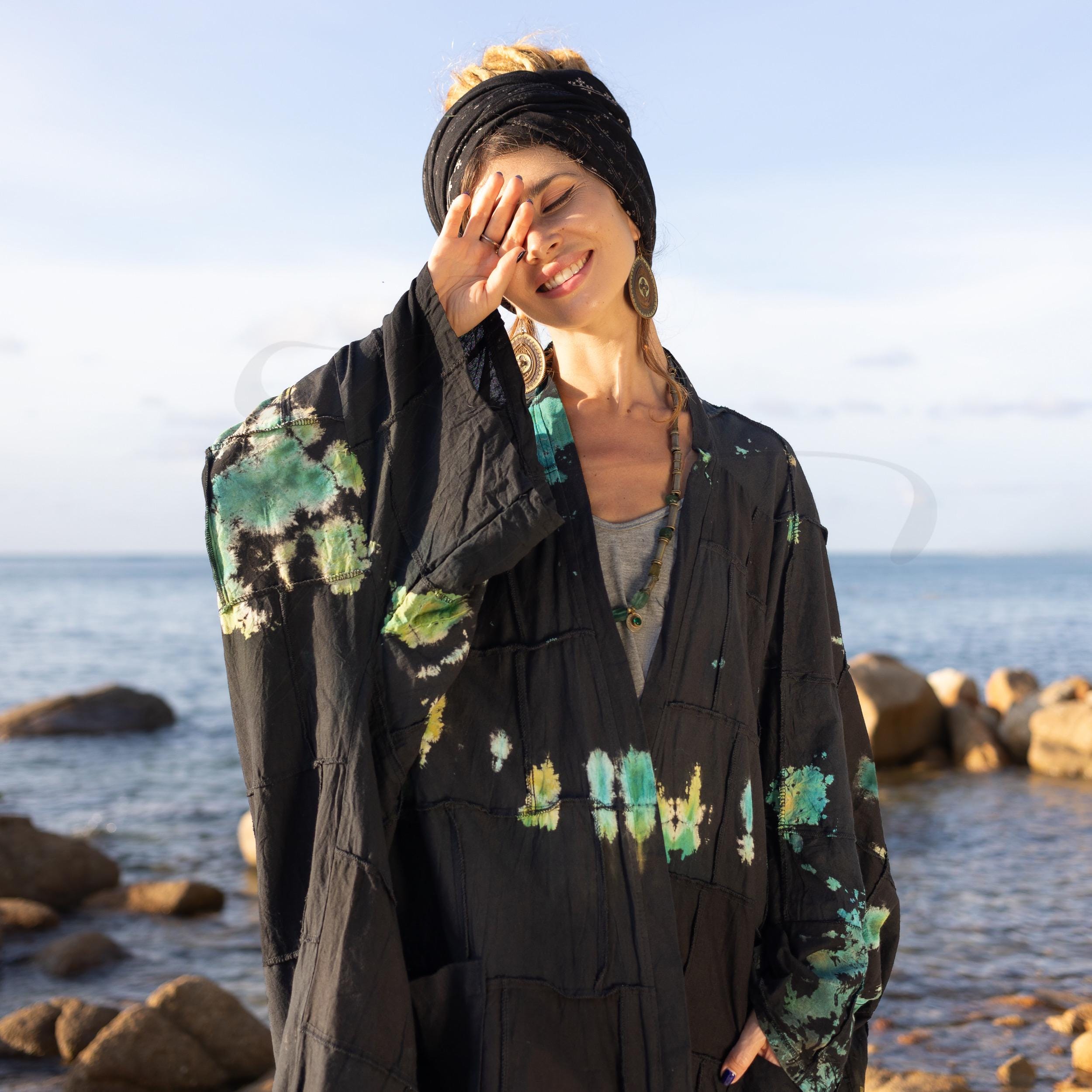 Handcrafted Tie Dye Patchwork Kimono Duster: Plus Size Cotton Duster – Veda