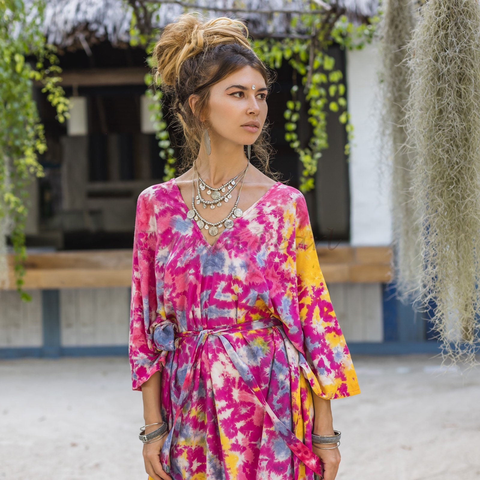 Step into a world of vibrant self-expression with our Grace Tiedye Kaftan.