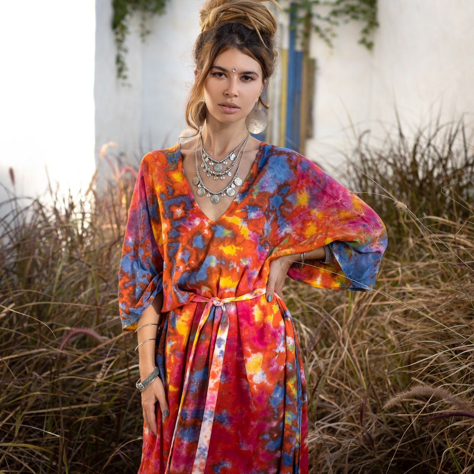 Handcrafted Tie-Dye Rayon Kaftan – Boho Plus Size Dress | Grace