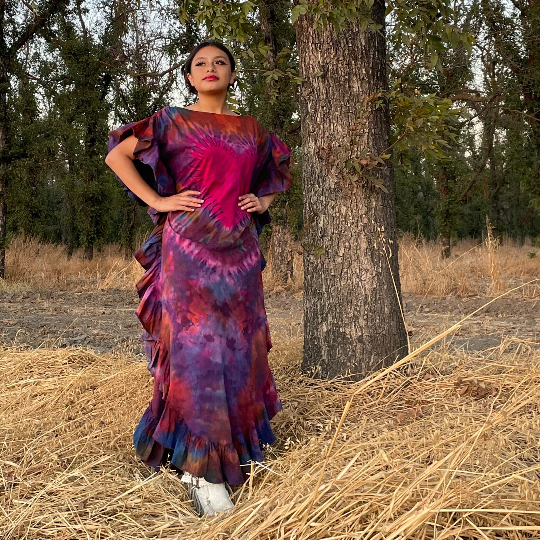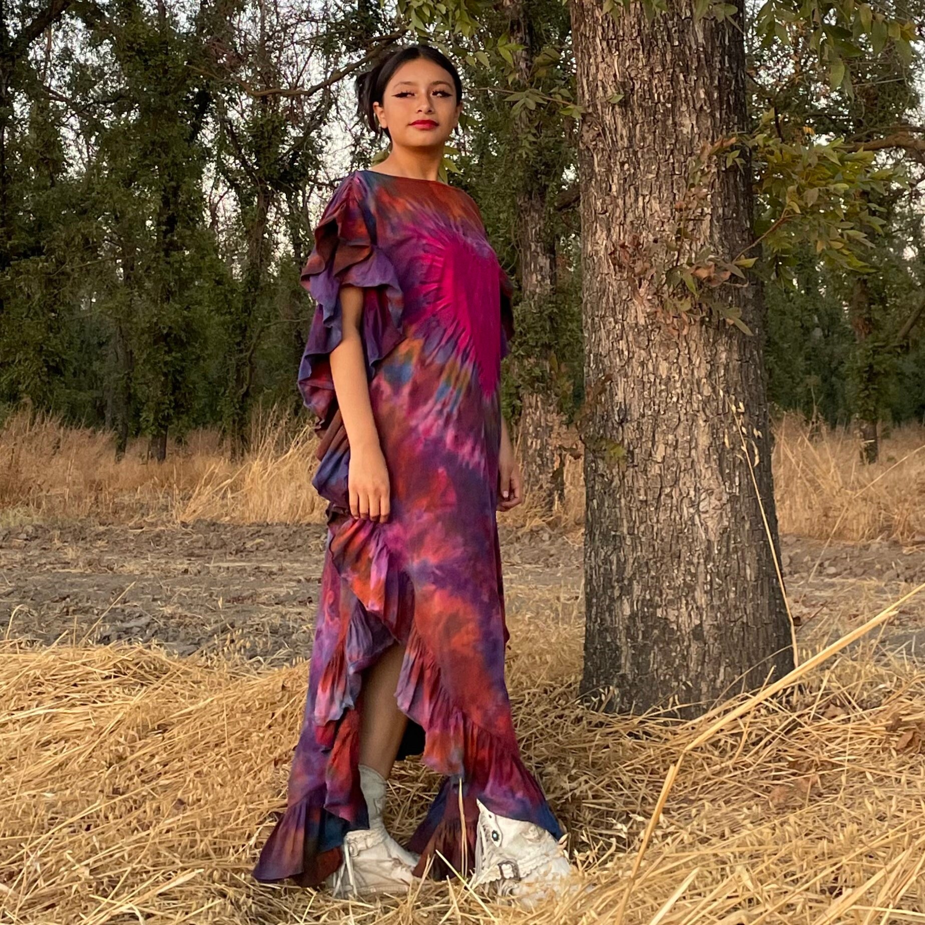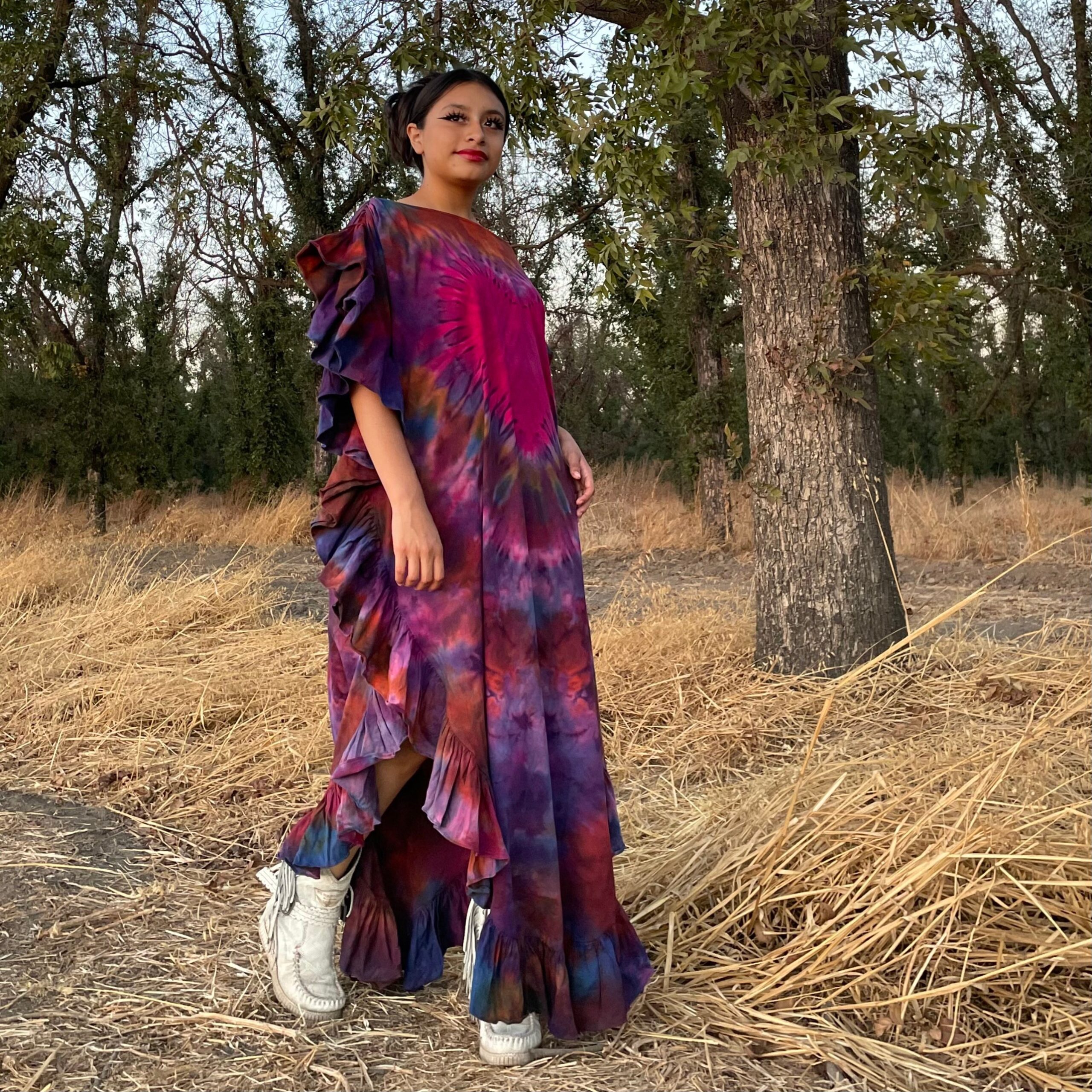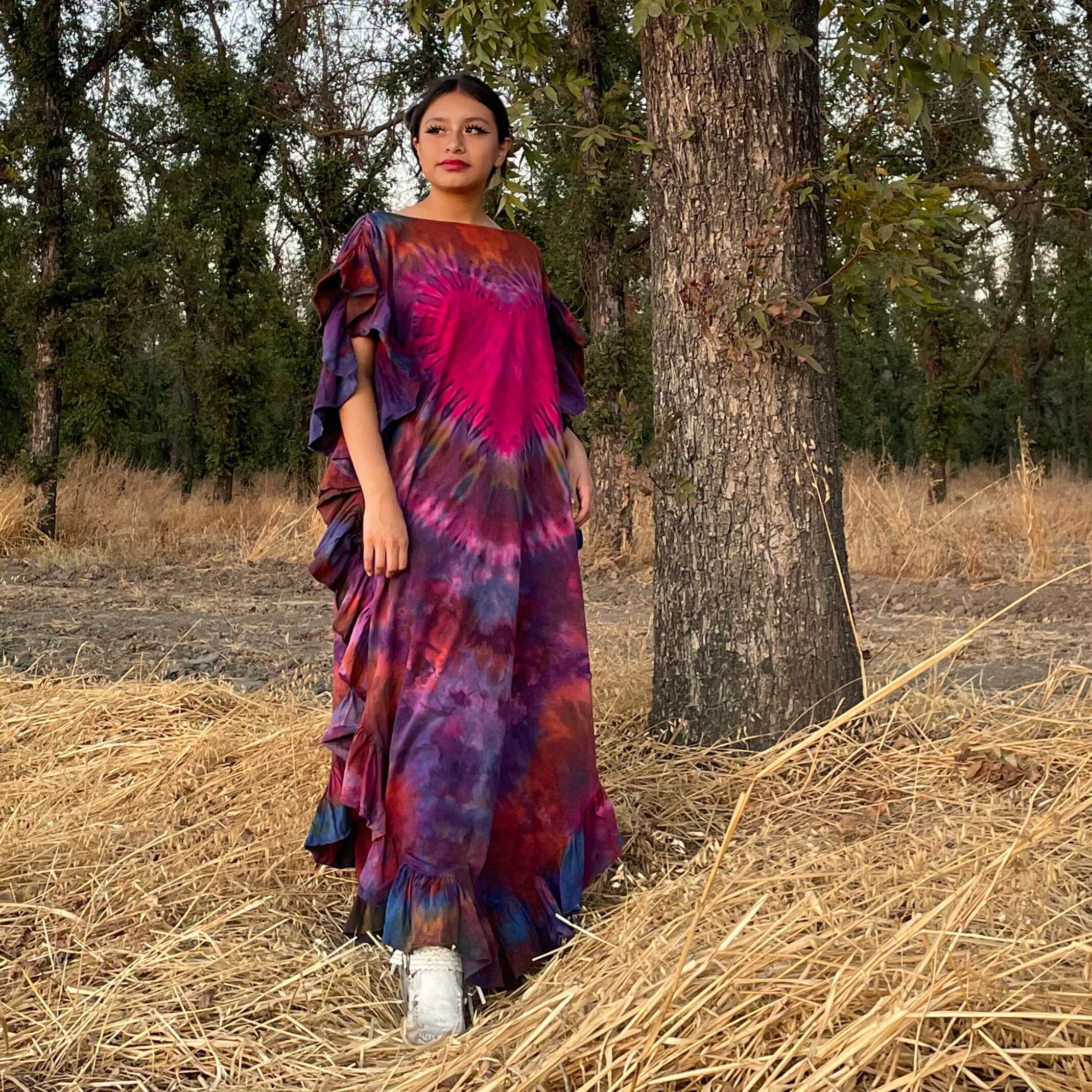 Handmade Boho Tie-Dye Cotton Maxi Dress – Festival Kaftan | Ema