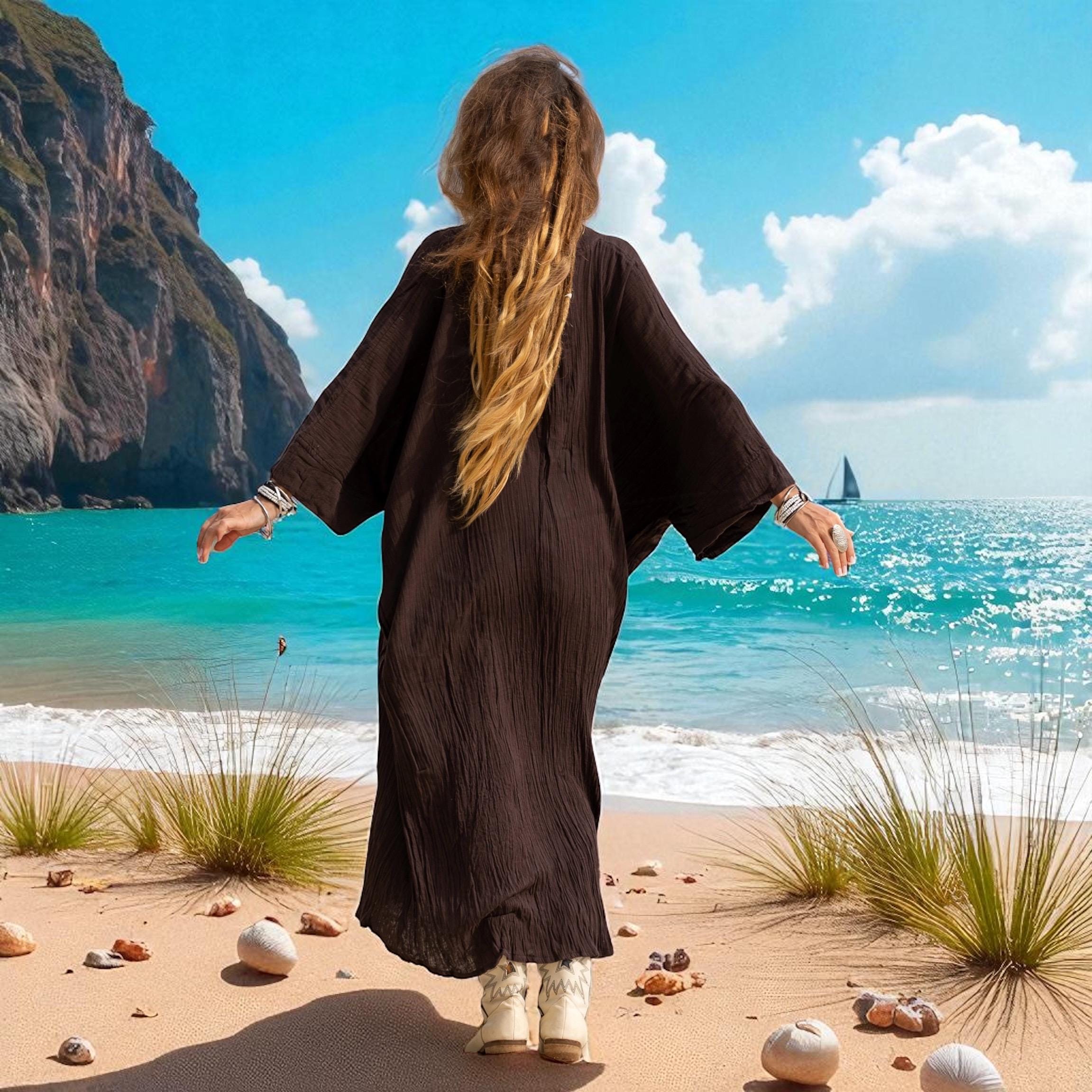 Whether you drift through golden sunrises or dance beneath moonlit skies, Willow is your go-to boho robe — designed with generous drop shoulders, deep patch pockets, and a fluid floor-length silhouette that flatters every body. A wearable ritual of self-love and slow fashion.