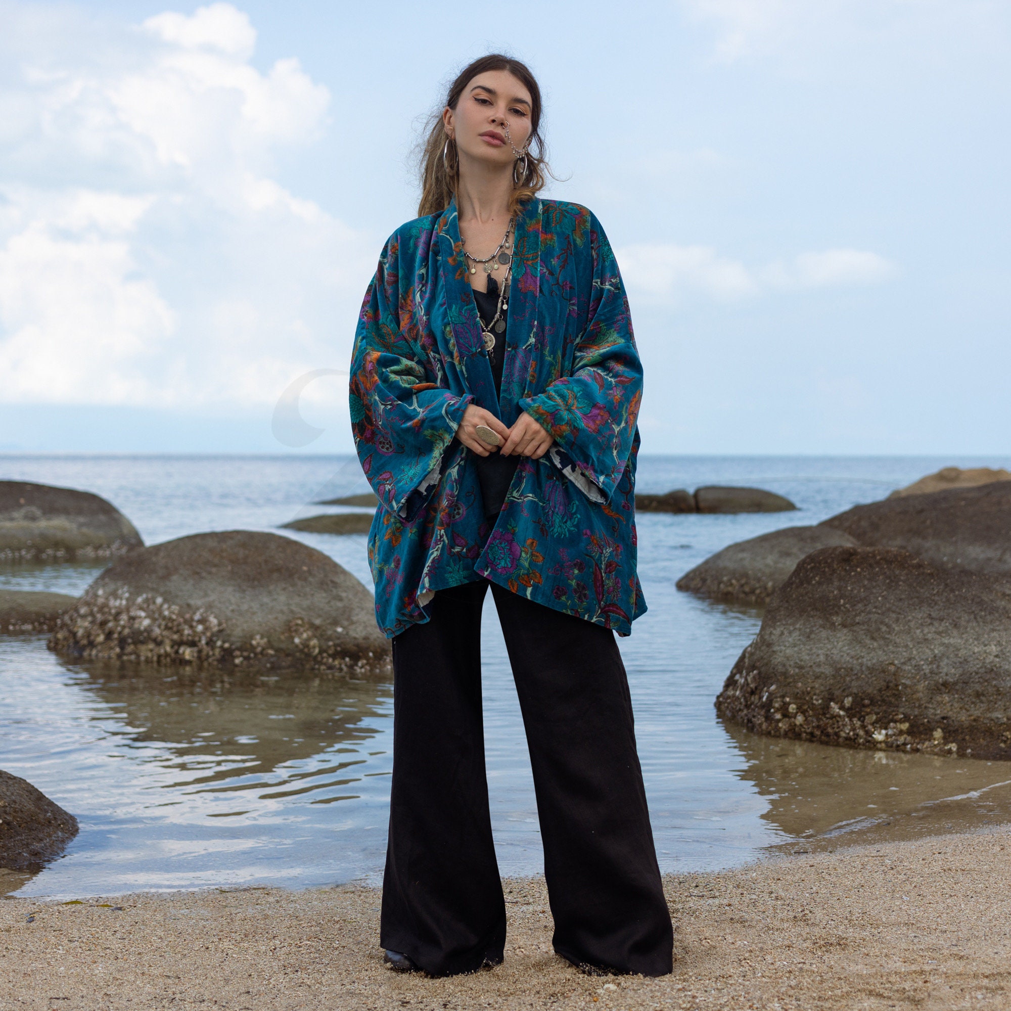 Indulge in the luxurious comfort and bohemian charm of our handmade Mei Cotton Velvet Short Jacket. This versatile piece is perfect for layering and adds a touch of elegance to any outfit. Crafted with care, it features: