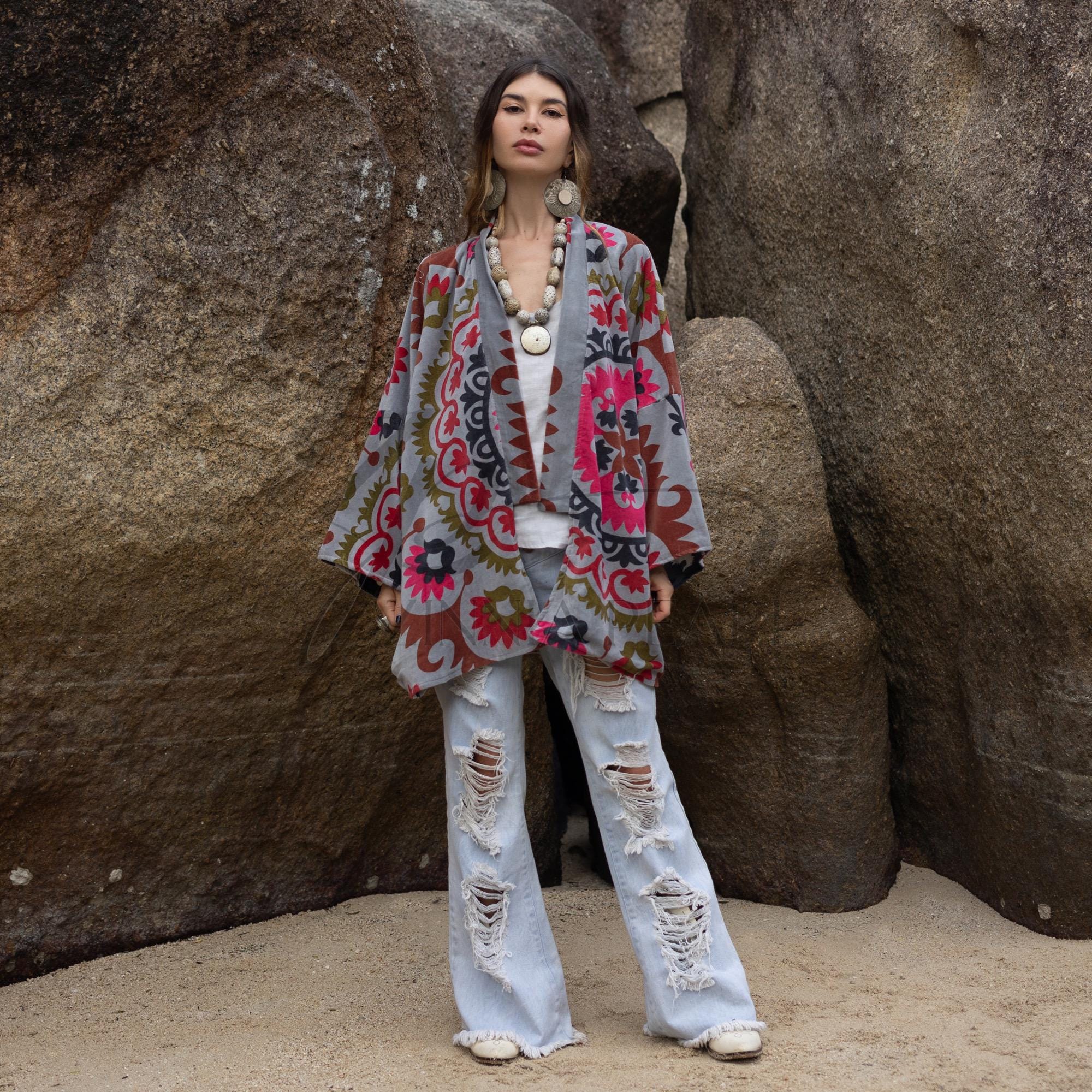 Handmade Cotton Velvet Kimono: Boho Chic Jacket, Plus Size – Mei