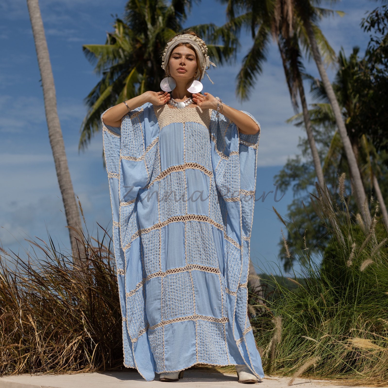 Handmade Crochet Cotton Maxi Kaftan – Boho Beach Cover-Up | Zora
