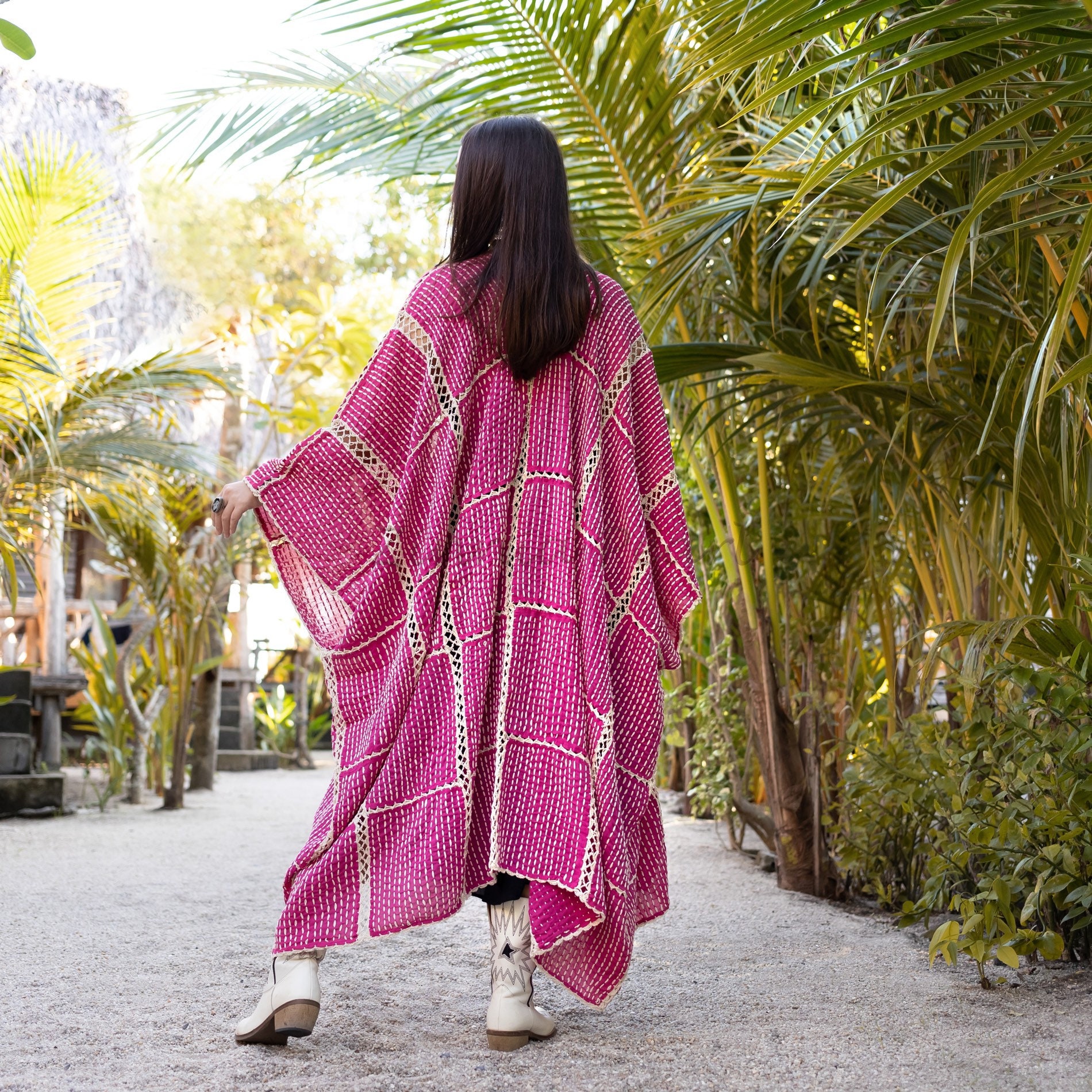 Handmade Crochet Embroidered Cotton Kimono Duster: Boho Resort Wear – Isa
