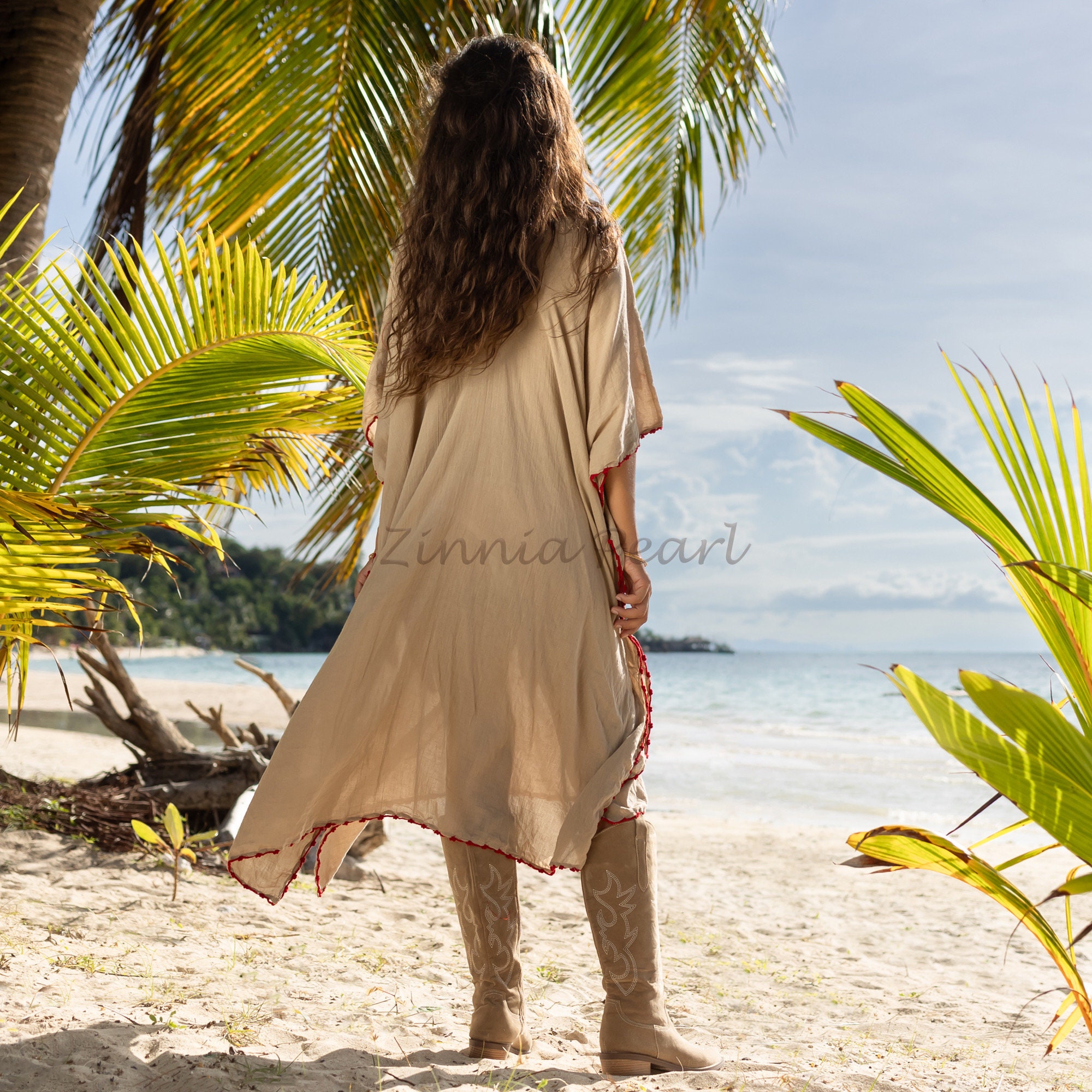 Handmade Embroidered Crochet Kaftan: Cotton Beach Coverup Dress – Oceano