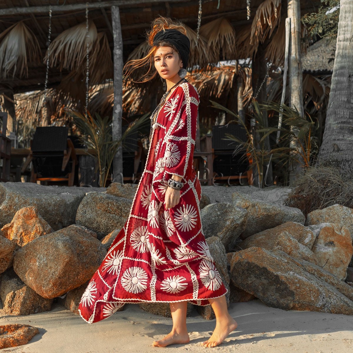 Handmade Floral Crochet Embroidered Maxi Kimono Duster Festival Beach Resort Holiday Wear One Size One Plus Size