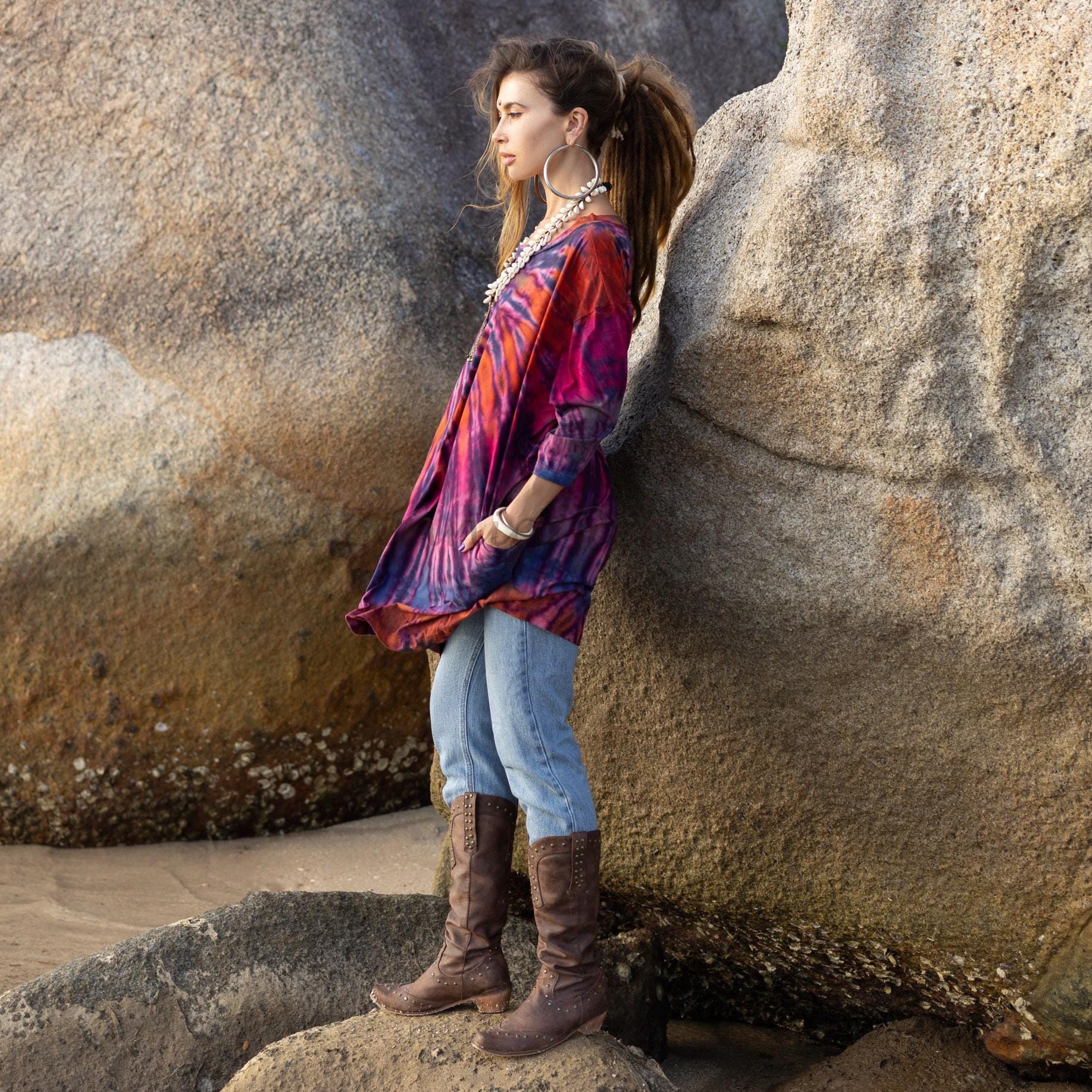Stay groovy and comfy in the Galaxy tunic tiedye! This oversized tunic mini dress bursts with far out vibes in different gorgeous tie dye print.