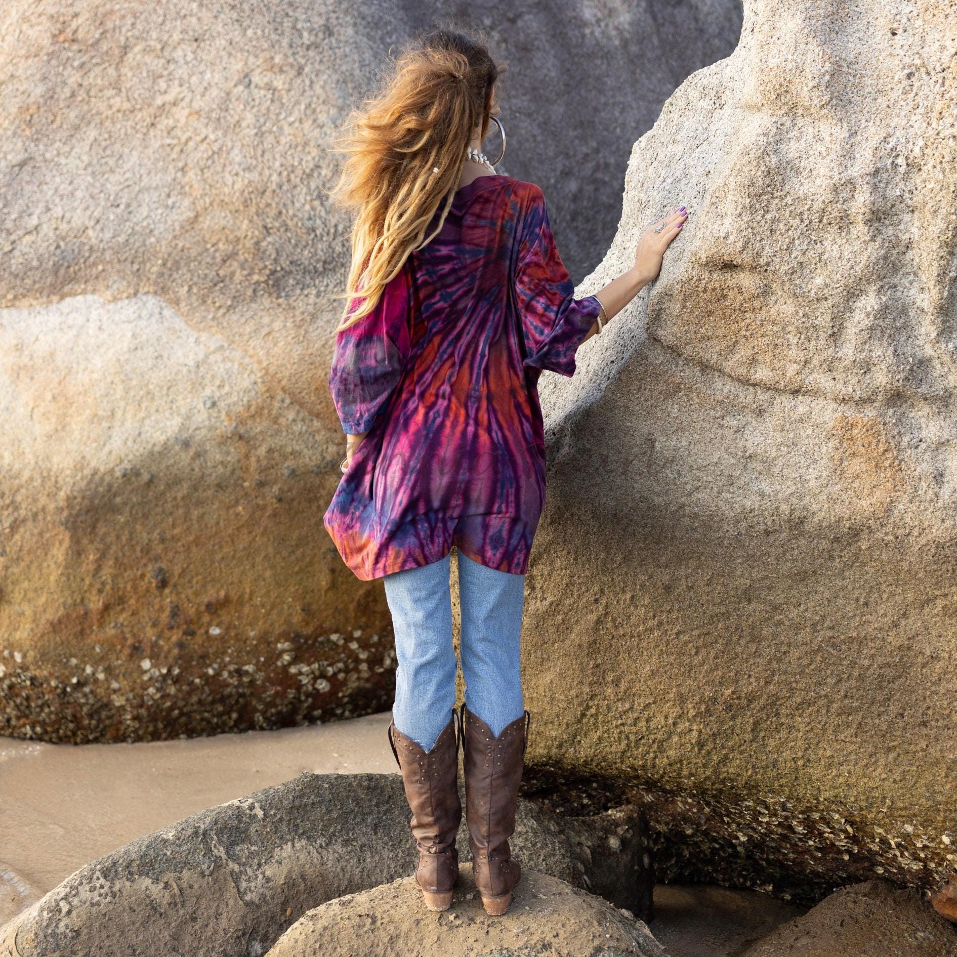 Handmade Galaxy Tie Dye Tunic Dress: Oversized Cotton Boho Top