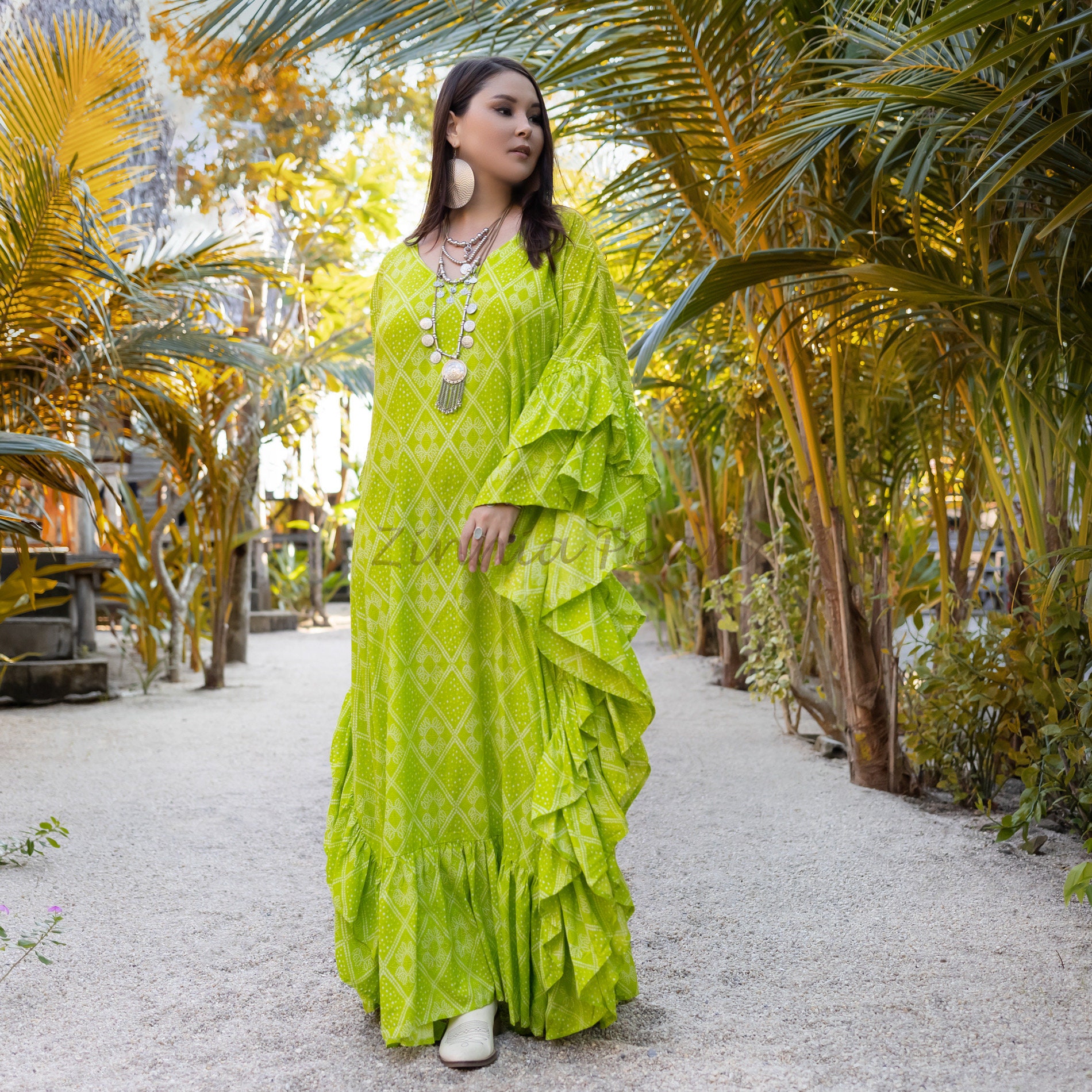 Handmade Modal Silk Ruffle Kaftan: Boho Chic Maxi Dress – Wild Heart