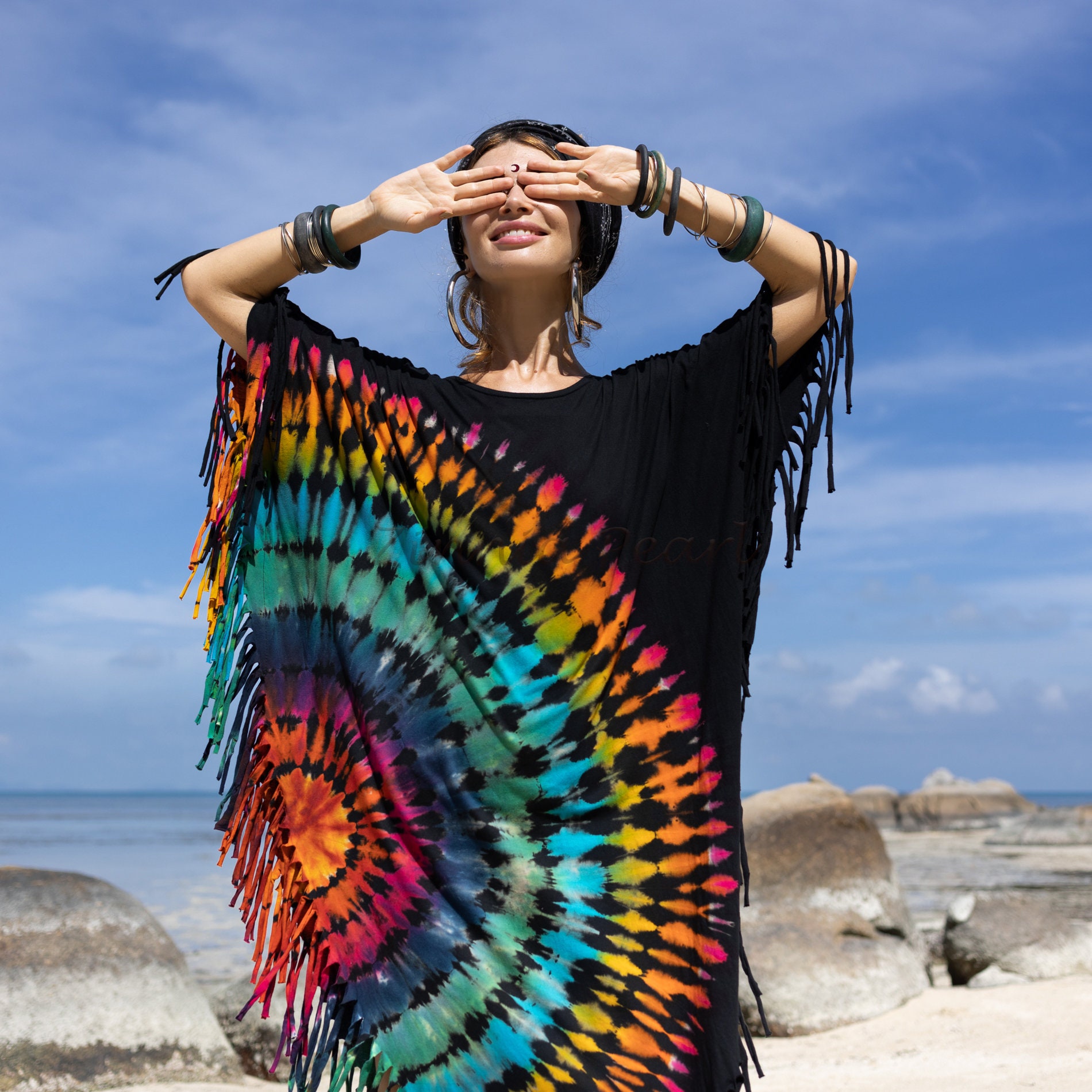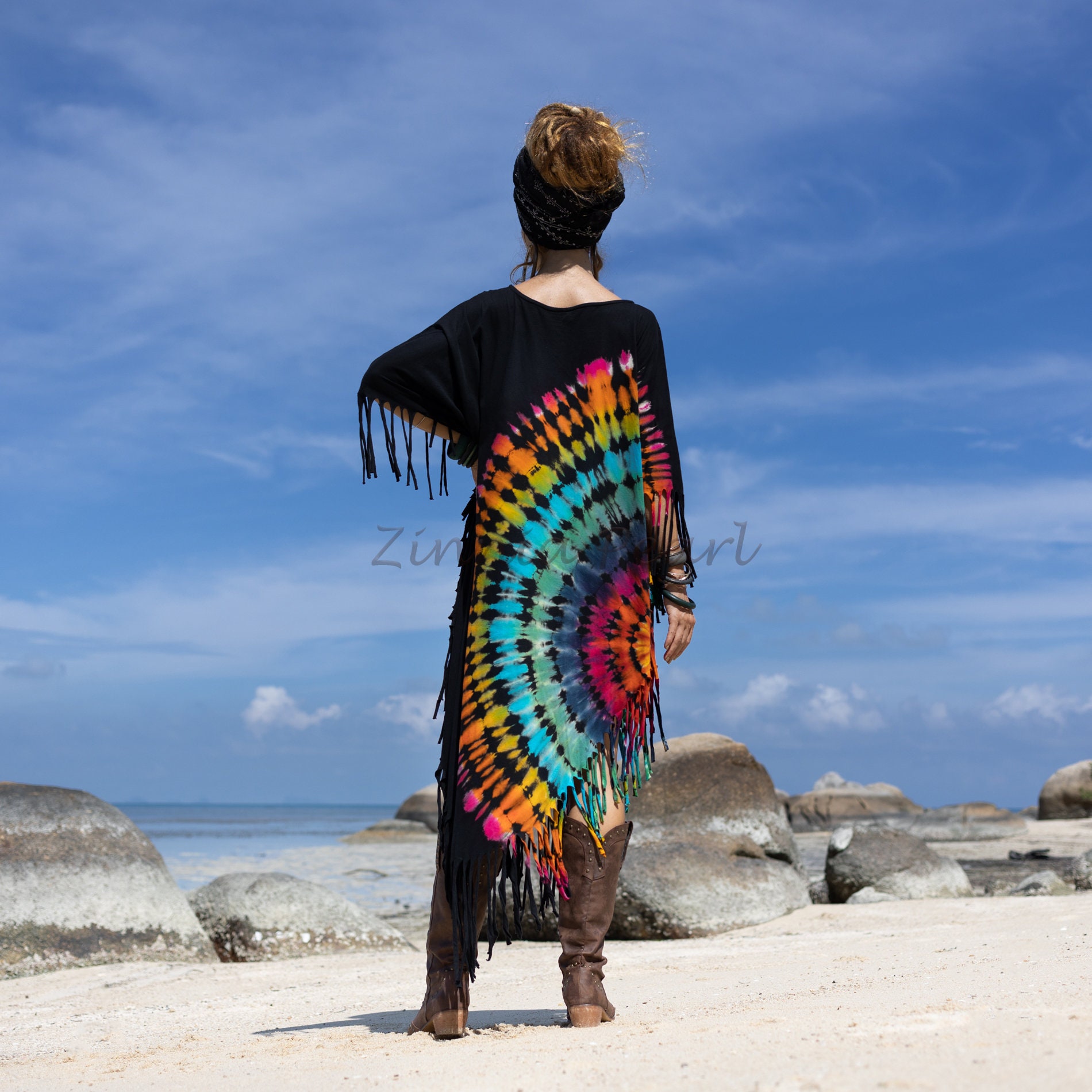 Handmade Tie-dye Cotton Tunic Dress: Boho Fringe Cover-Up – Arlo