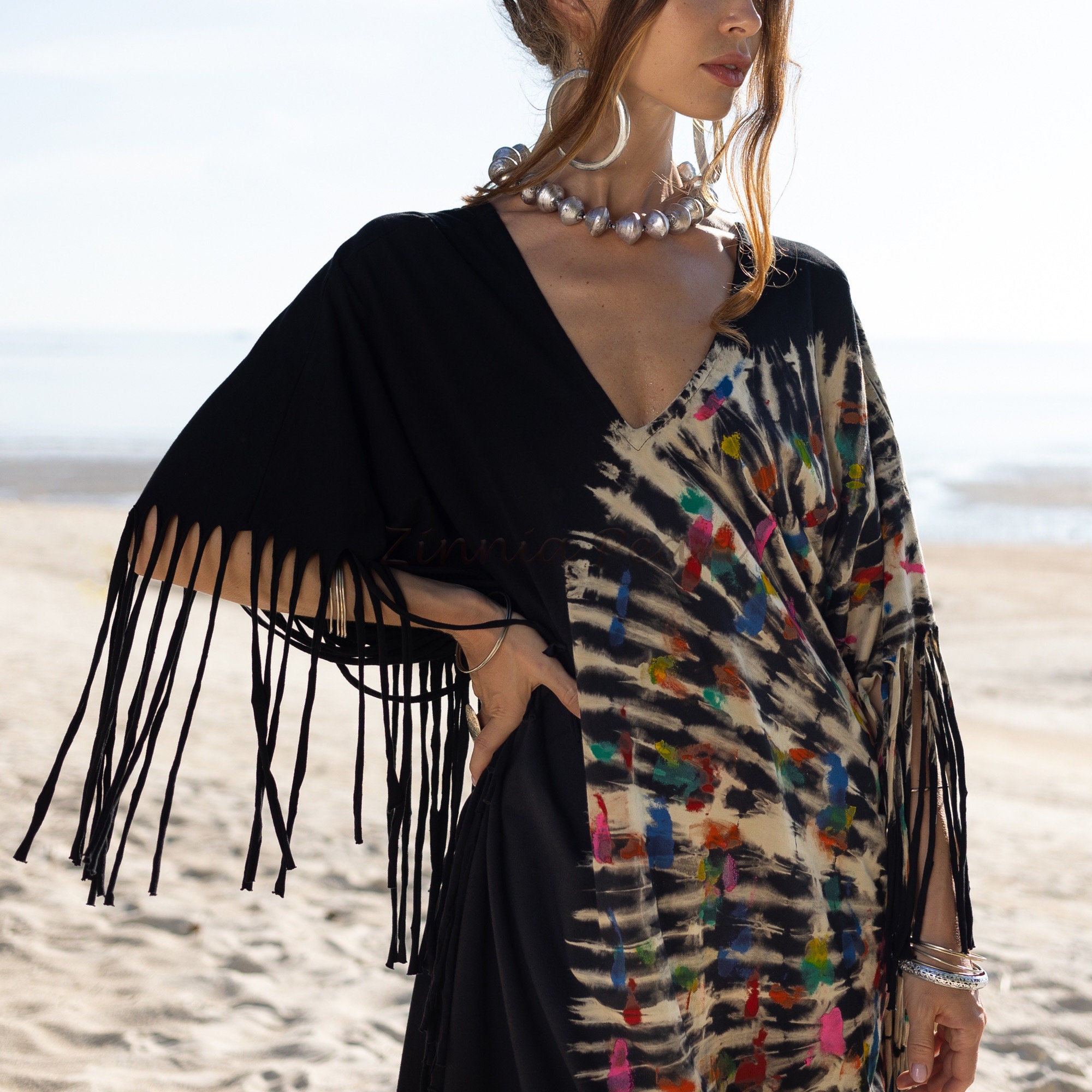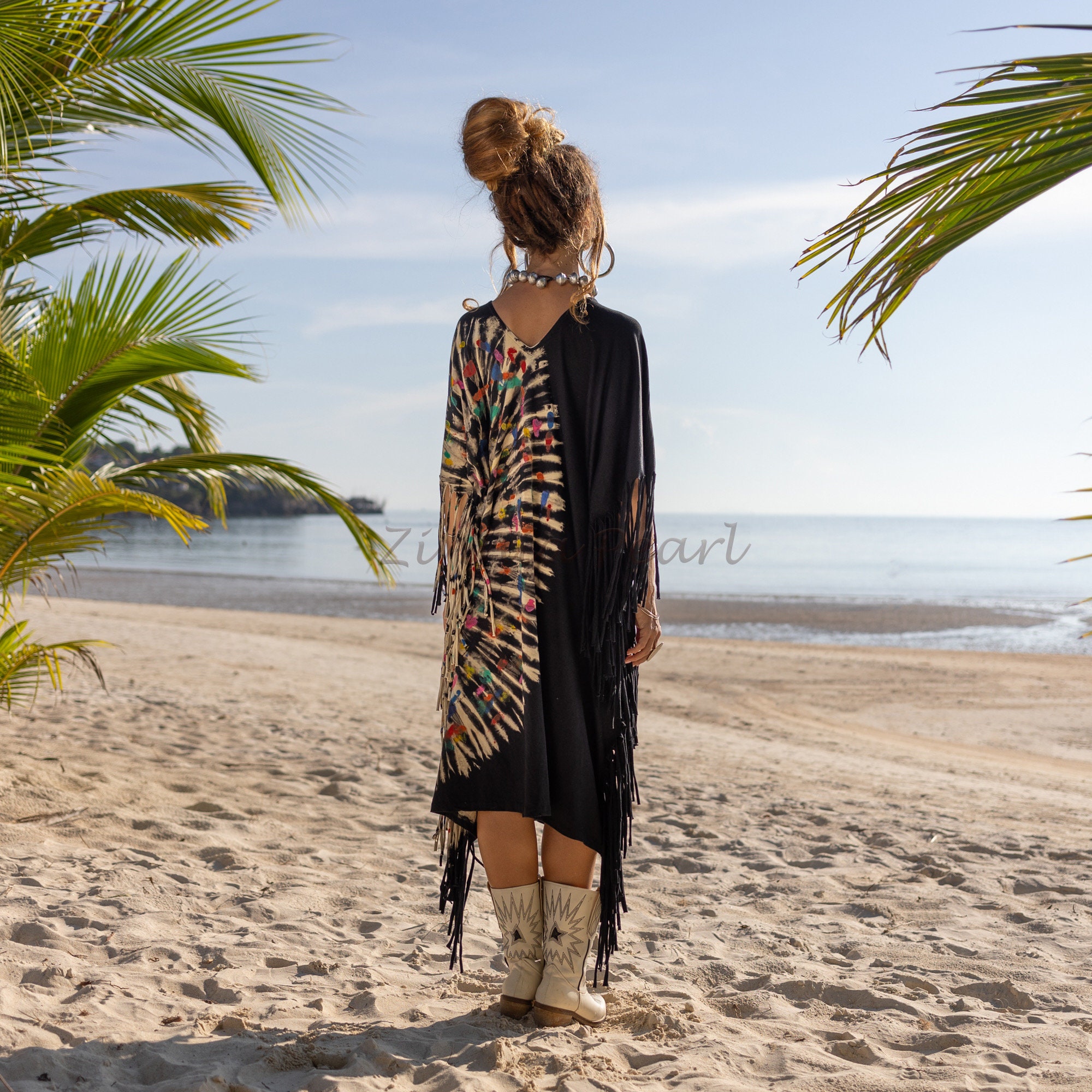 Handmade Tie-Dye Fringe Tunic Dress: Boho Cotton Kaftan – Esme