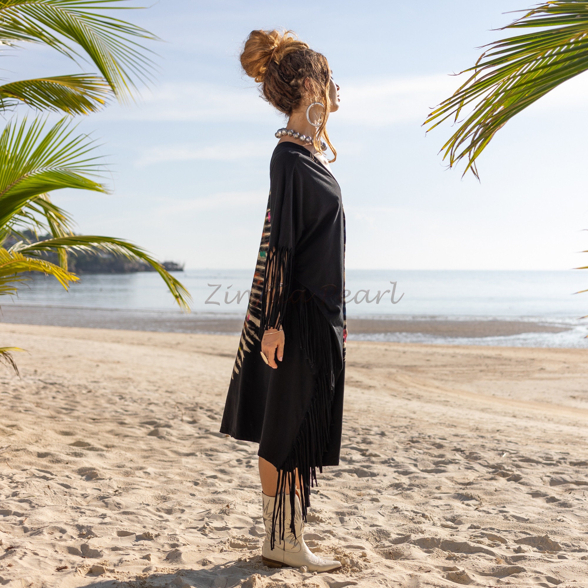 Let your inner free spirit dance in the enchanting beauty of the Esme Fringe Tunic Tee Short Dress. It's a celebration of authenticity, craftsmanship, and inclusive style that empowers your expression.