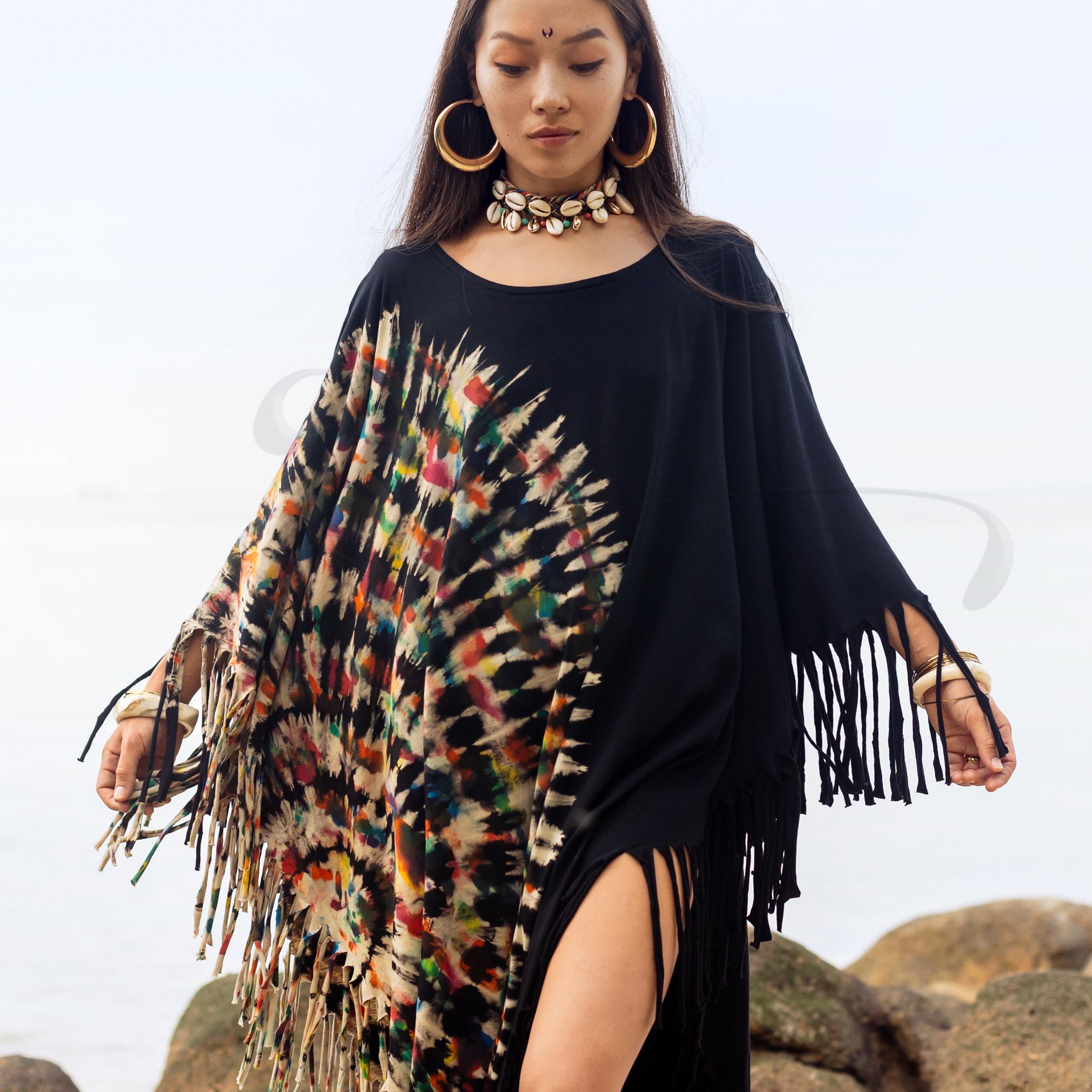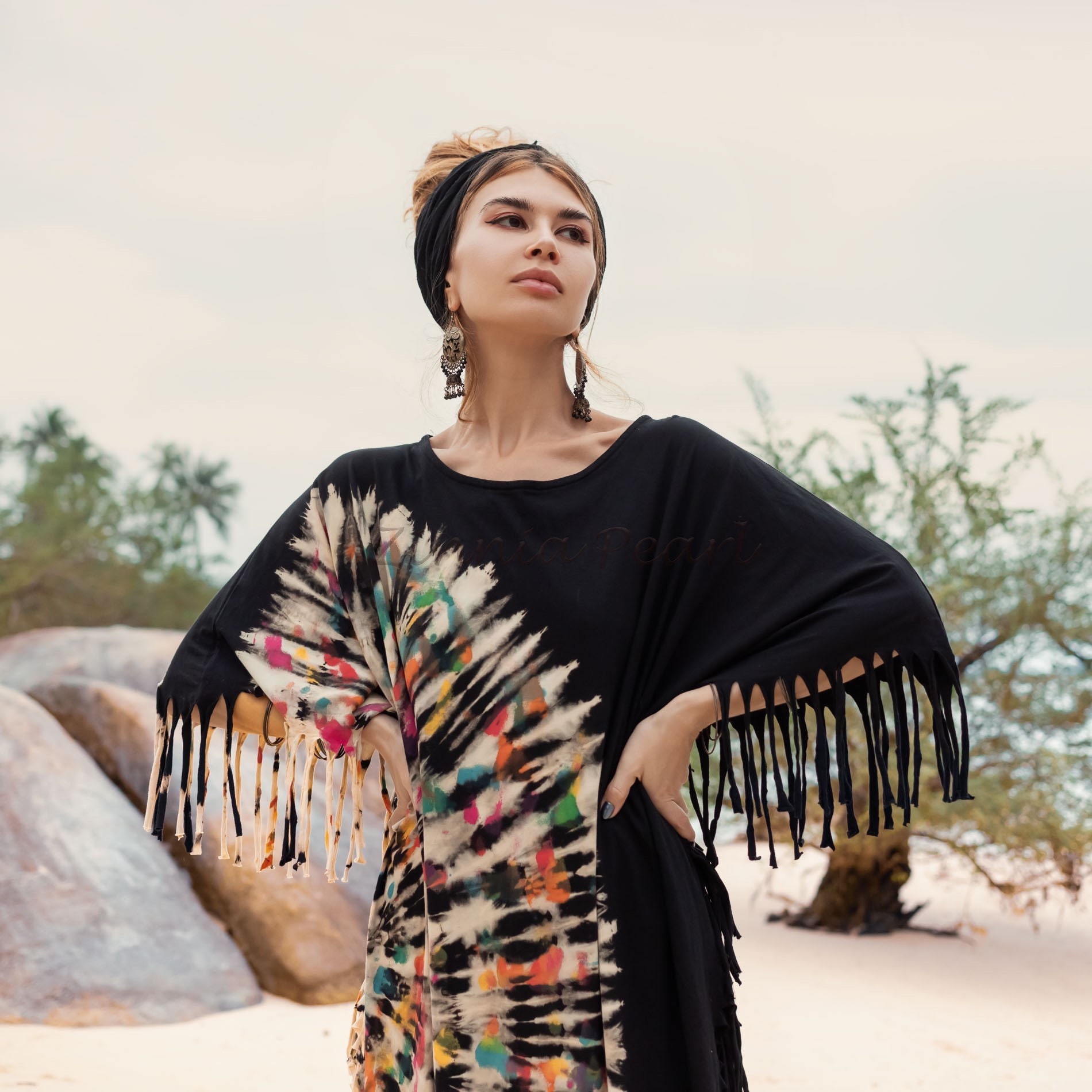 Handmade Tie-Dye Fringe Tunic: Plus Size Boho Cotton Kaftan – Arlo