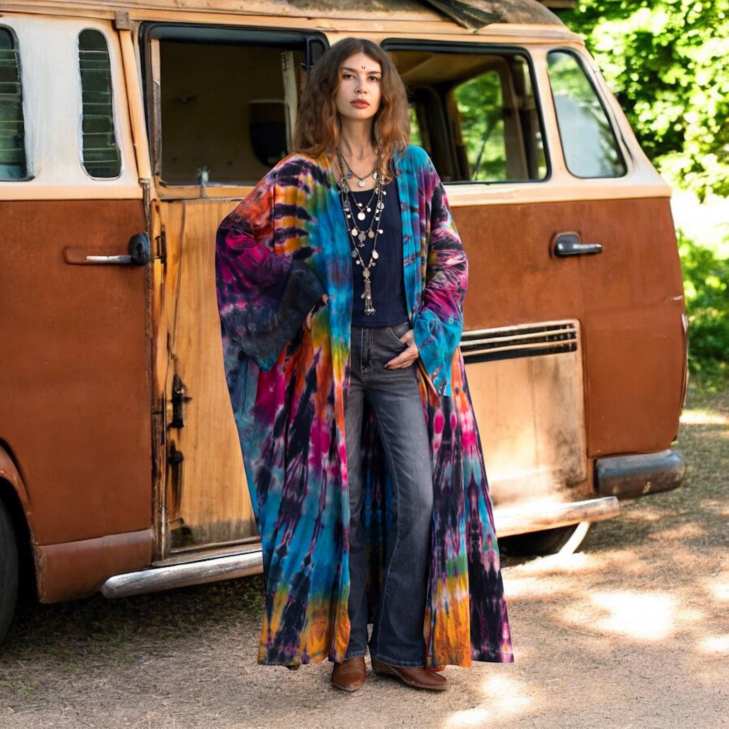 Handmade Tie-Dye Kimono Robe: Cotton Boho Duster, Plus Size Beach Cover-Up – Aurora