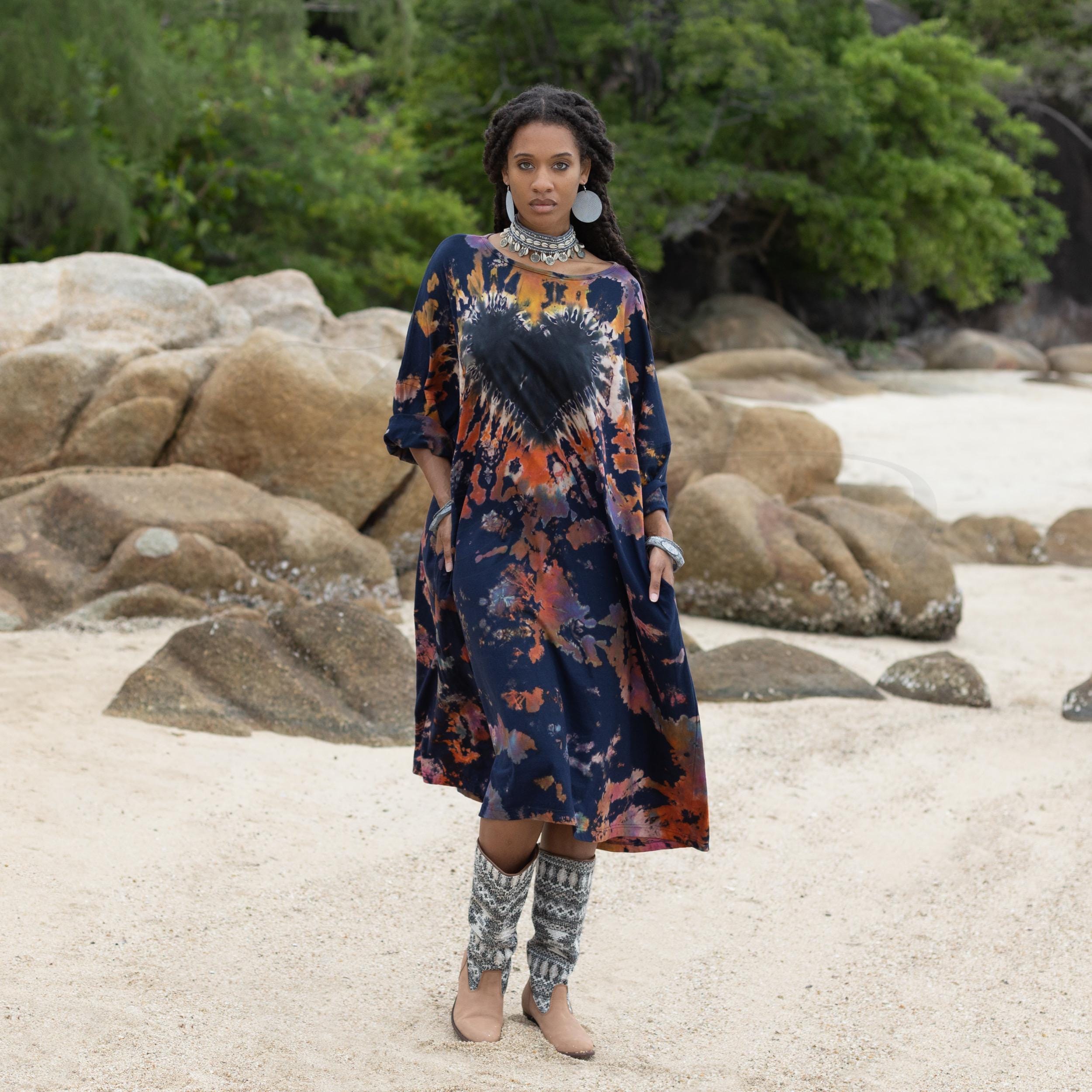Handmade Tie-Dye Tunic Dress: Boho Cotton Scoop Neck – Sylvie