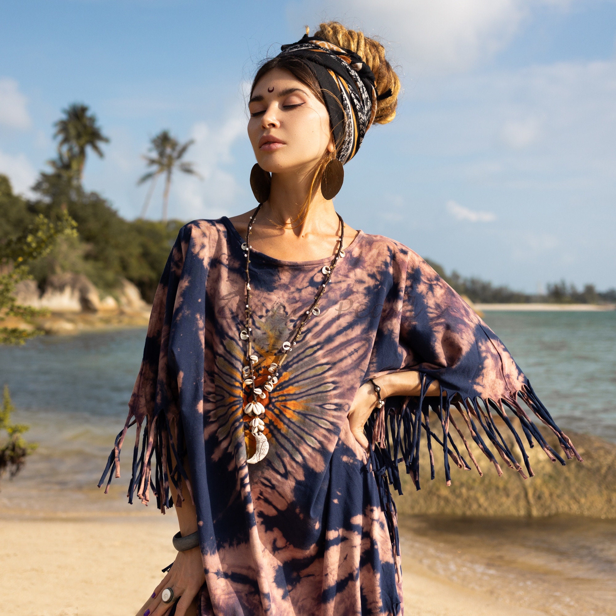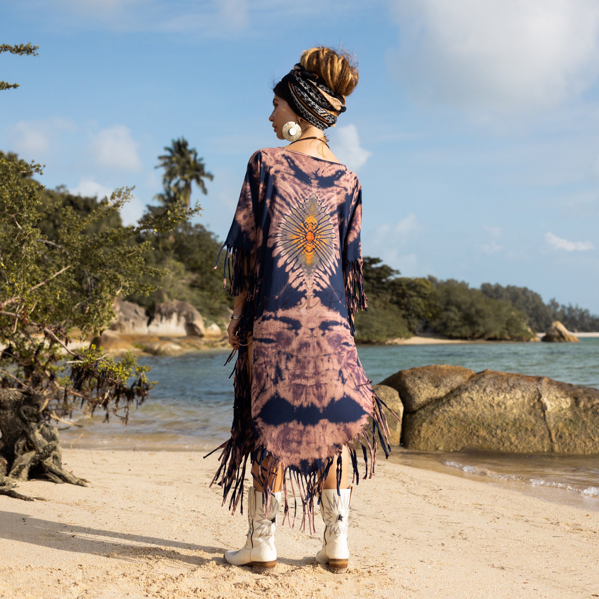 Handmade Tiedye Cotton Poncho: Boho Fringe Cover-Up Arlo